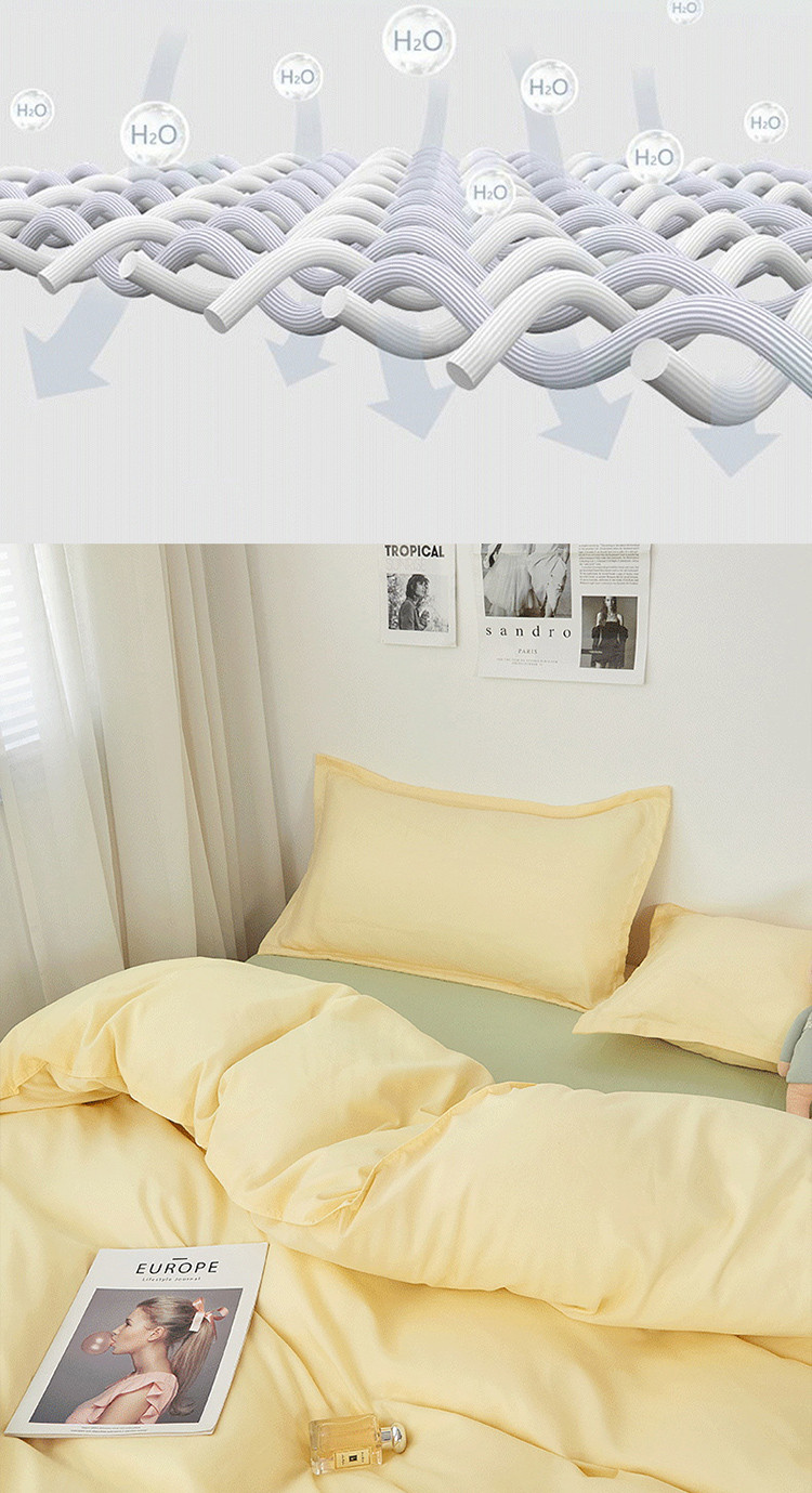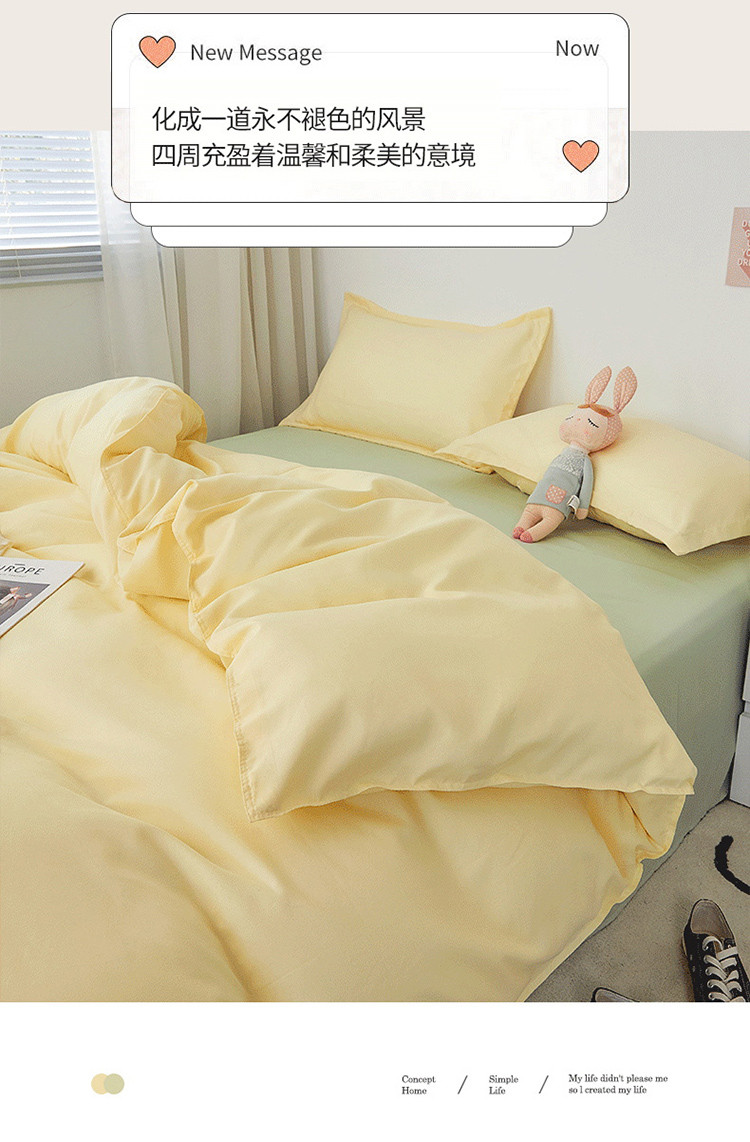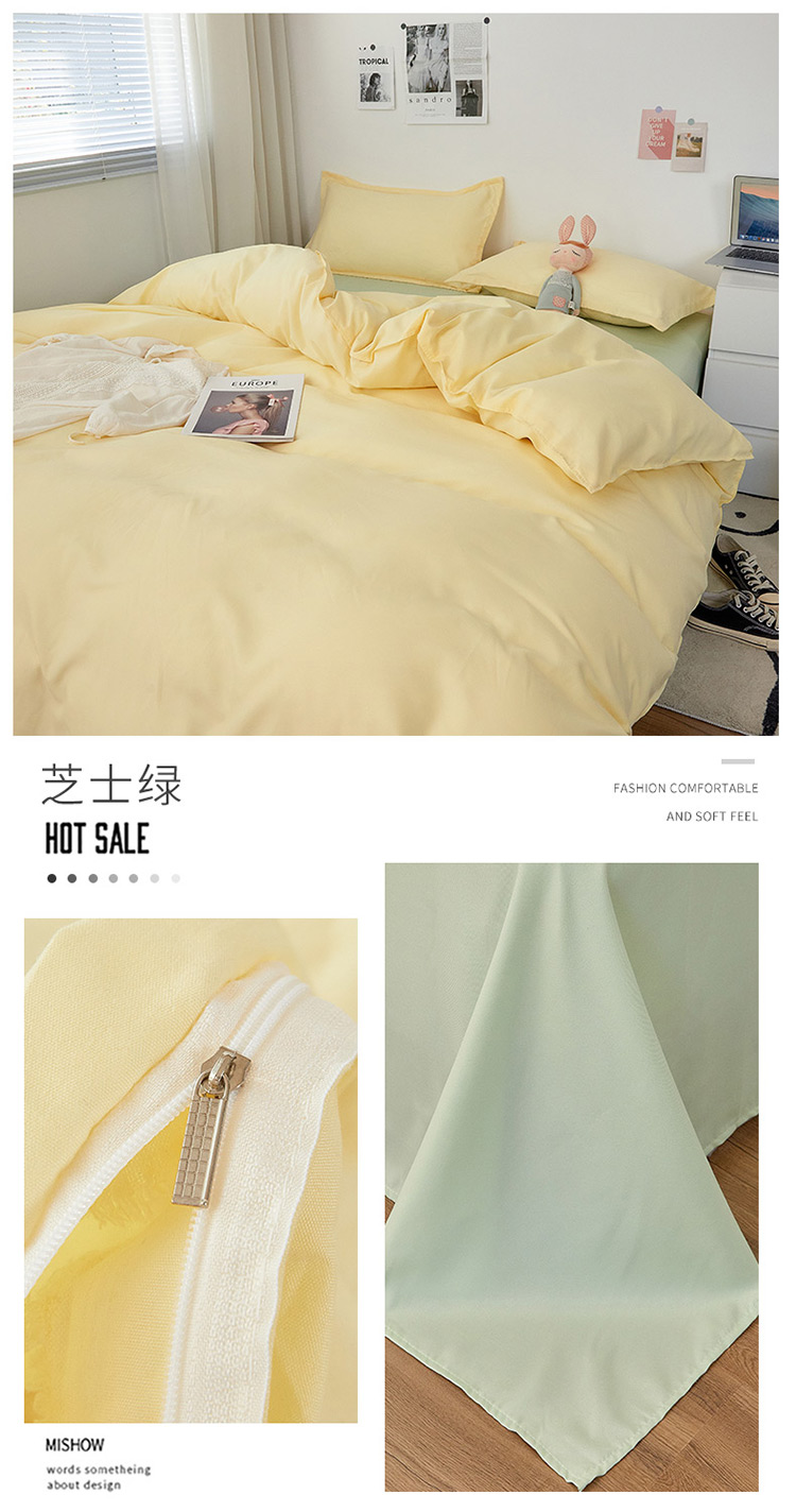 贝拉梦家纺 2021新款云朵棉亲肤纯色+双拼四件套 芝士绿