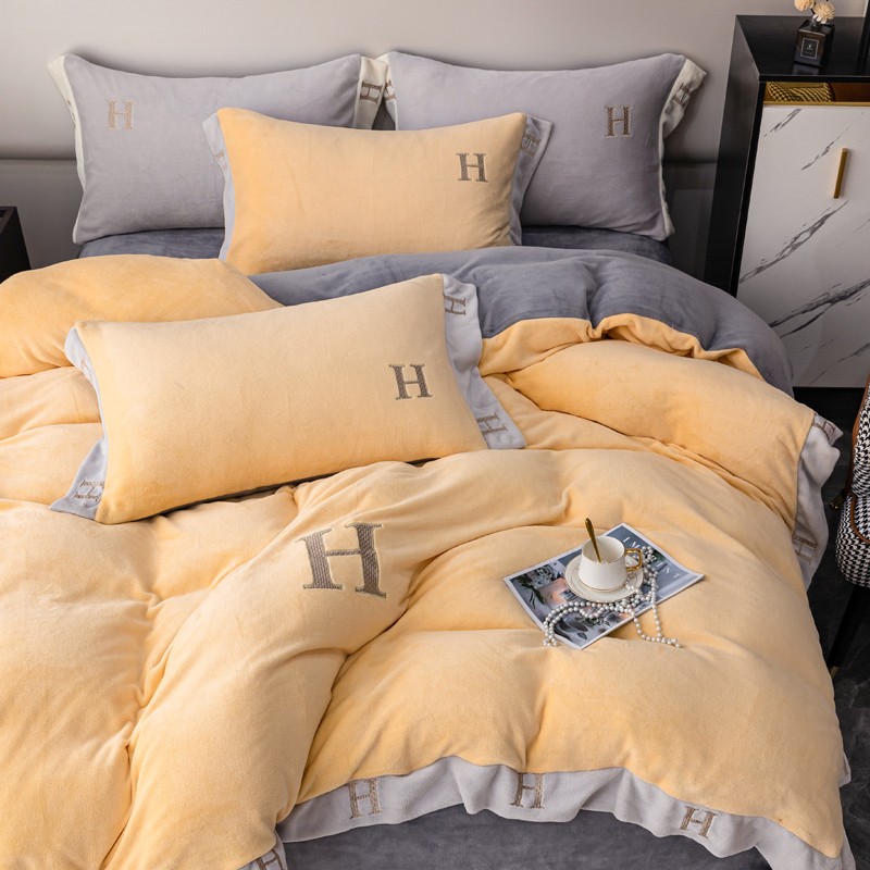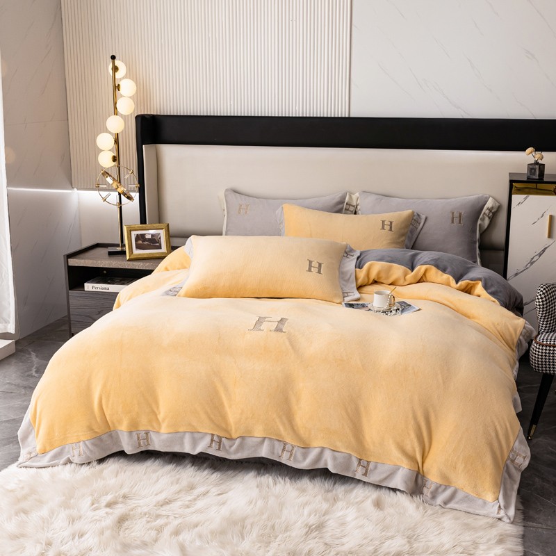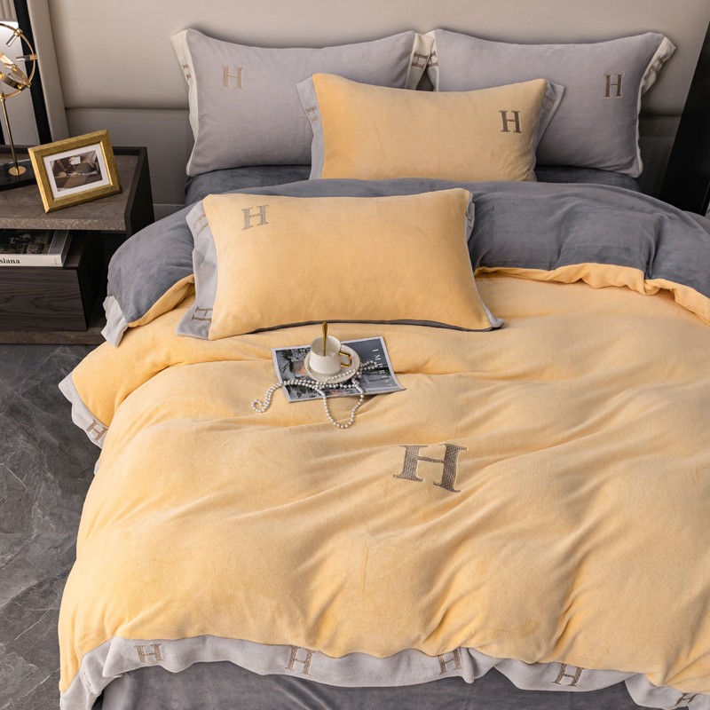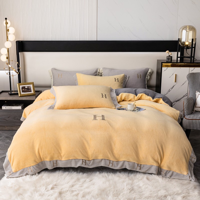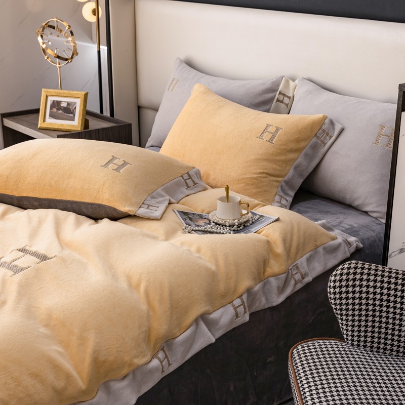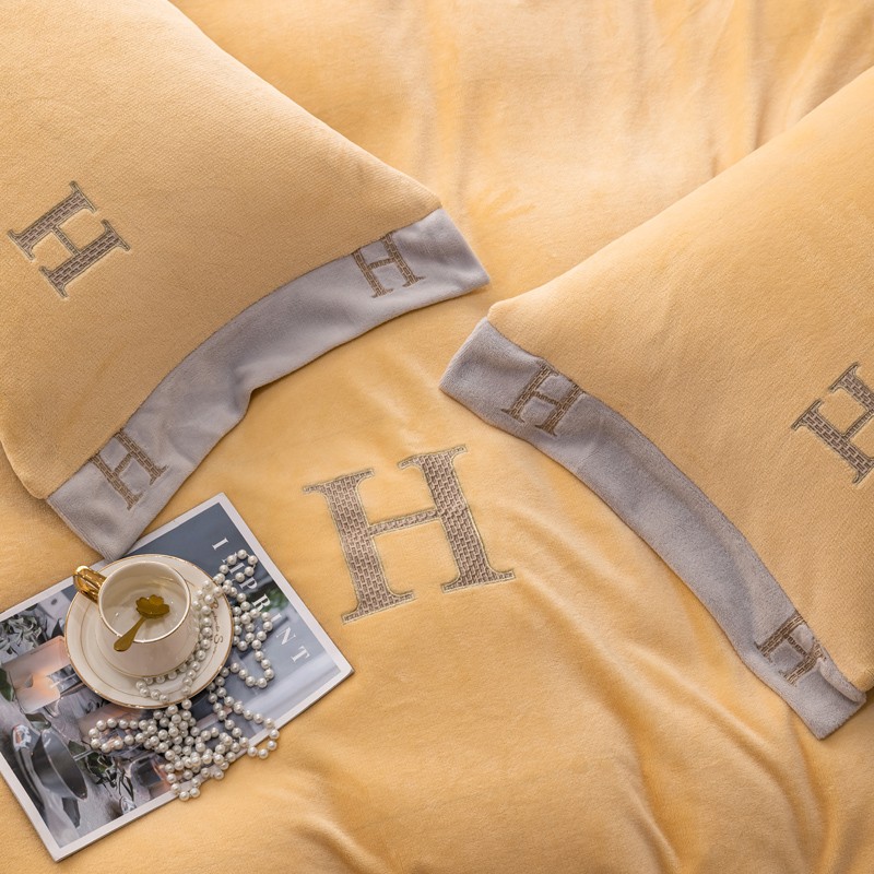 芯贝儿 2021新款加厚牛奶绒轻奢宽边刺绣四件套 布丁黄