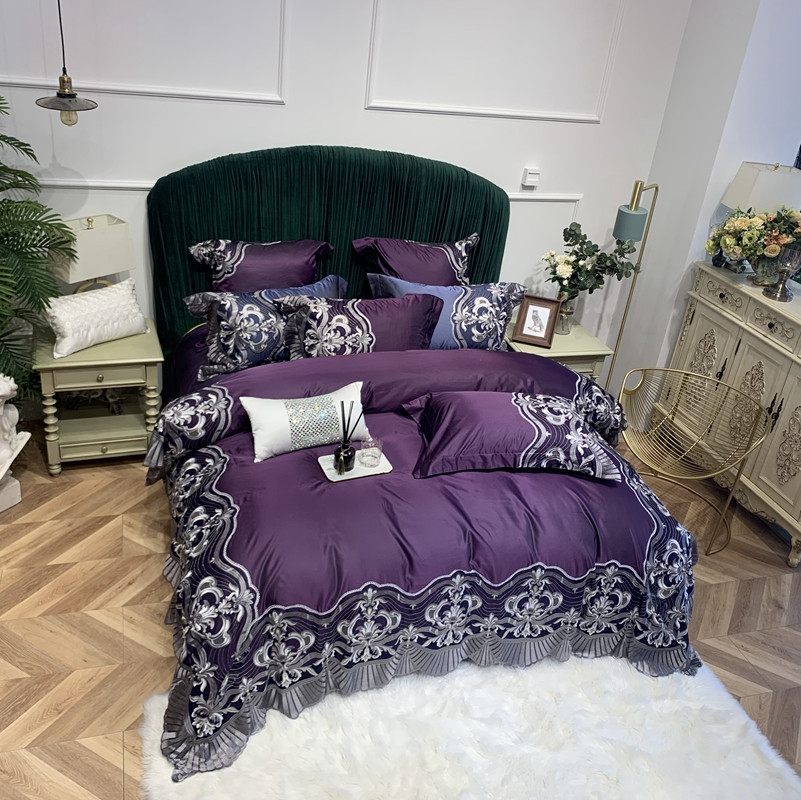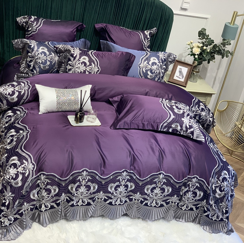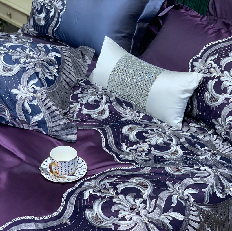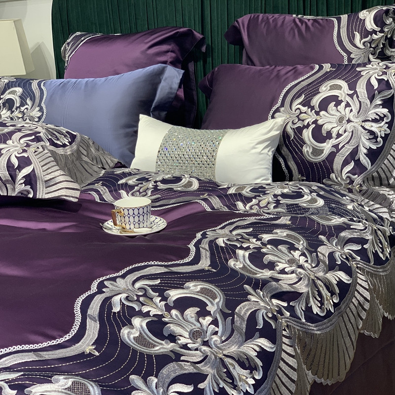 商品名称:缔缦家纺 2022新款重磅真丝棉系列四件套-巴萨湖畔 深紫