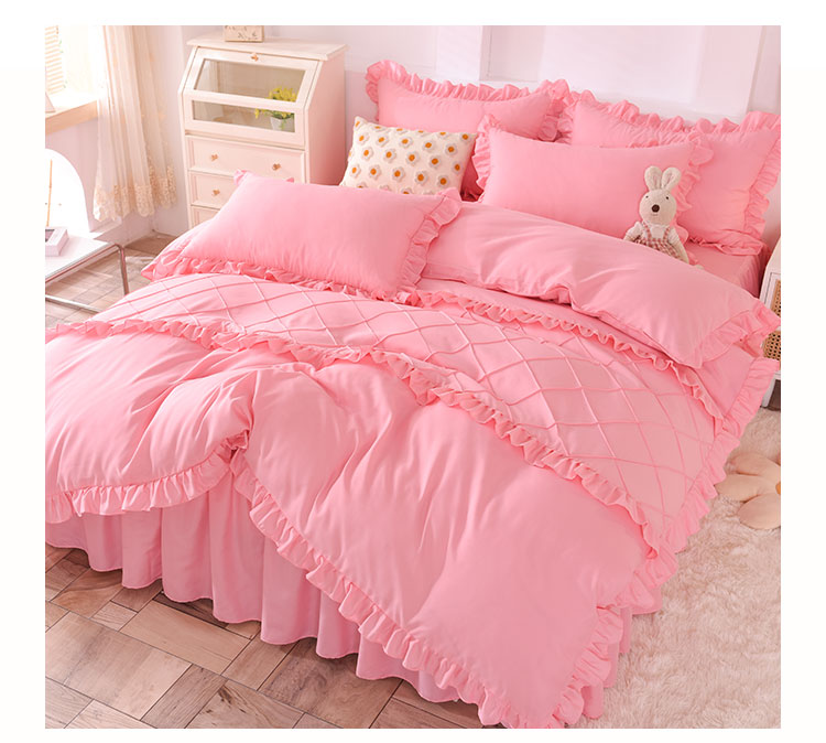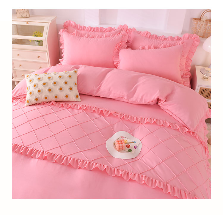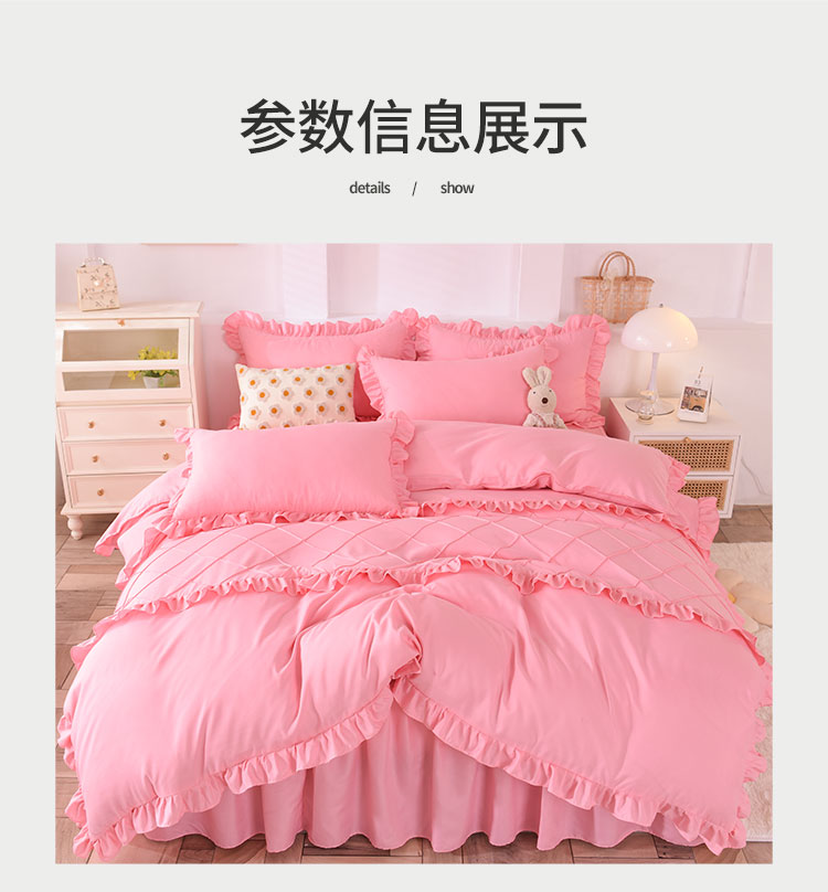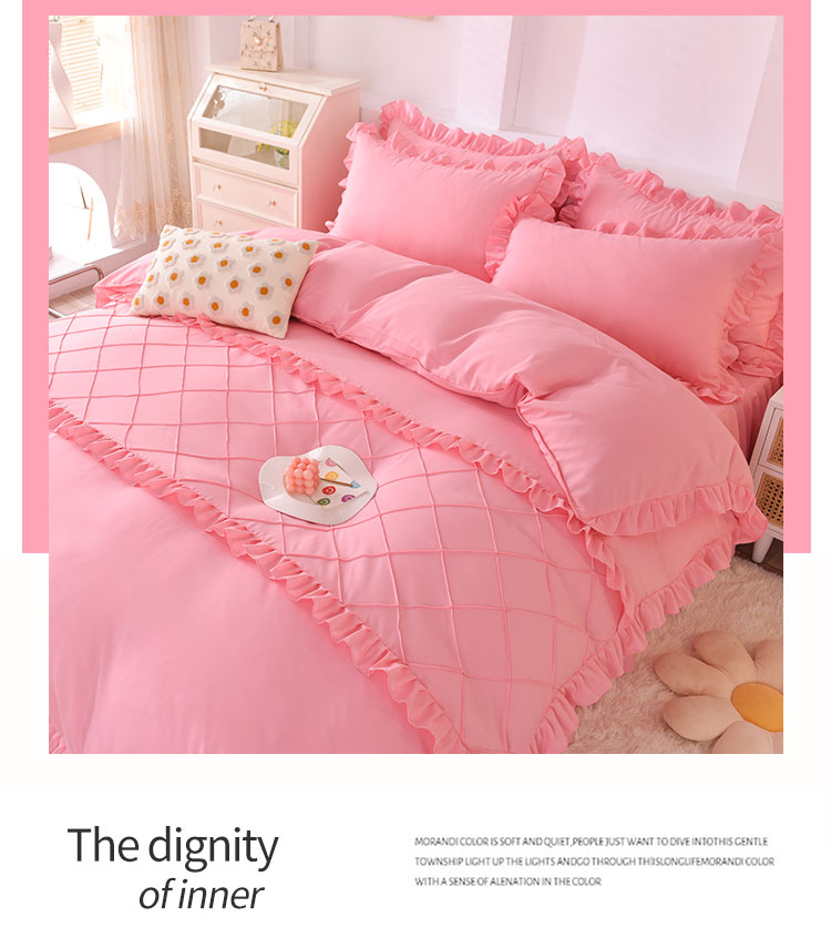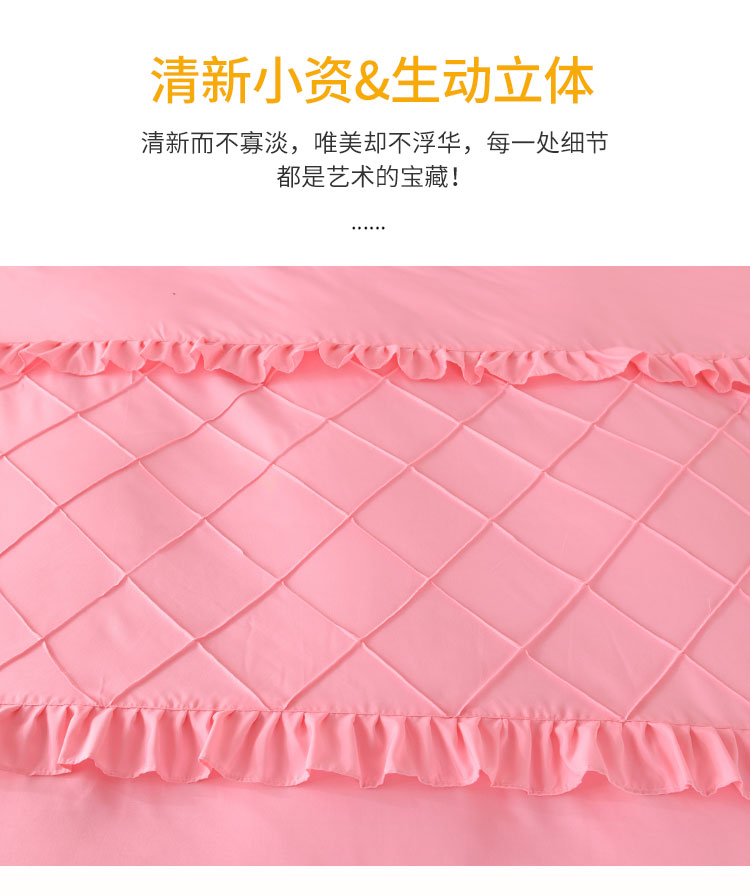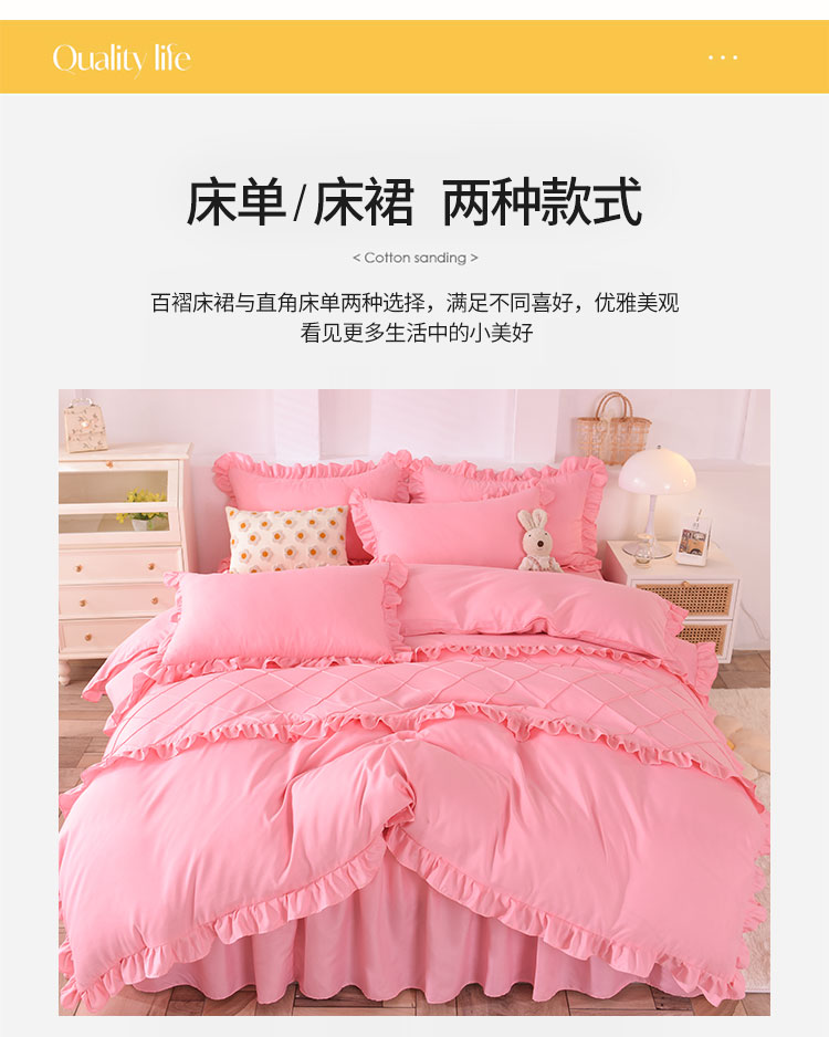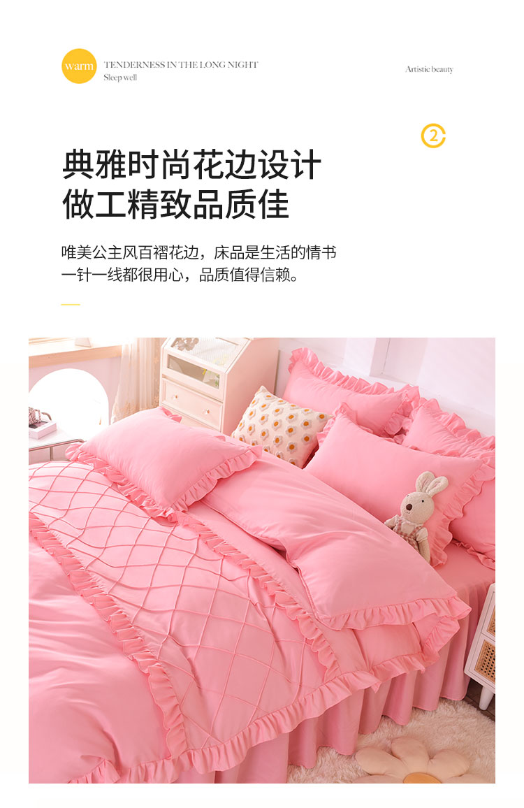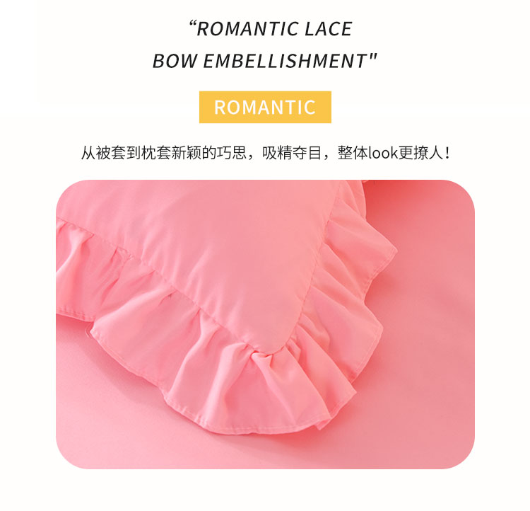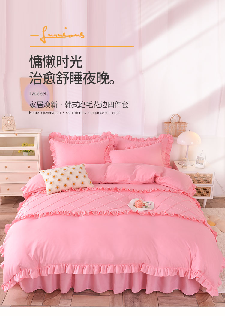 当前位置: 91家纺网 > 商品网购 > 床品套件 > 四件套 > 普通磨毛四件套 > 芭比蔓家纺 2024新款韩版磨毛花边四件套 邂逅-嫣红