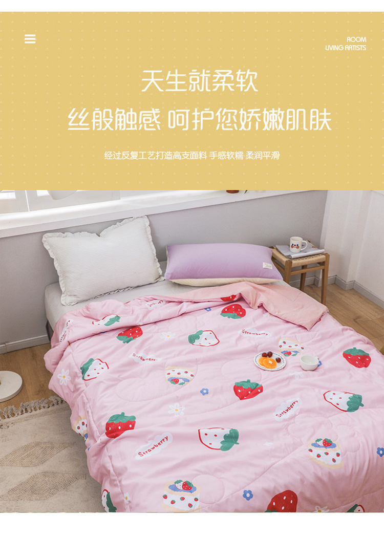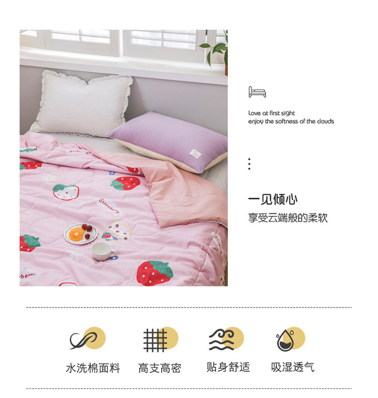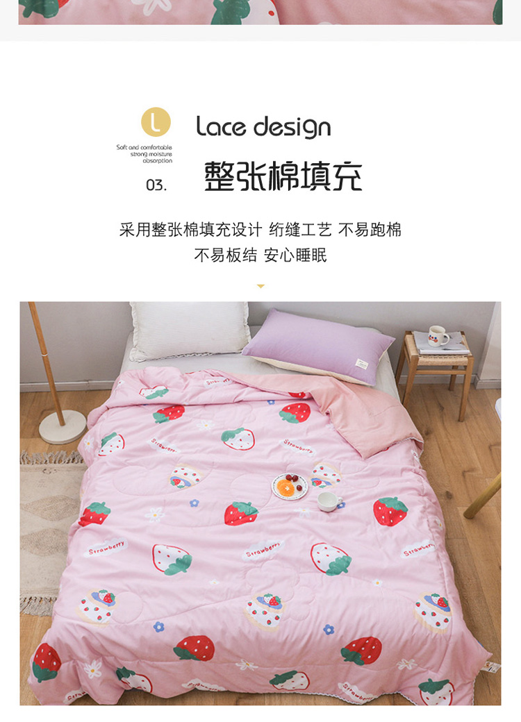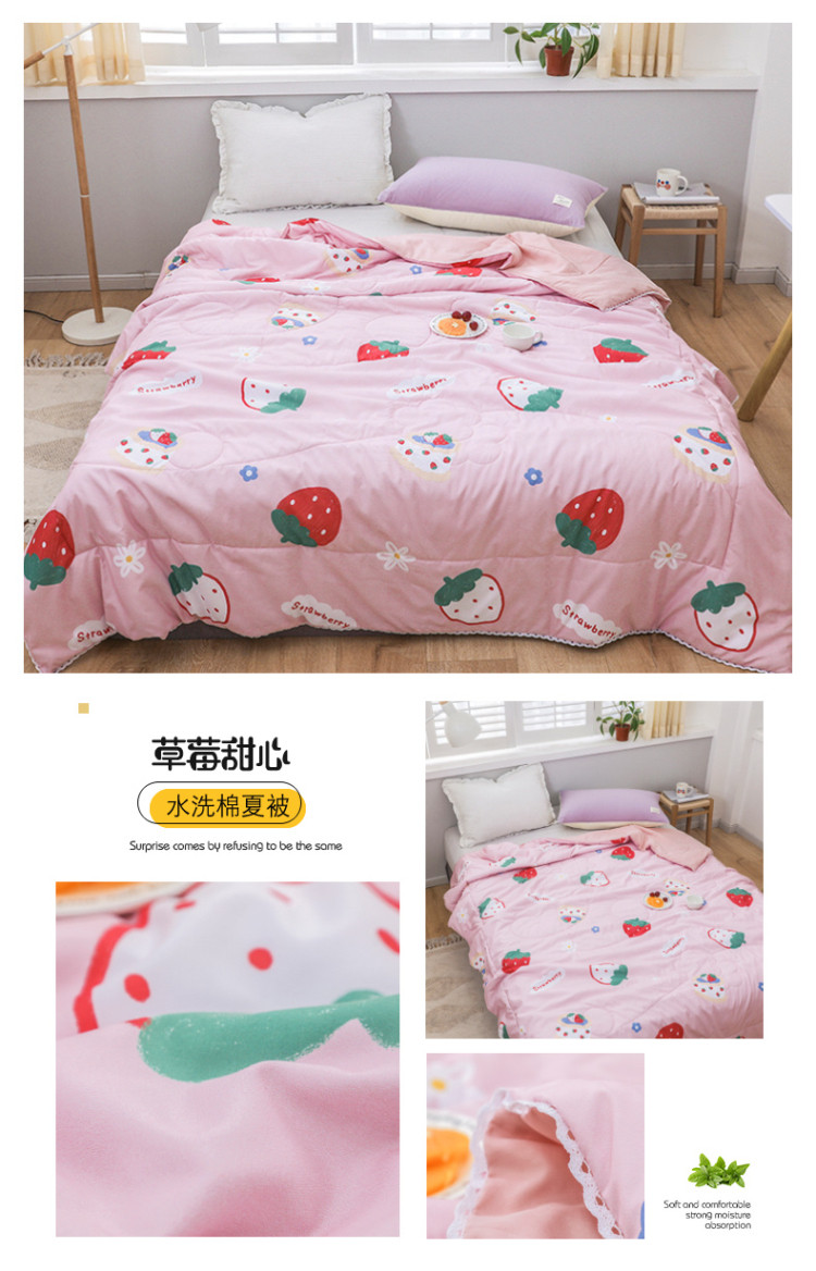 商品名称:寐居家纺 2022新款水洗棉小花边单夏被 草莓甜心