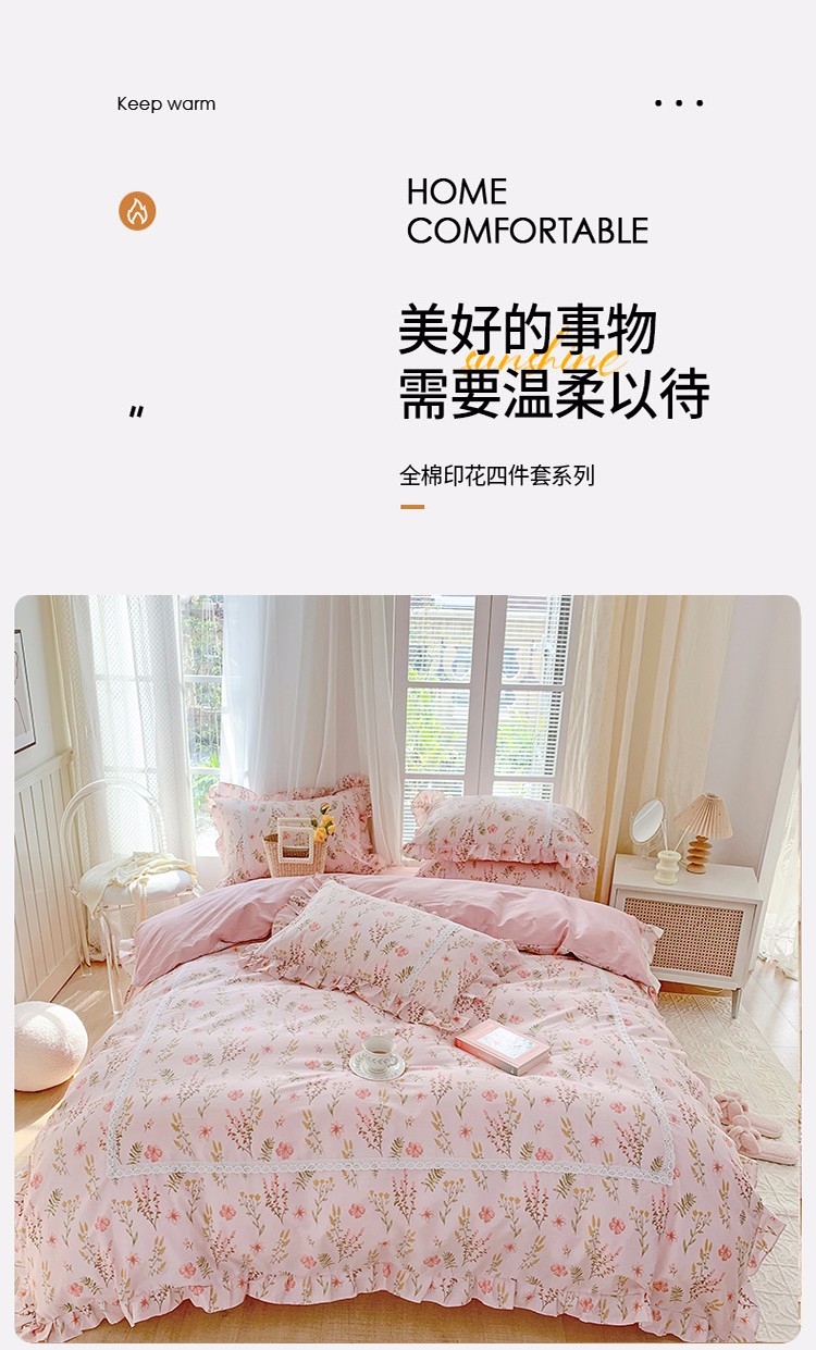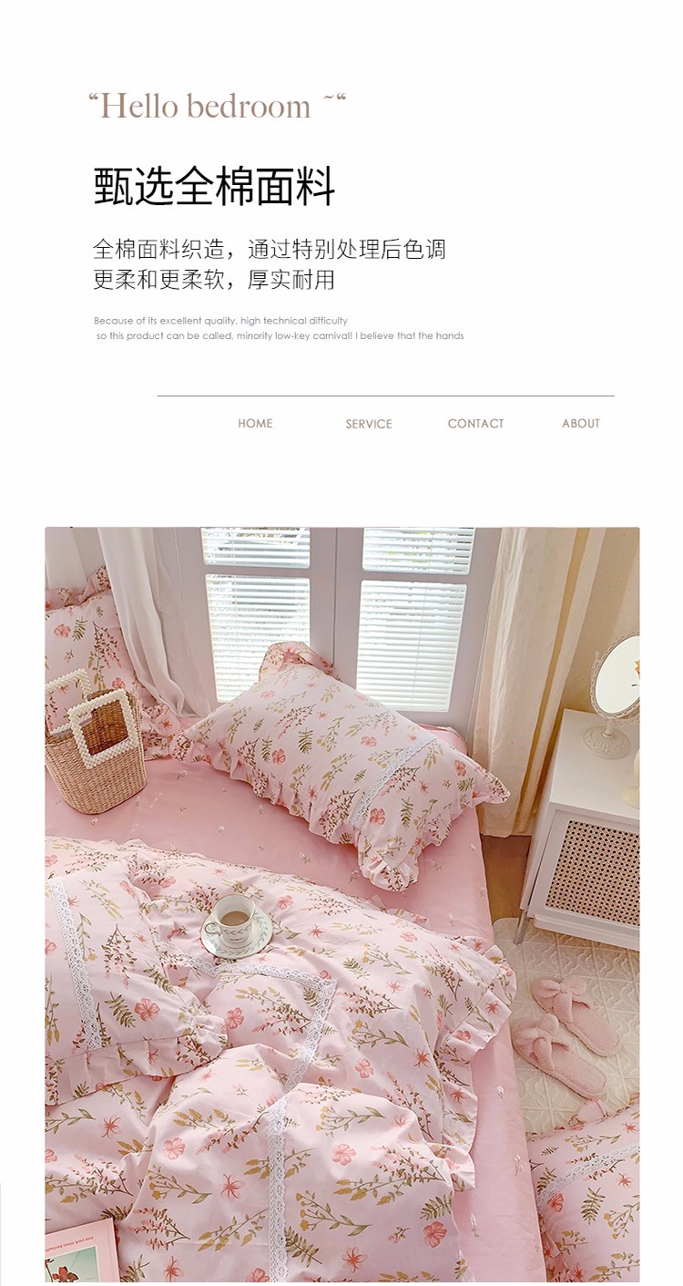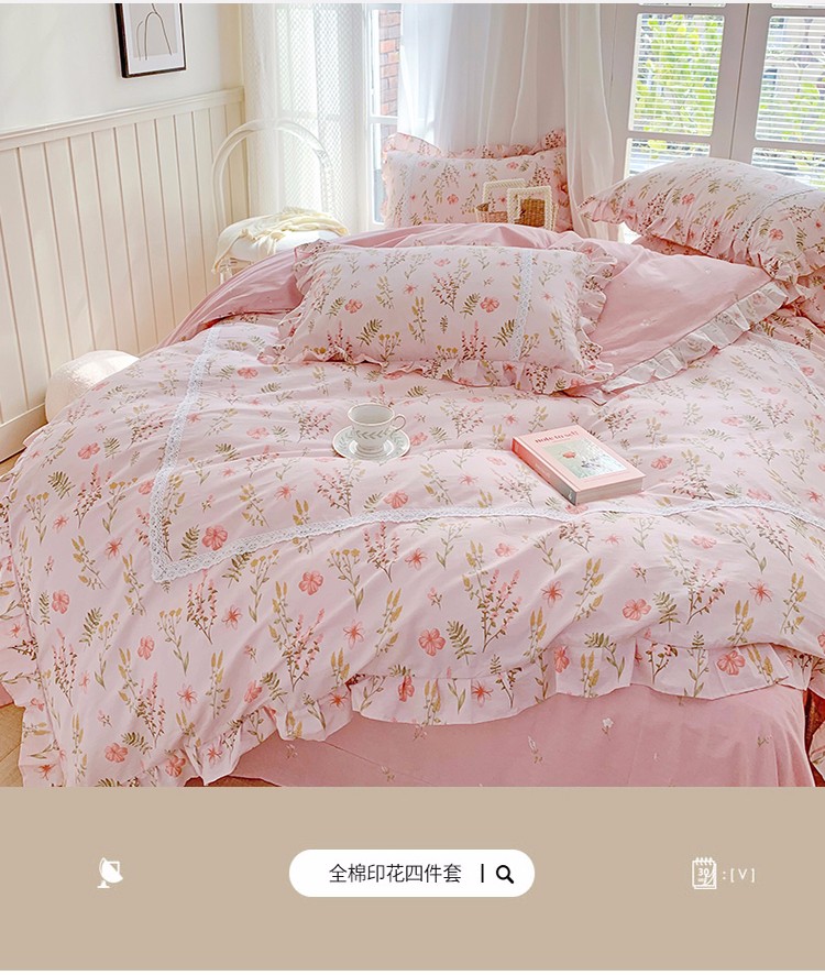 (总)眠屿 2022新款全棉小碎花法式花边四件套,春婵,芳华,韩式小花,花间兔,花开半夏,花叶,蓝花兔,罗曼花语,绿萌,梦妆花园,硕果,春华秋实,菲菲兔,花丛间,捧花熊,硕果,田园物语,甜趣草莓,樱桃小花,金色花语,四季芳香