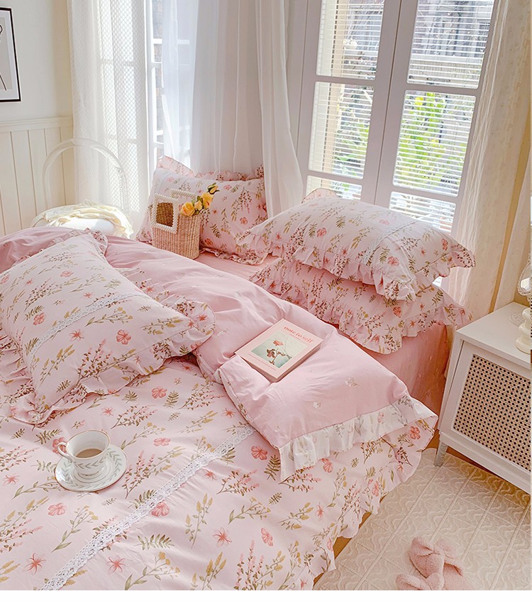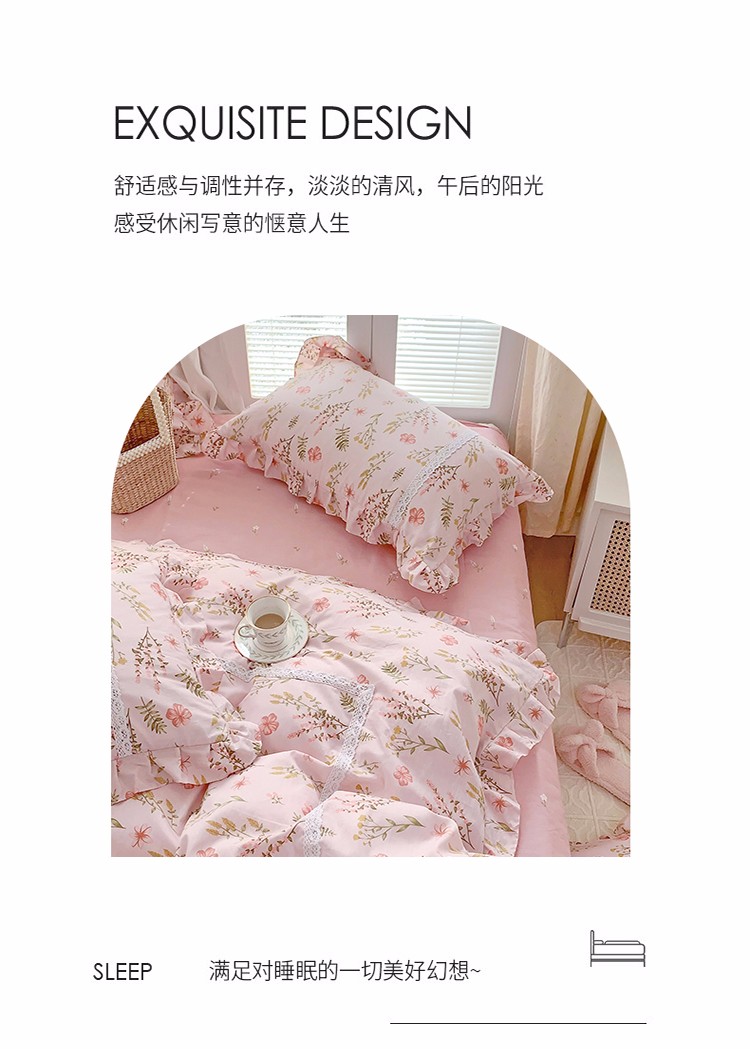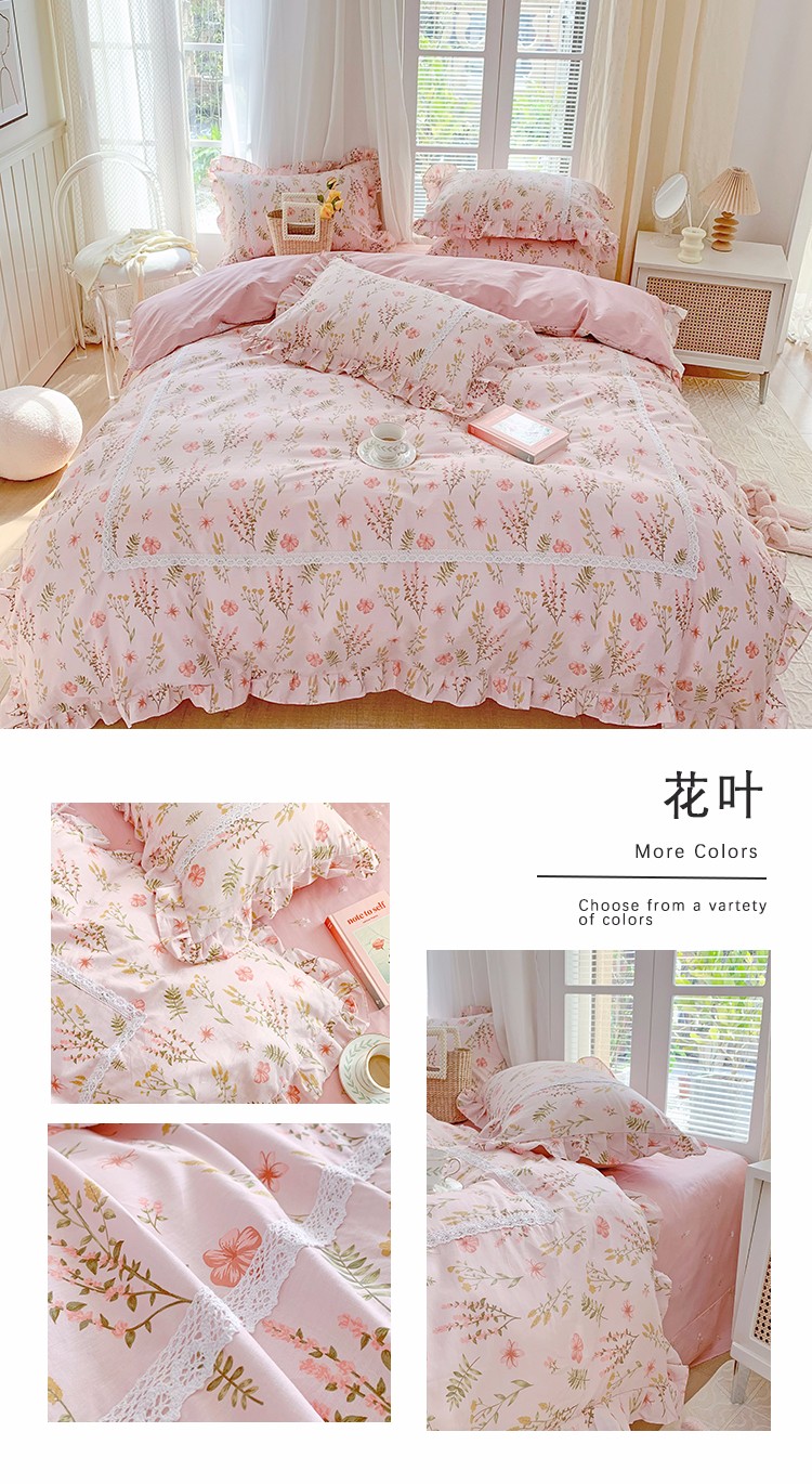 眠屿 2022新款全棉小碎花法式花边四件套 花叶