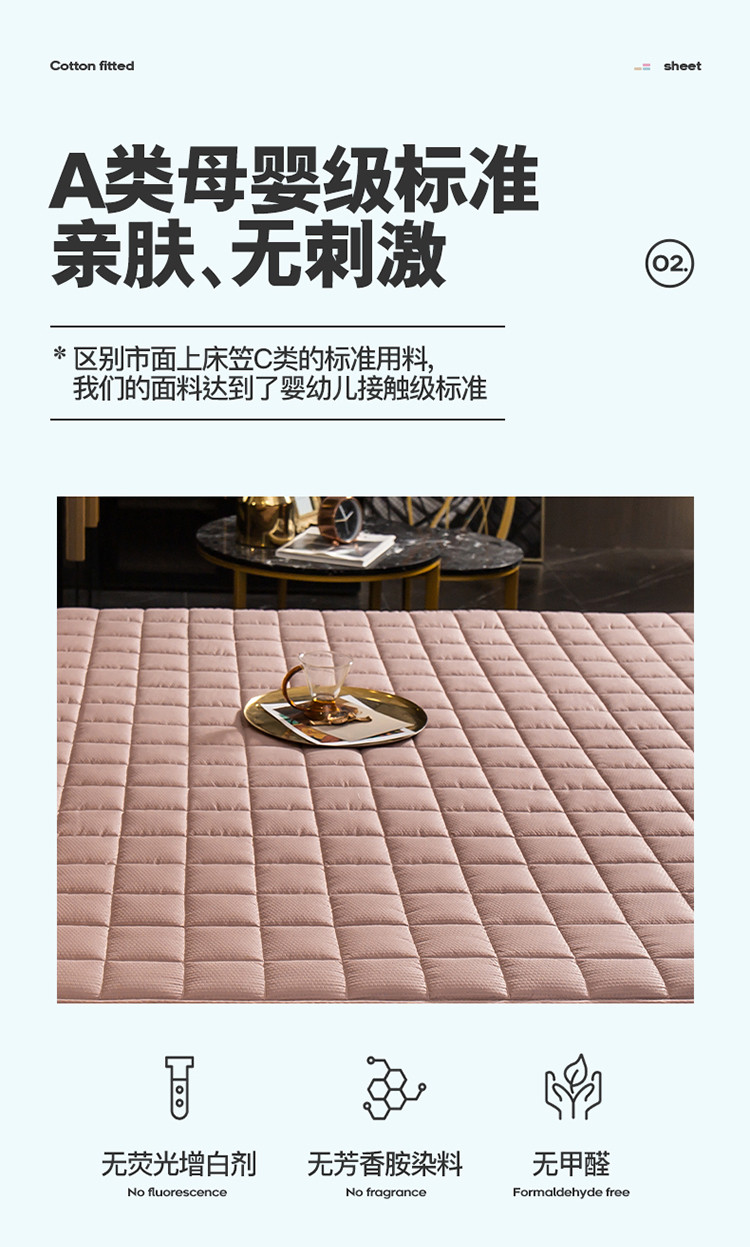 商品名称:塔塔家居 2025新款抗菌超柔防水夹棉床笠 暖系粉