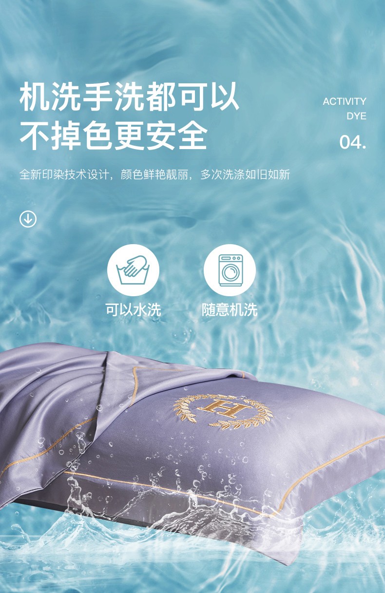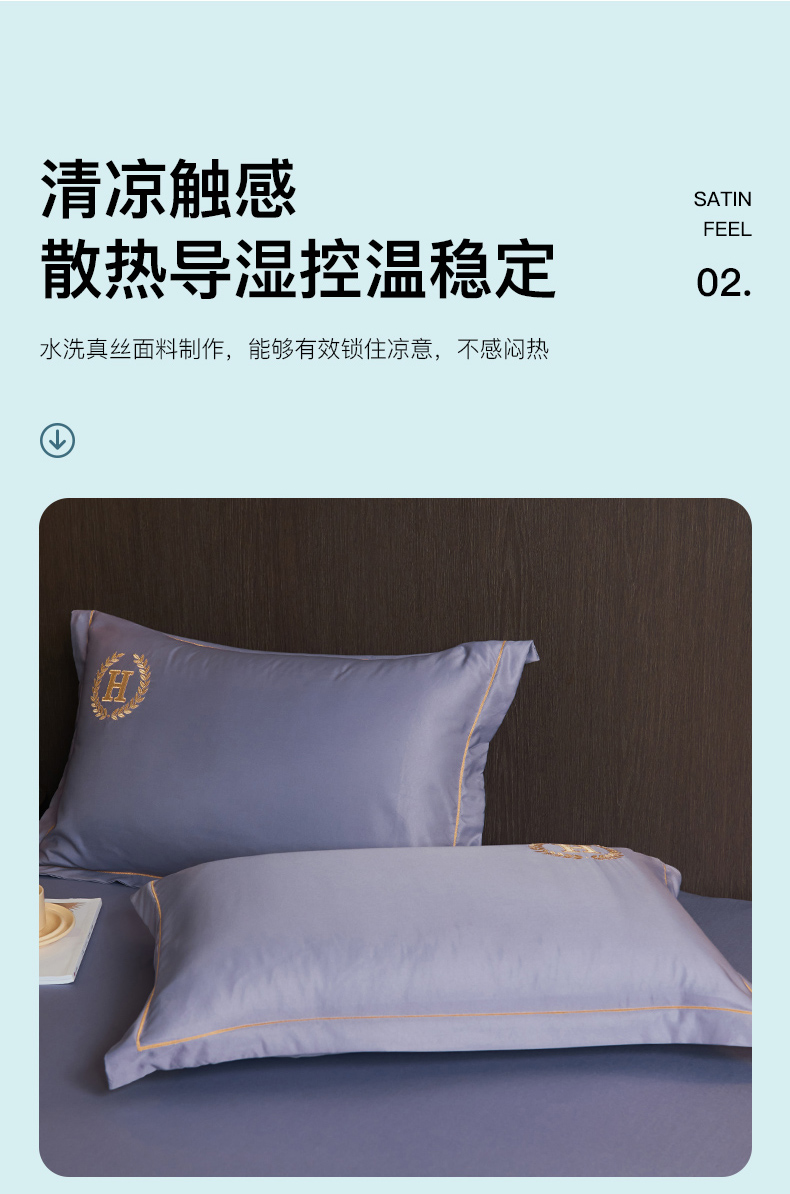 水洗真丝枕套单人枕套刺绣加密枕芯学生宿舍家用48x74一对装 夏月-芝兰紫(一只)