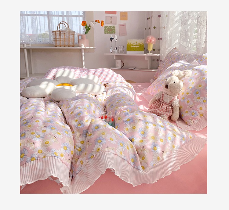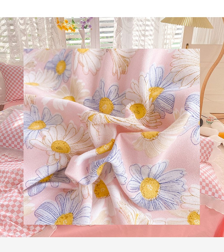 大米家居双面用小雏菊雪纺花边海岛棉四件套 小雏菊-梅(粉色)
