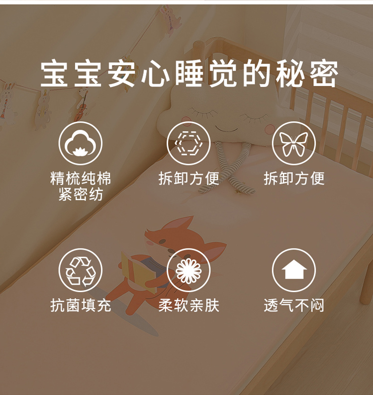 当前位置: 91家纺网 > 商品网购 > 床垫/床褥/床护垫 > 儿童床垫 > 喜多兔 2022新款精梳纯棉彩虹针织抗菌儿童床垫 粉色读书小狐狸