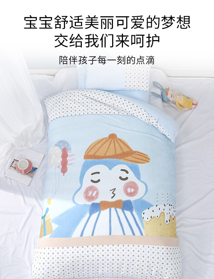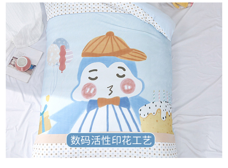商品名称:喜多兔 2022新款全棉针织三件套床品套件-小甜点 蓝色蛋糕企鹅