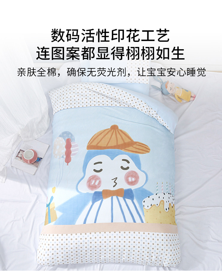 喜多兔 2022新款全棉针织三件套床品套件-小甜点 蓝色蛋糕企鹅