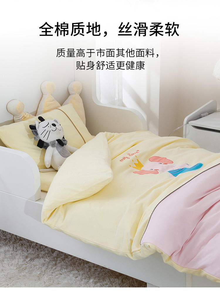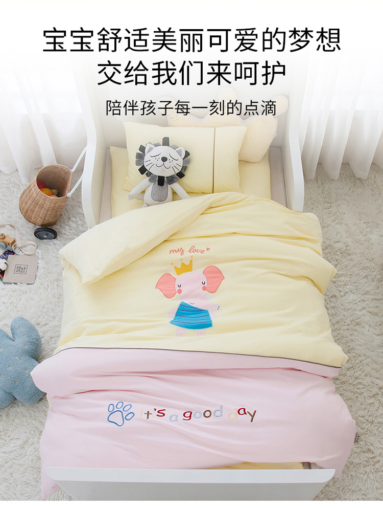 商品名称:喜多兔 2022新款全棉针织三件套床品套件-神奇伙伴 黄色小象公主