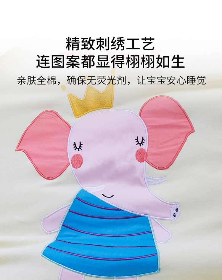 (总)喜多兔儿童家纺 2025春夏新款小软萌贴布绣纱布被,粉色软萌小兔,卡其色软萌小熊,蓝色软萌小象,绿色软萌恐龙,组合图仅供展示