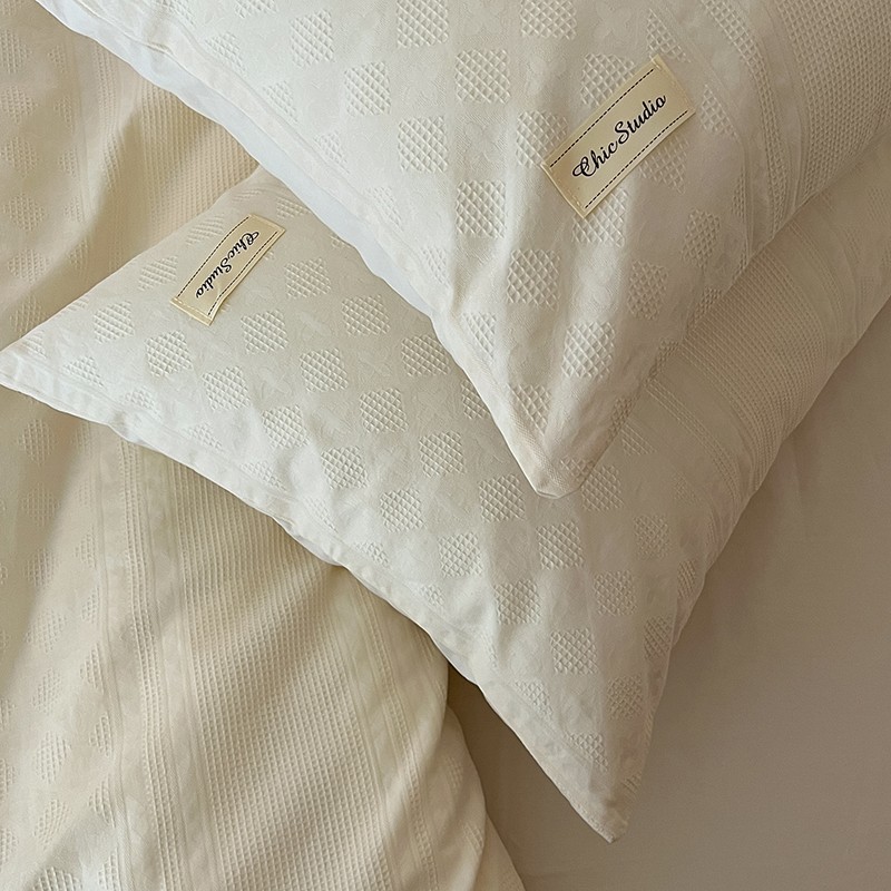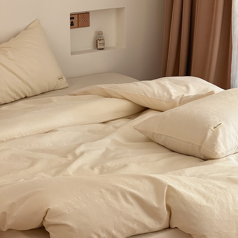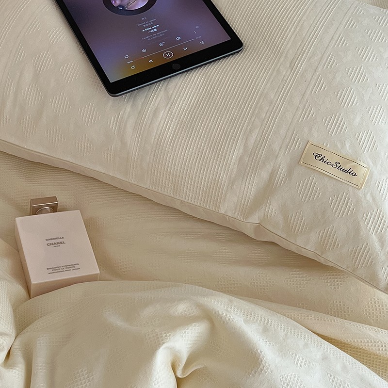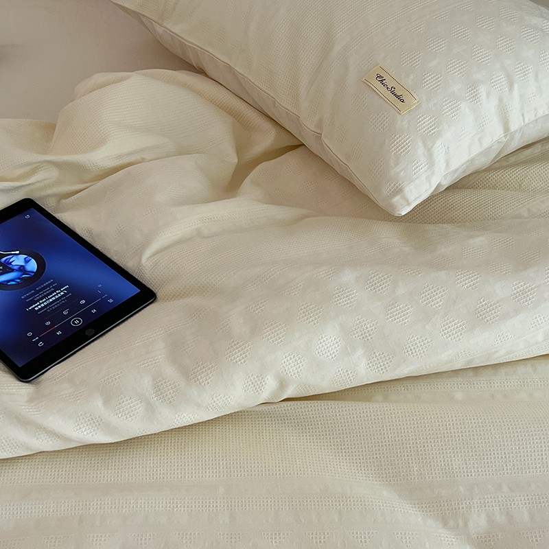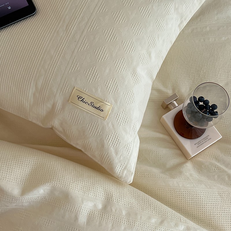 商品名称:昔可 2022新款60支水洗棉华夫格提花四件套拍法二 四花格米白