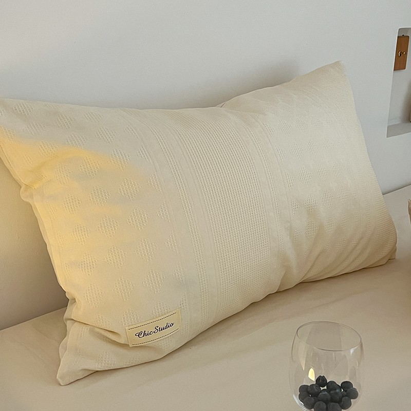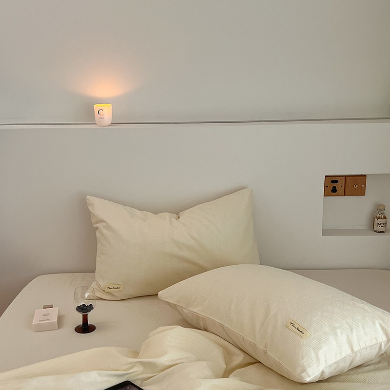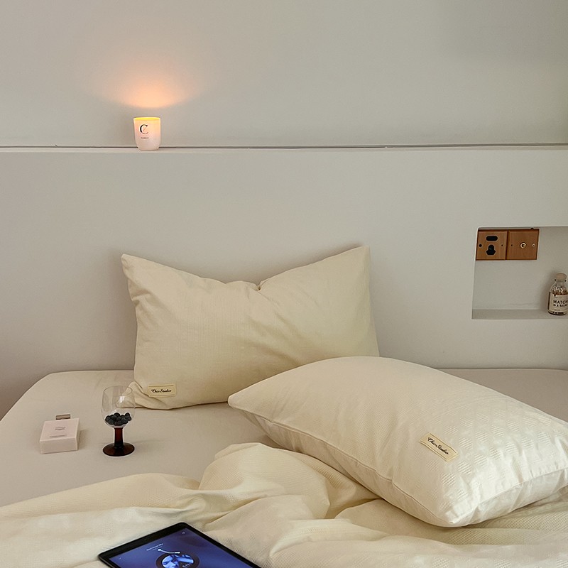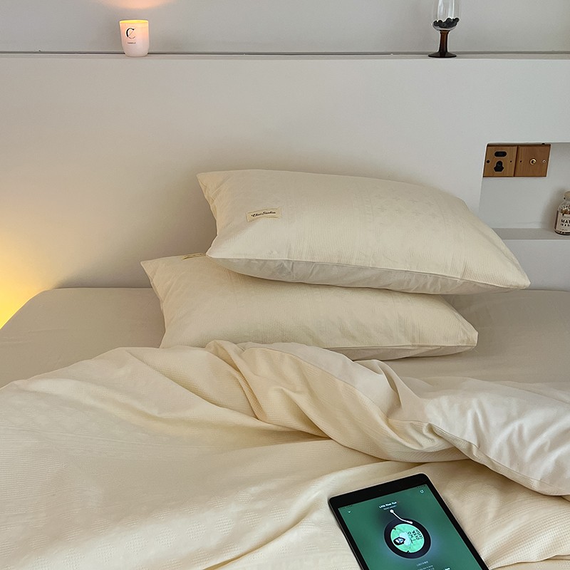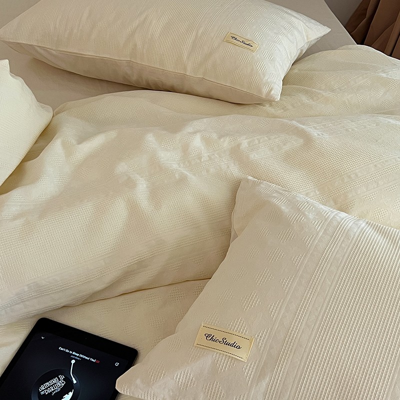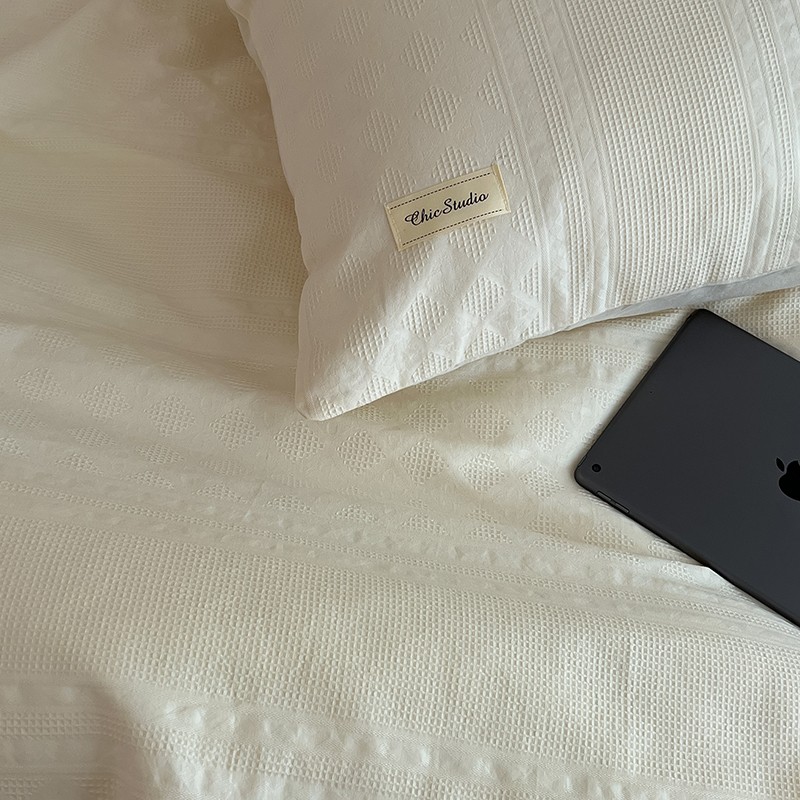 商品名称:昔可 2022新款60支水洗棉华夫格提花四件套拍法二 四花格米白