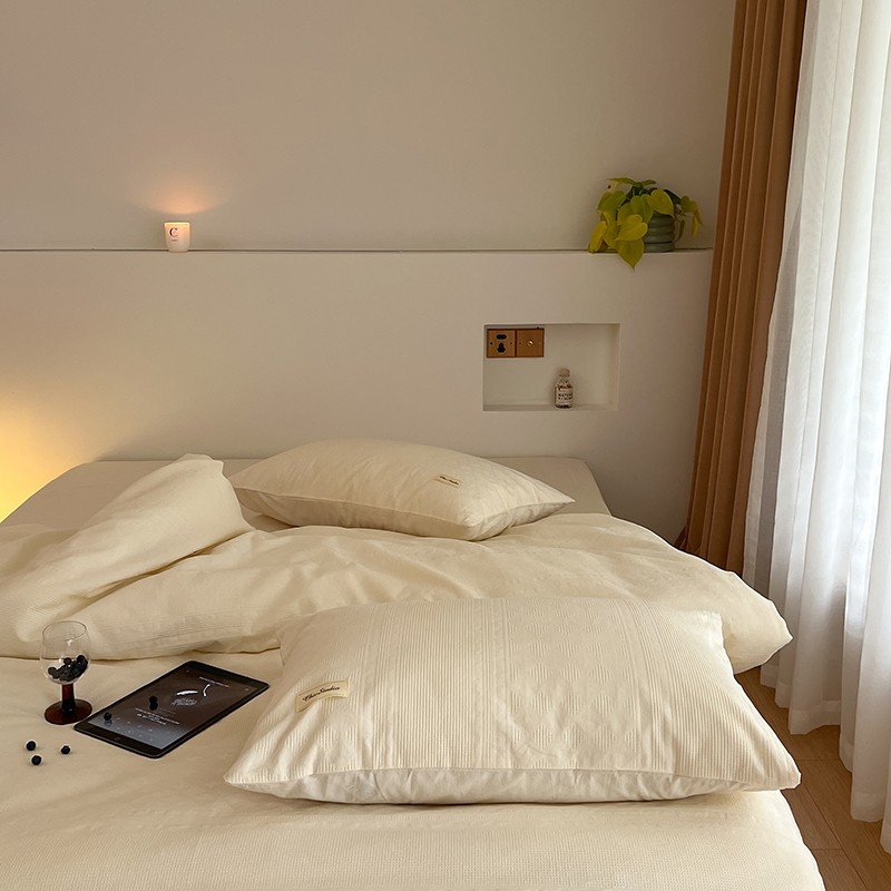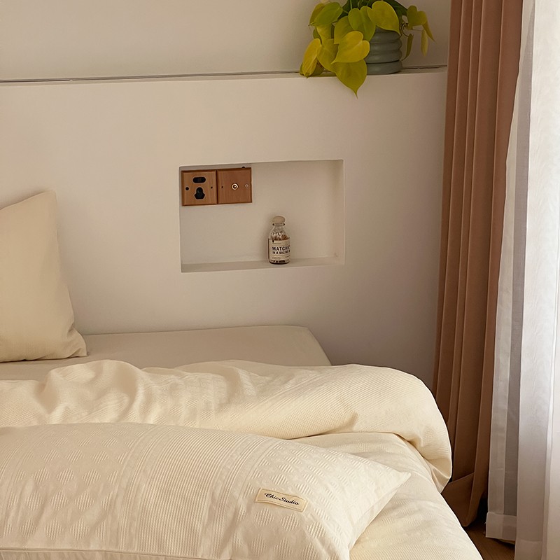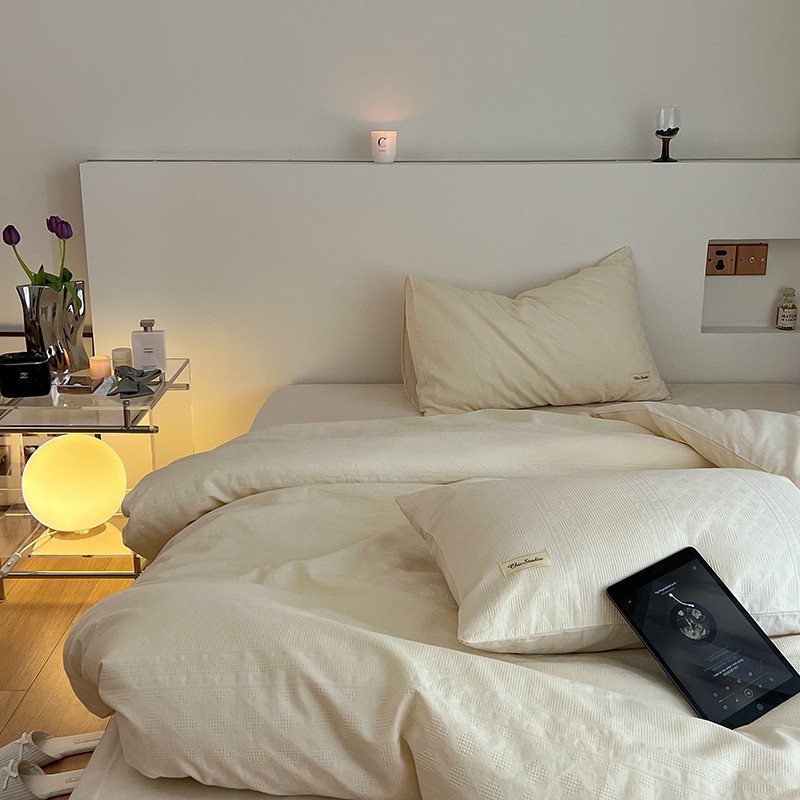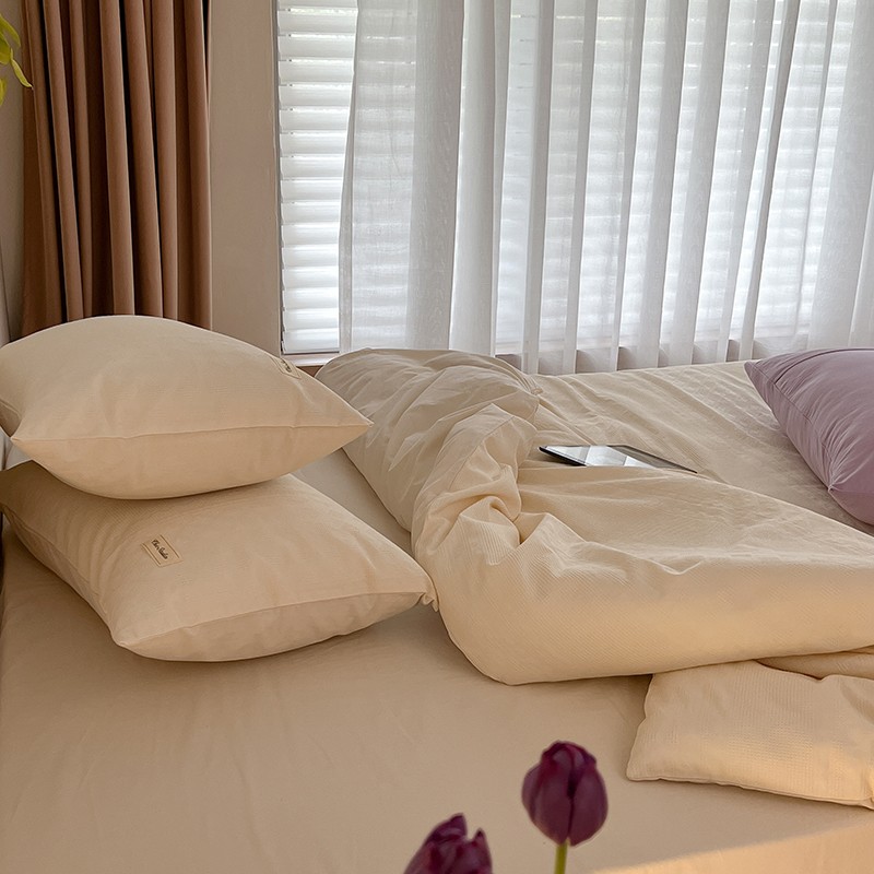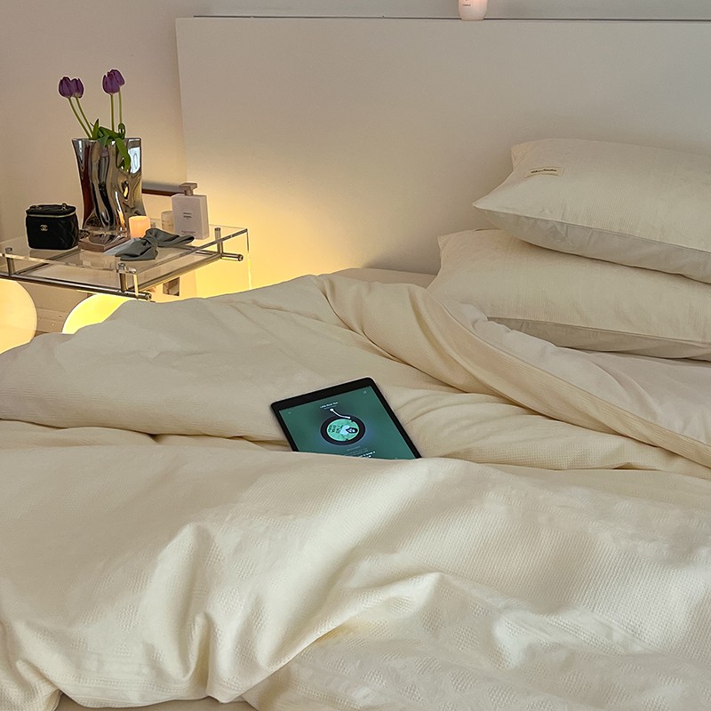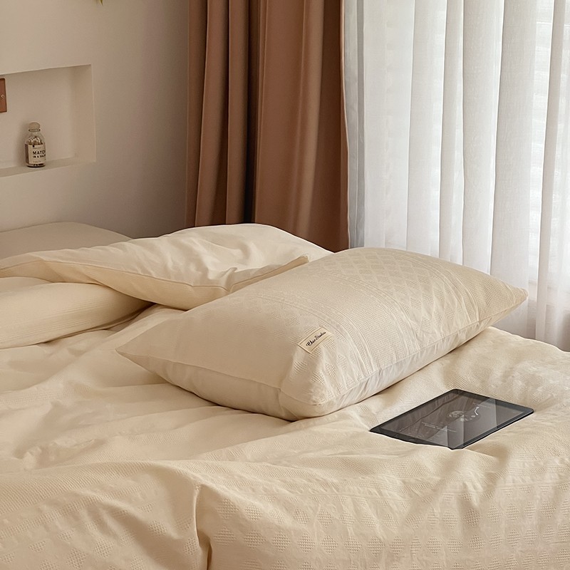 昔可 2022新款60支水洗棉华夫格提花四件套拍法二 四花格米白