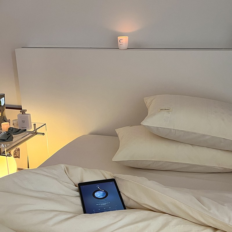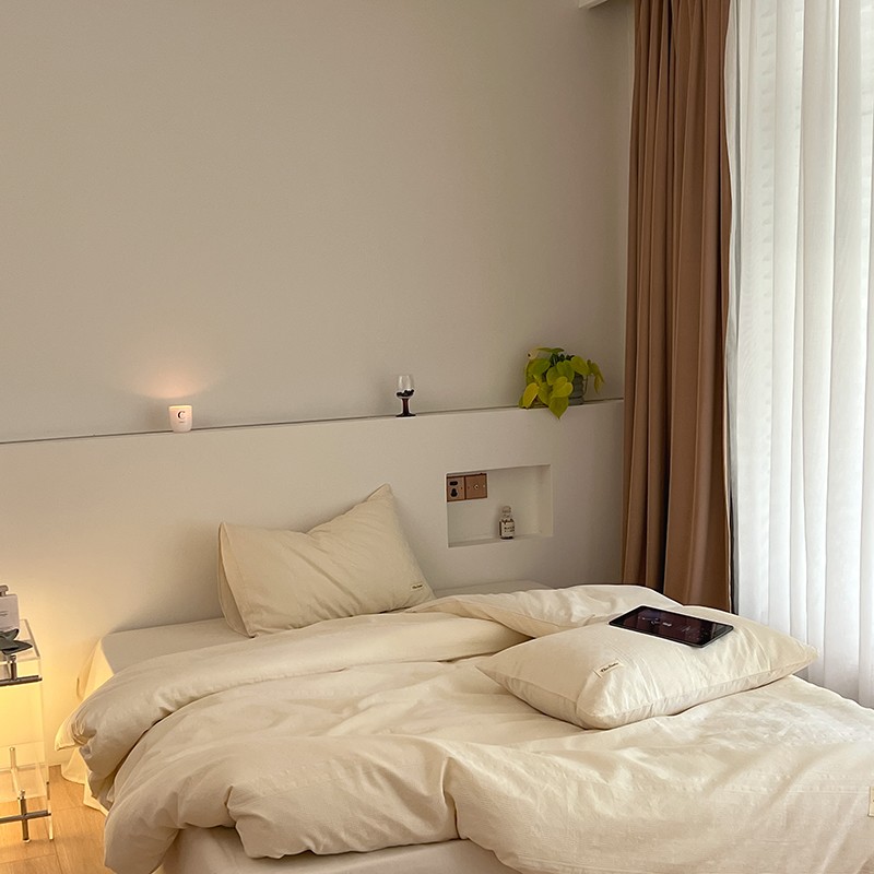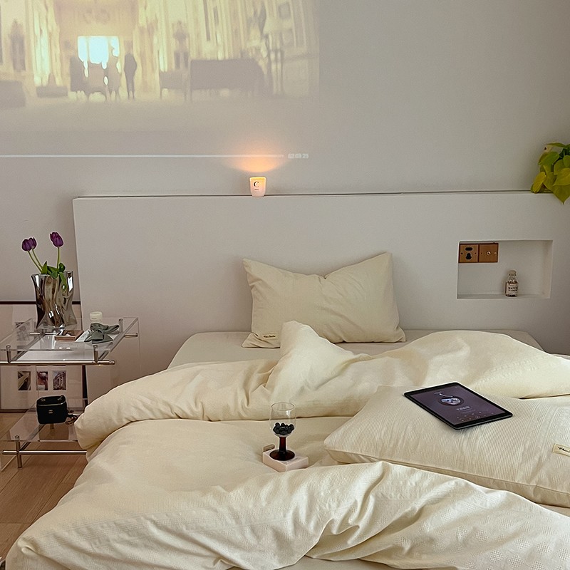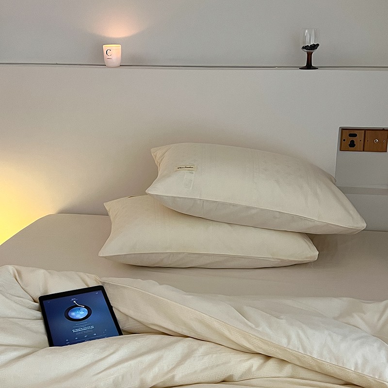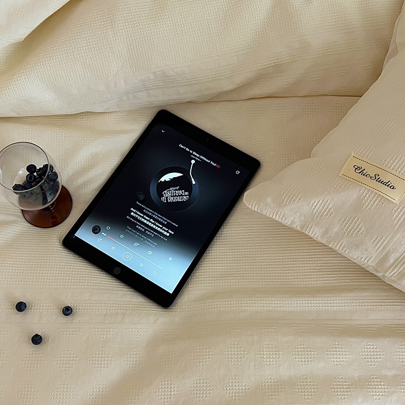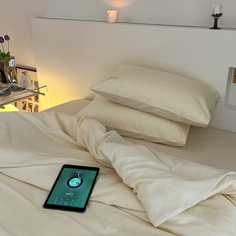 昔可 2022新款60支水洗棉华夫格提花四件套拍法二 四花格米白
