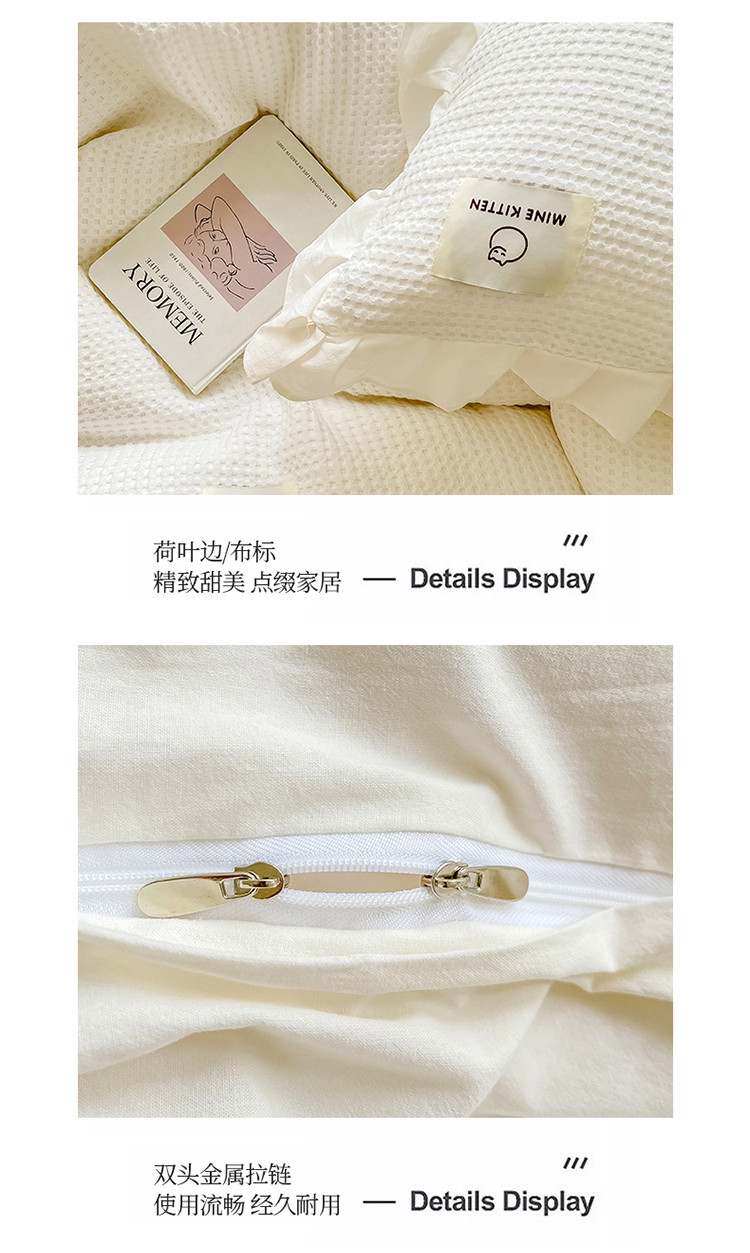 商品名称:雅萱 2022新款全棉华夫格水洗棉四件套花边款 奶油白