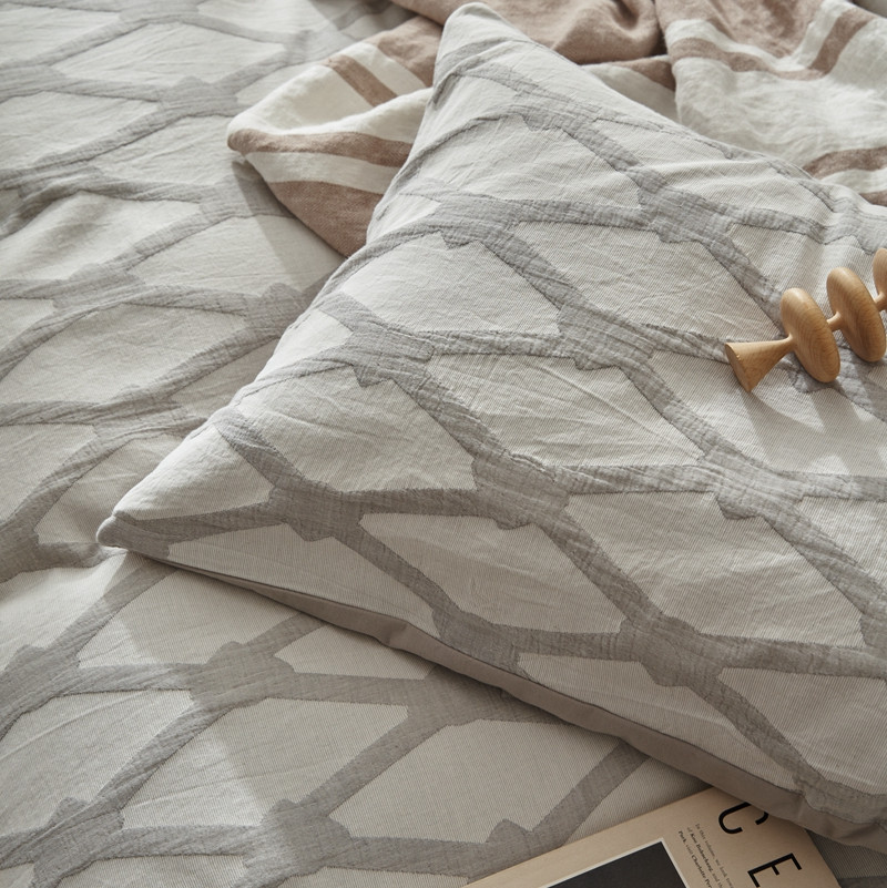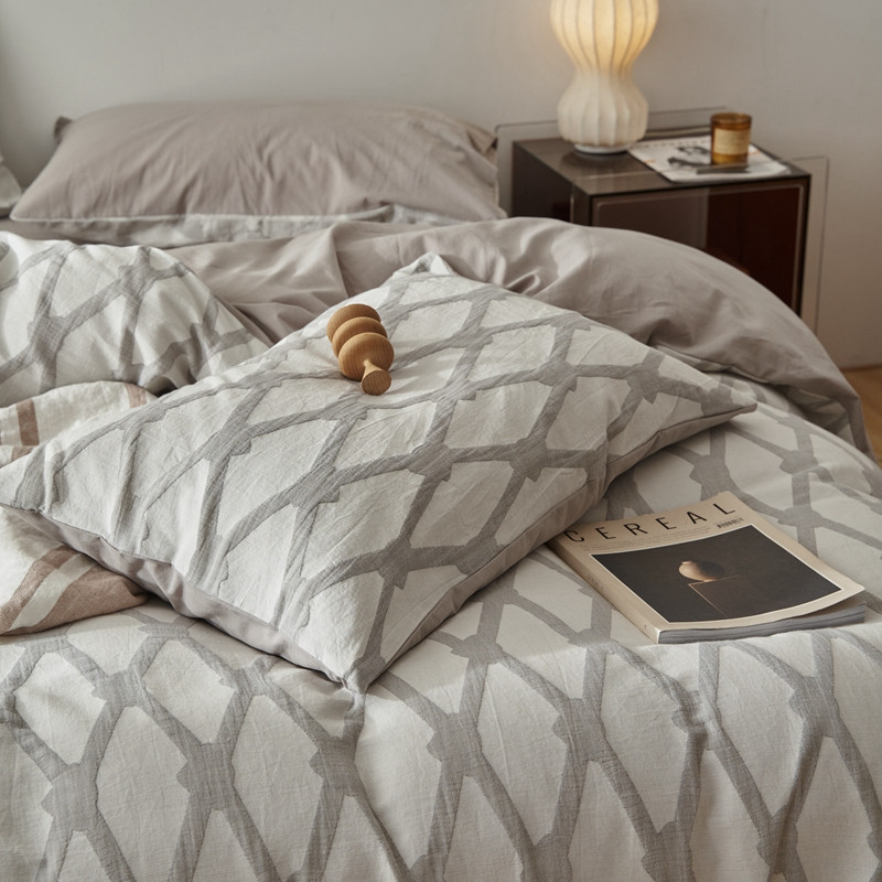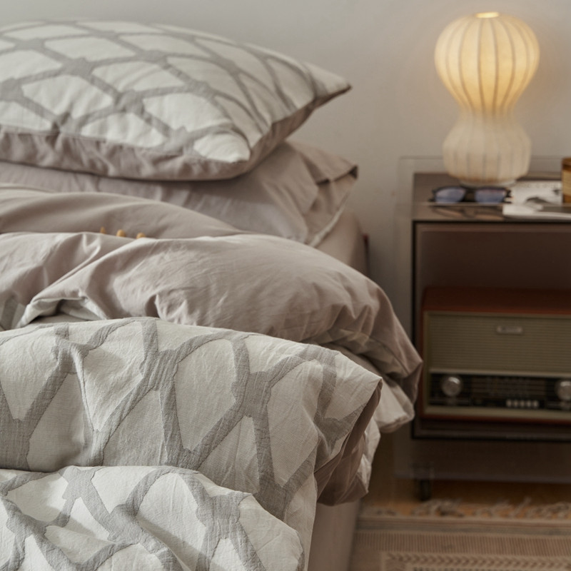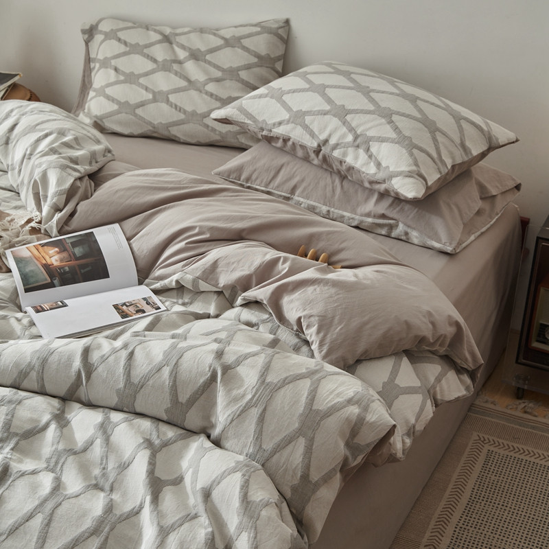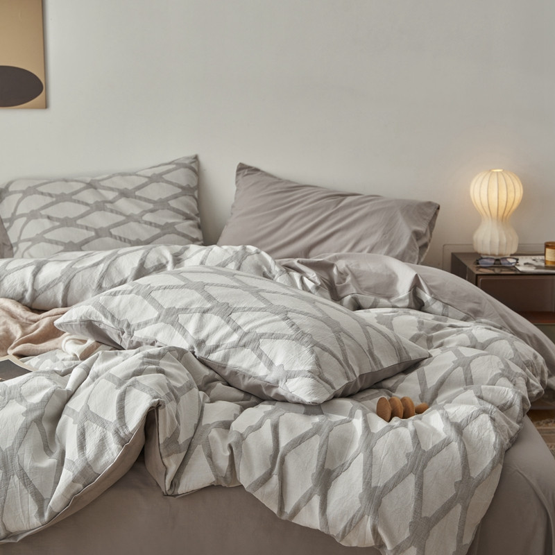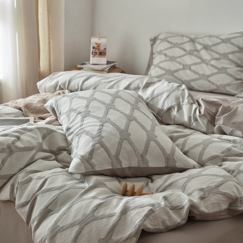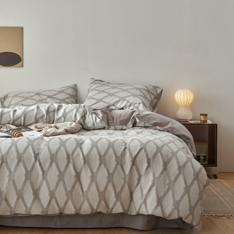 简家居 2022新款全棉色织大提花帛格系列四件套帛格-灰