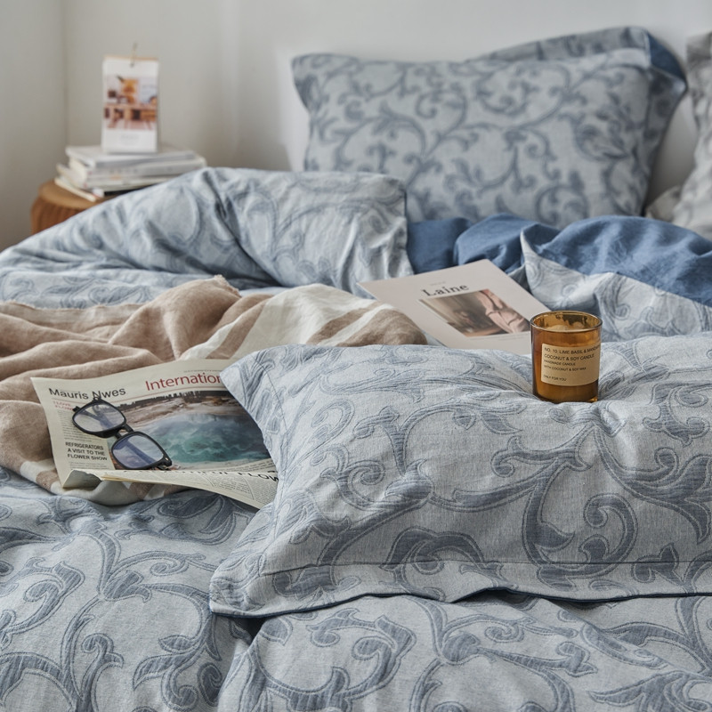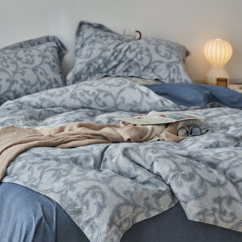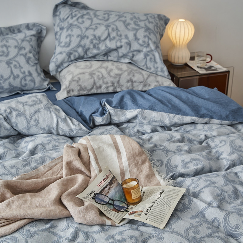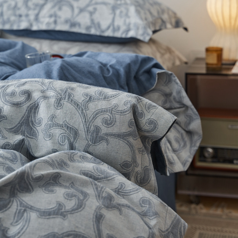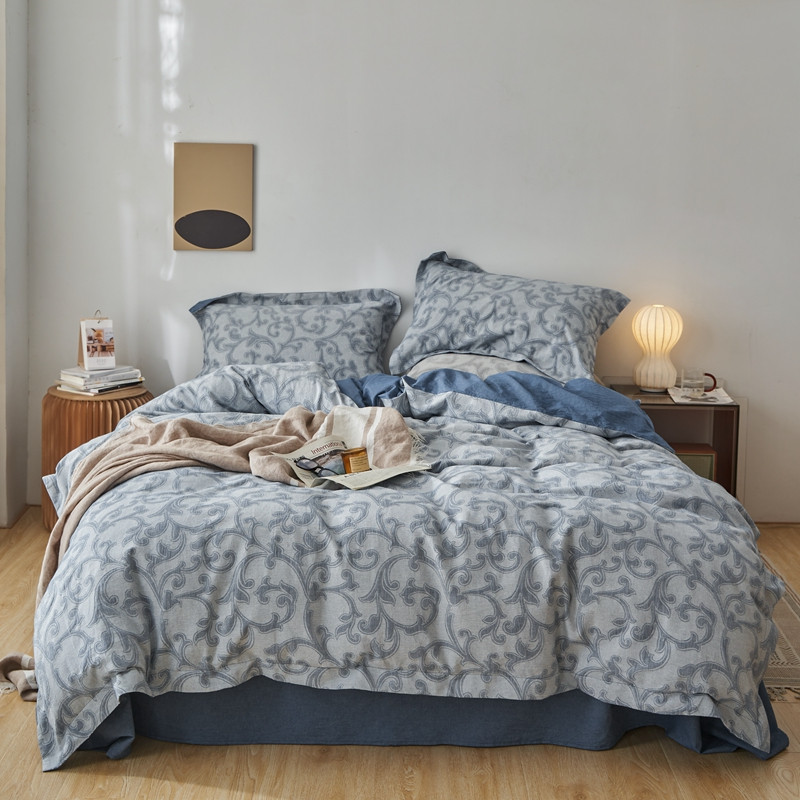 (总)简家居 2025新款20%亚麻80%棉棉麻提花四件套-法颂,法颂