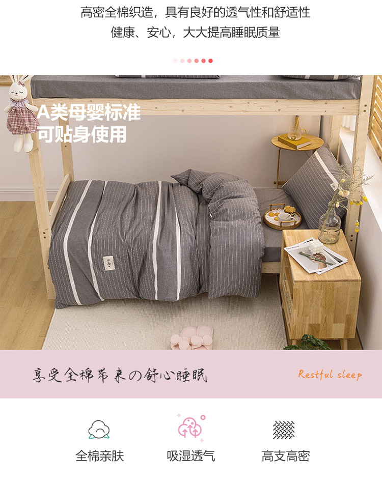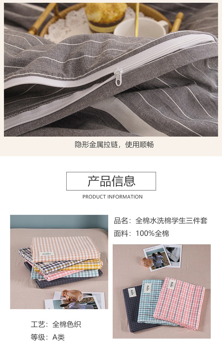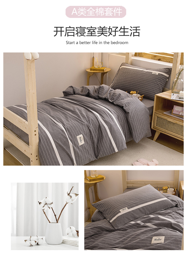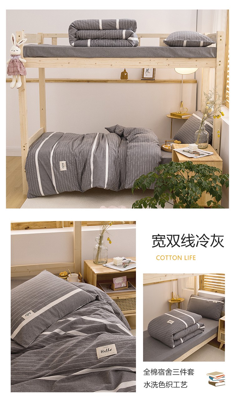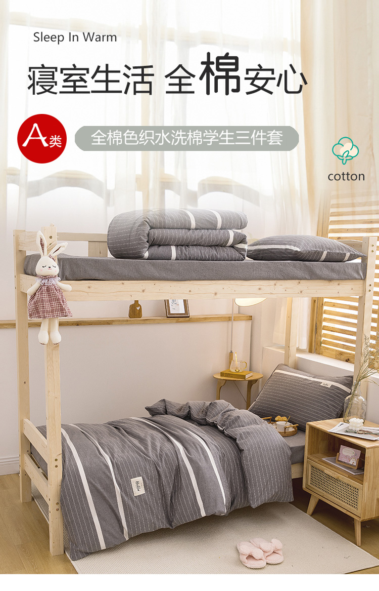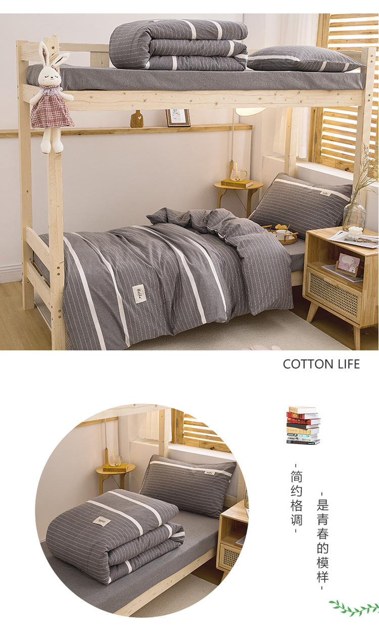 当前位置: 91家纺网 > 商品网购 > 床品套件 > 三件套 > 柠萌 新款A类全棉色织水洗棉学生上下铺全棉三件套 宽双线冷灰