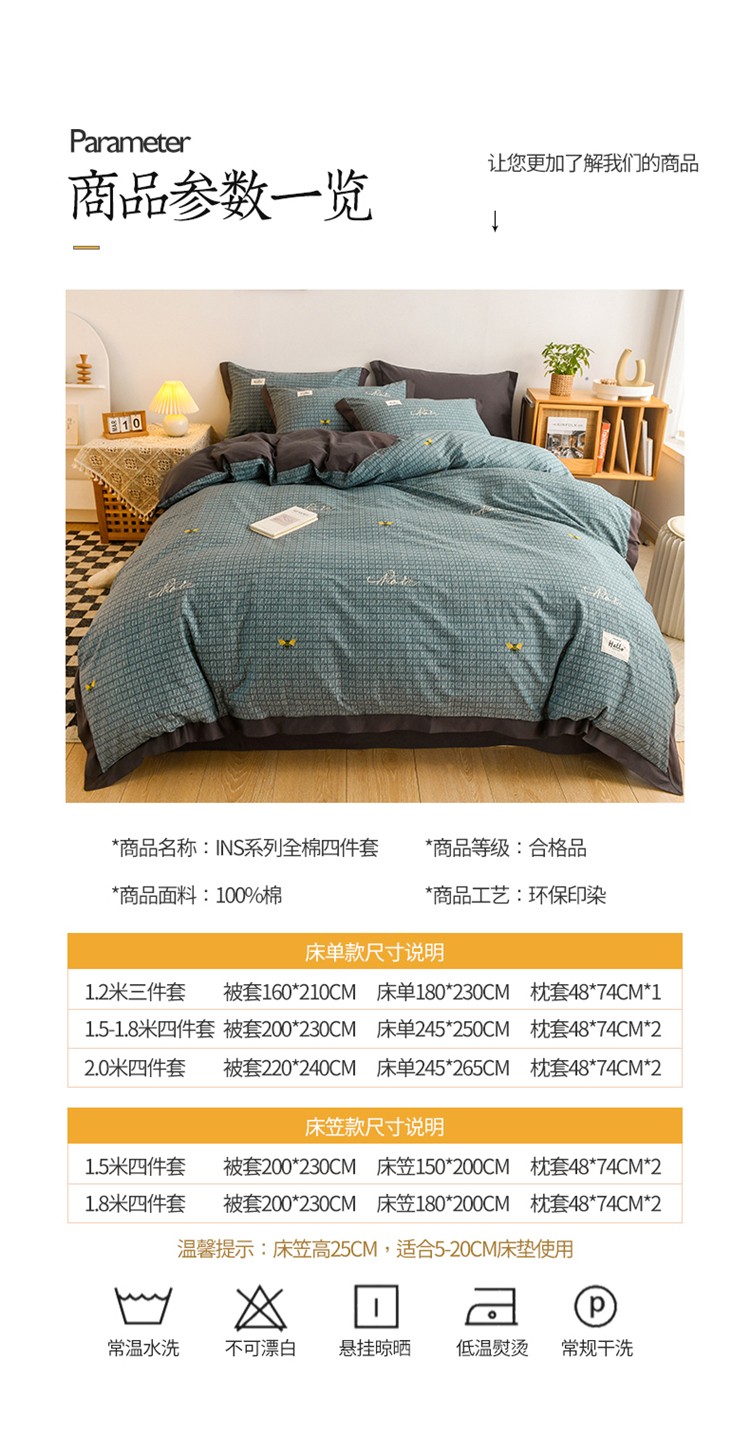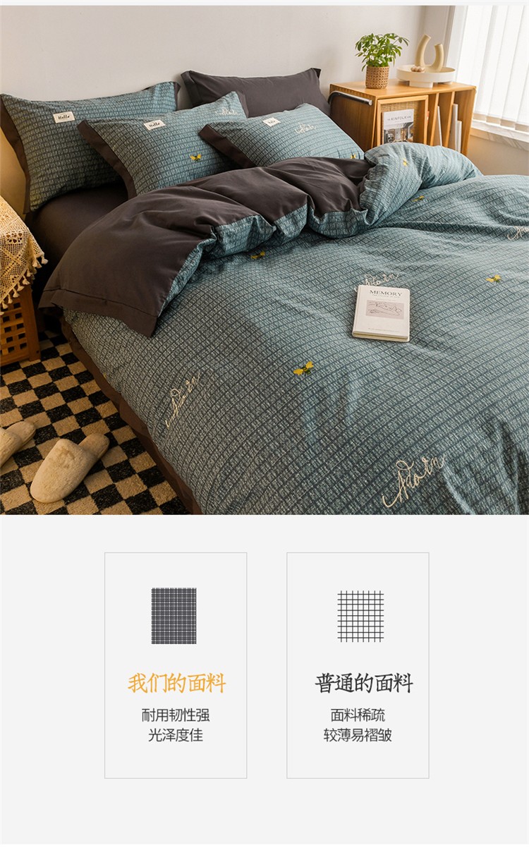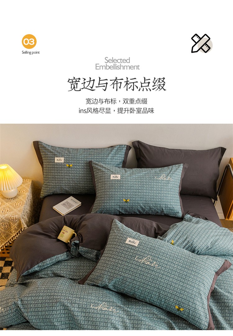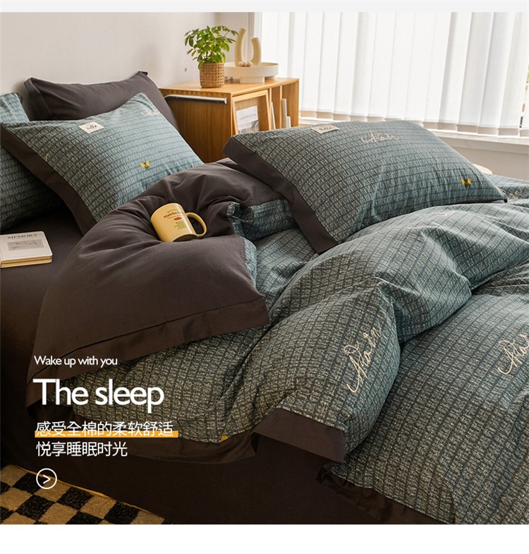 商品名称:花言狐语2025新款全棉色布13372拼角工艺款四件套 清欢
