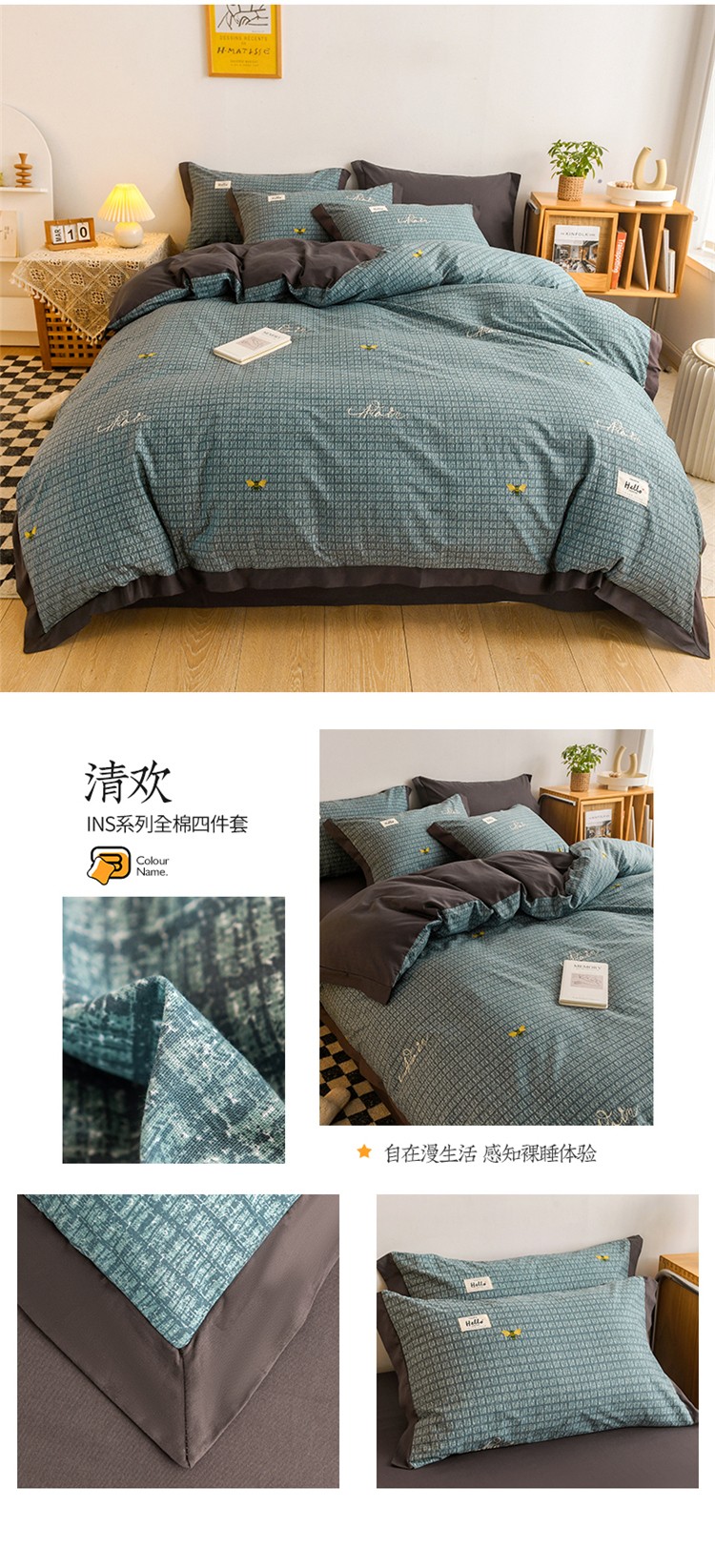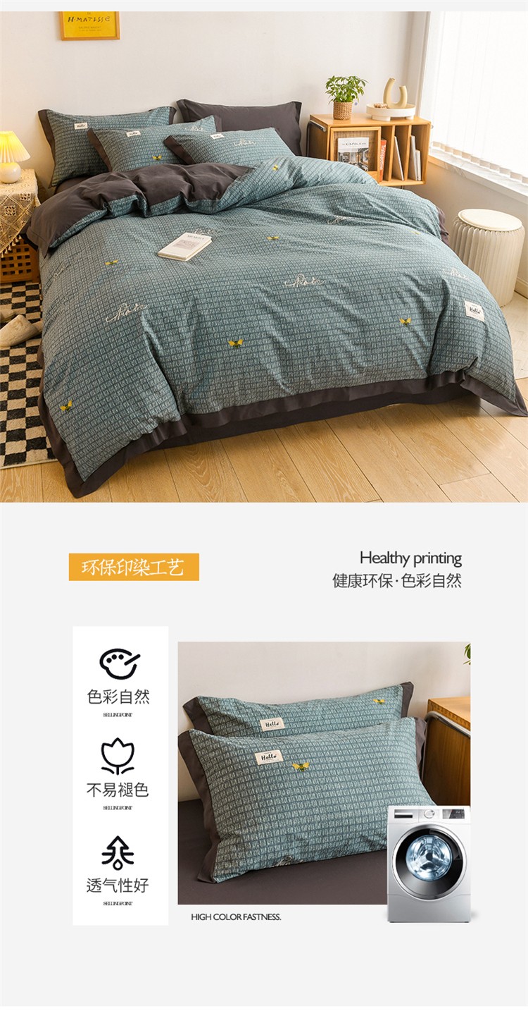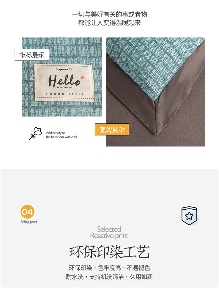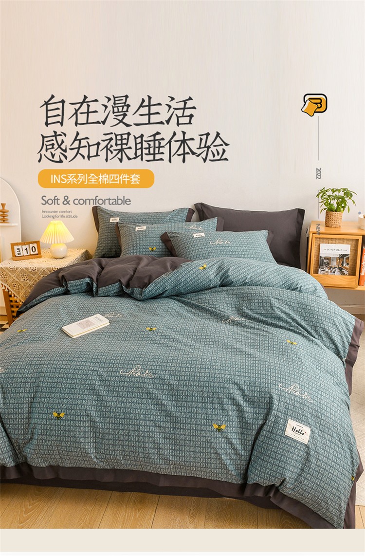 商品名称:花言狐语2025新款全棉色布13372拼角工艺款四件套 清欢