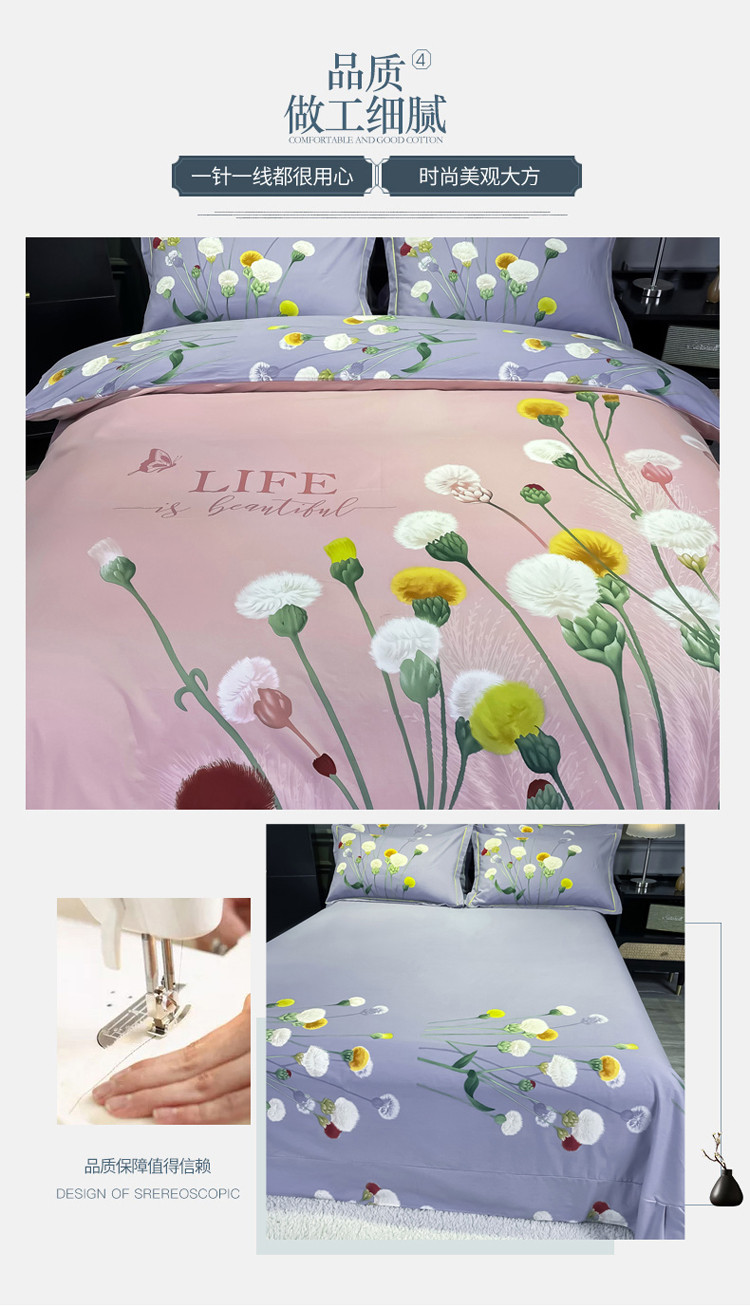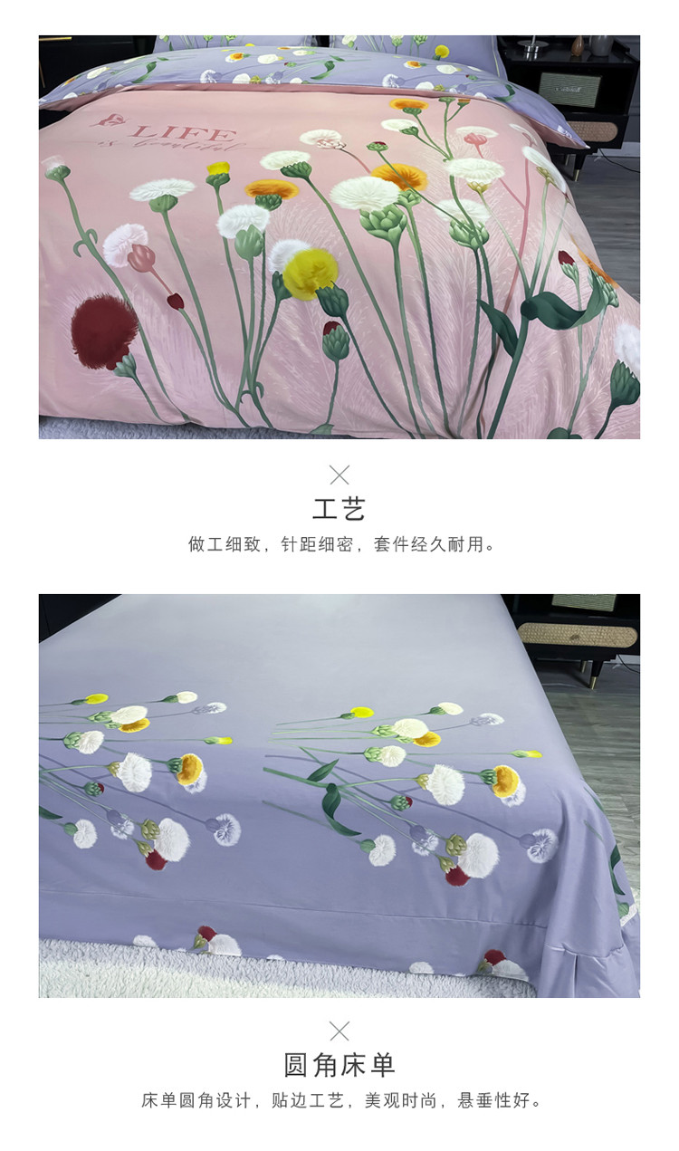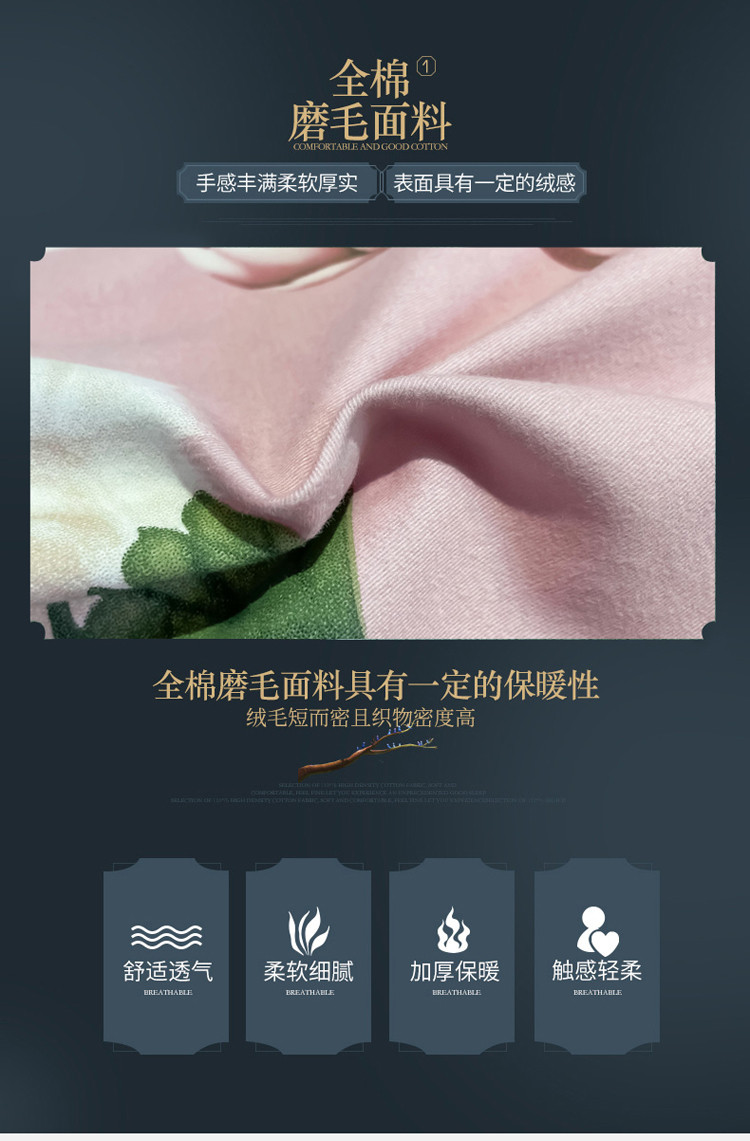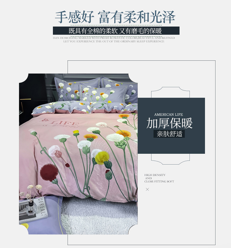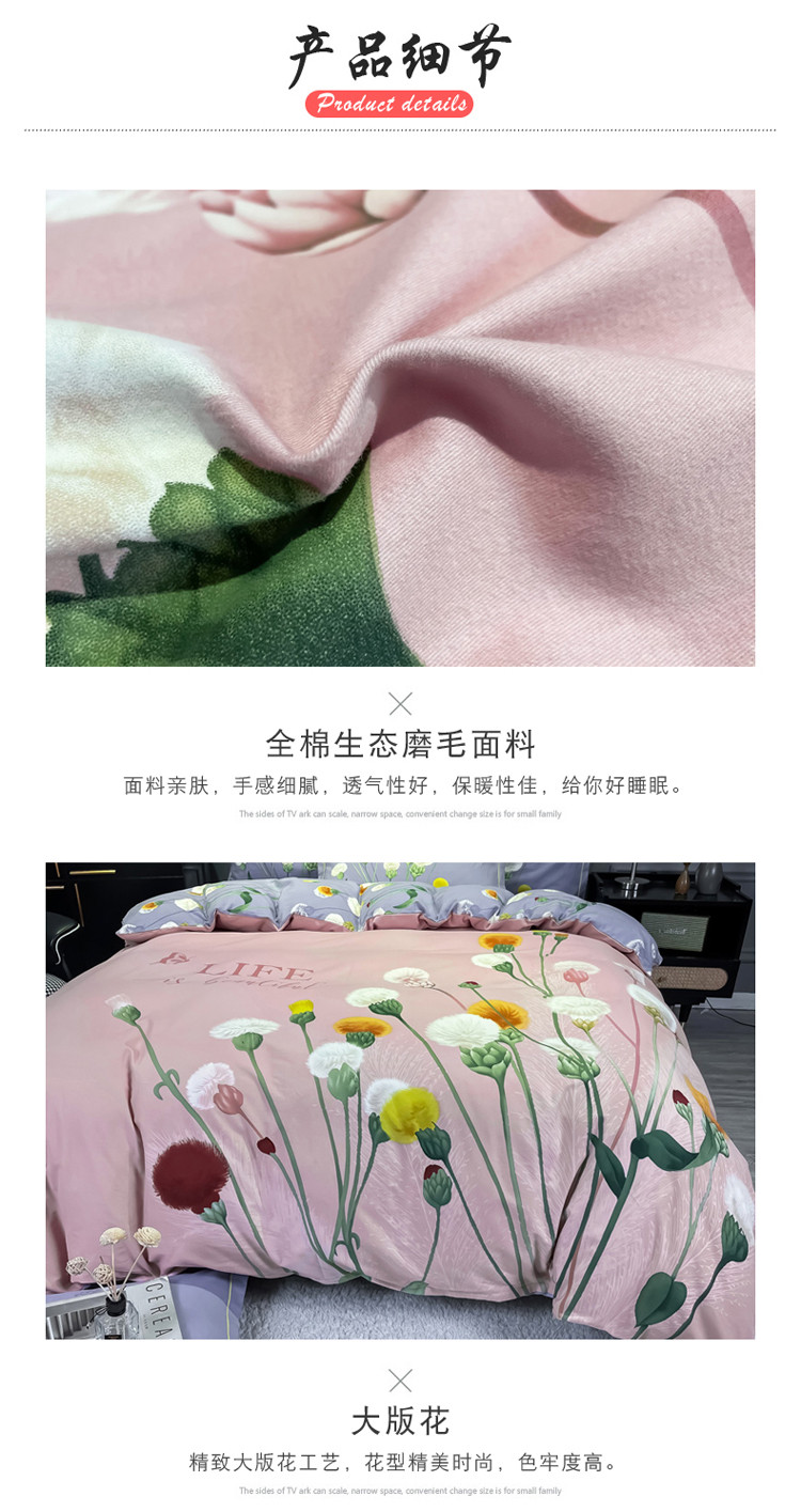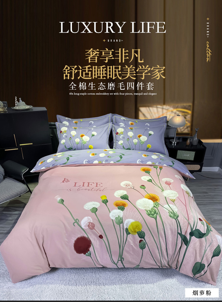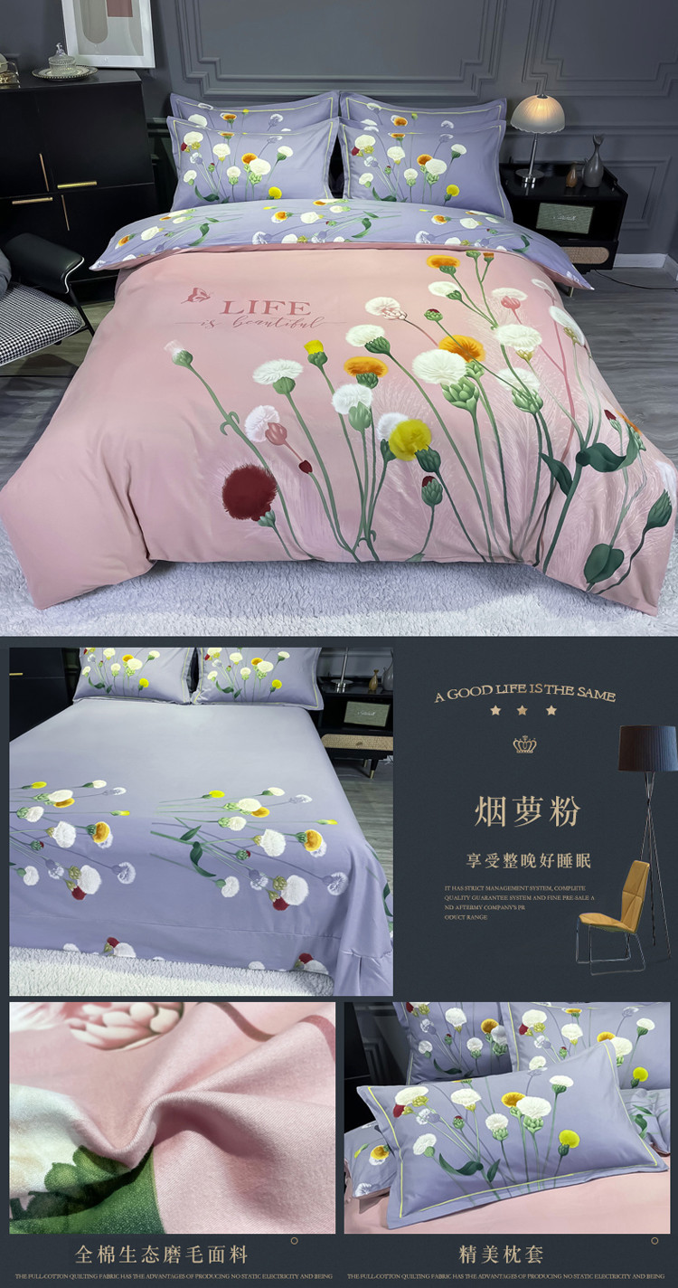 商品名称:金爱家2023新款大版磨毛四件套花卉系列 烟萝粉