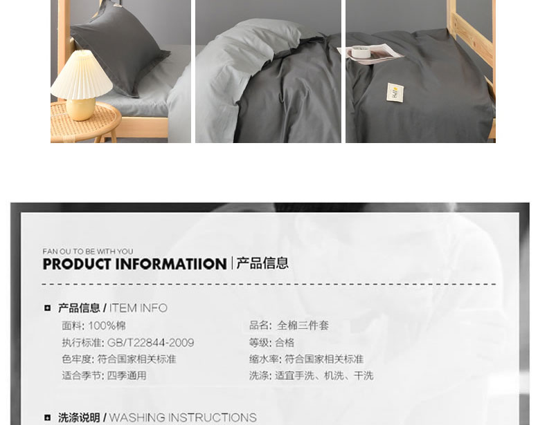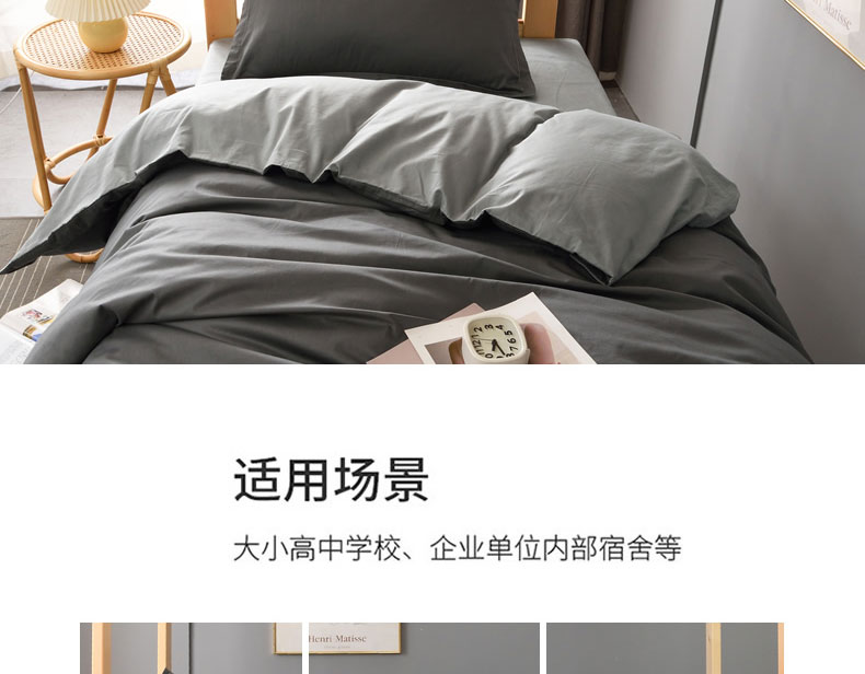 商品名称:晶缦 2022新款宿舍学生床全棉13372纯色三件套 深灰