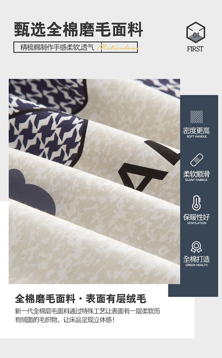 商品名称:金纱玉纺2022新款全棉生态大版磨毛四件套千趣