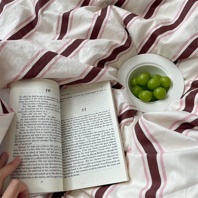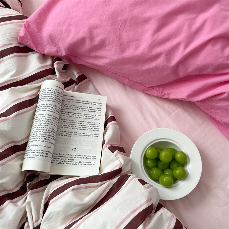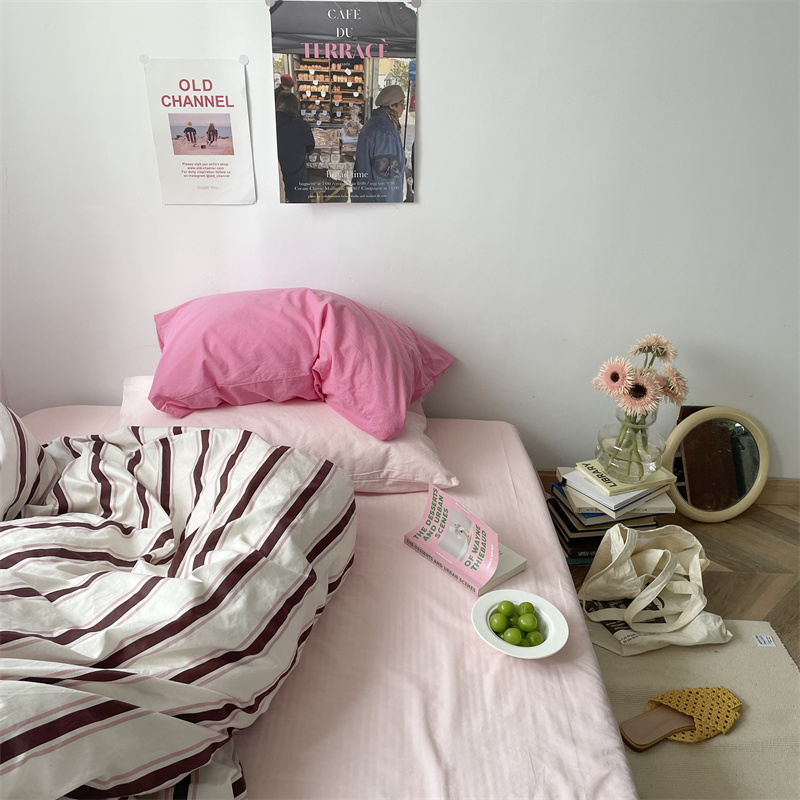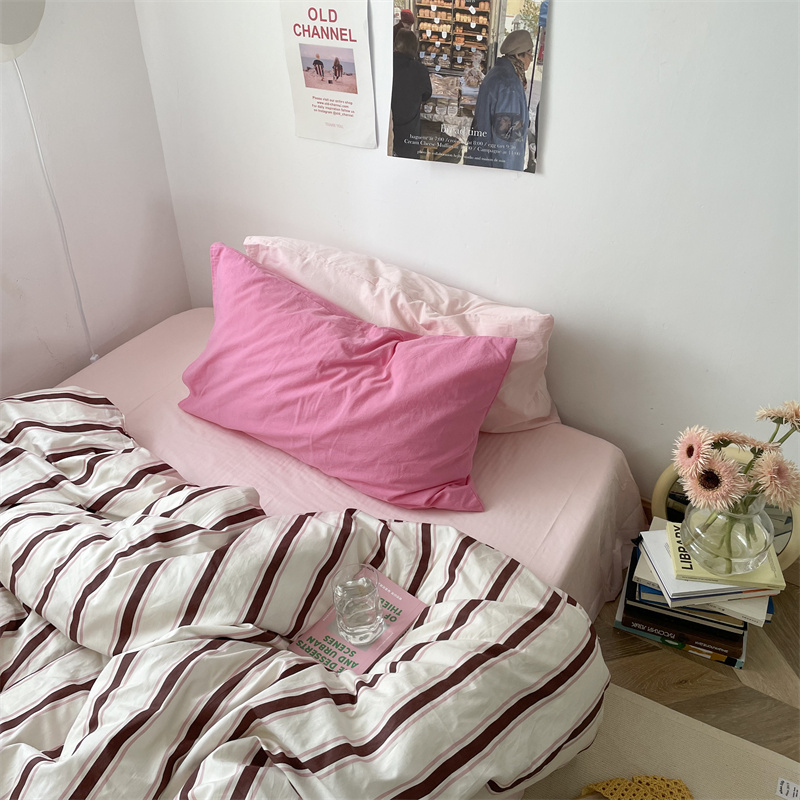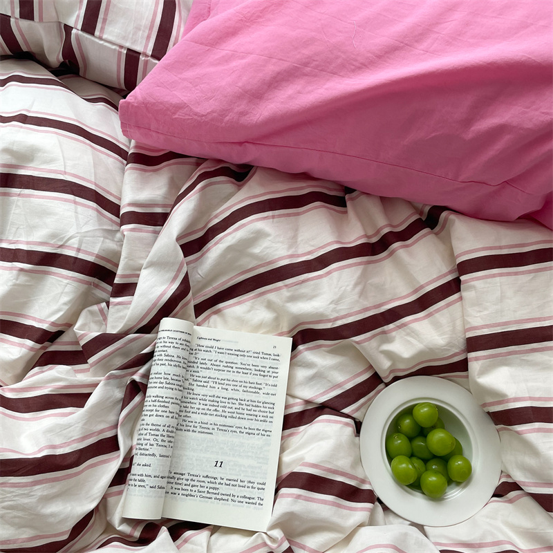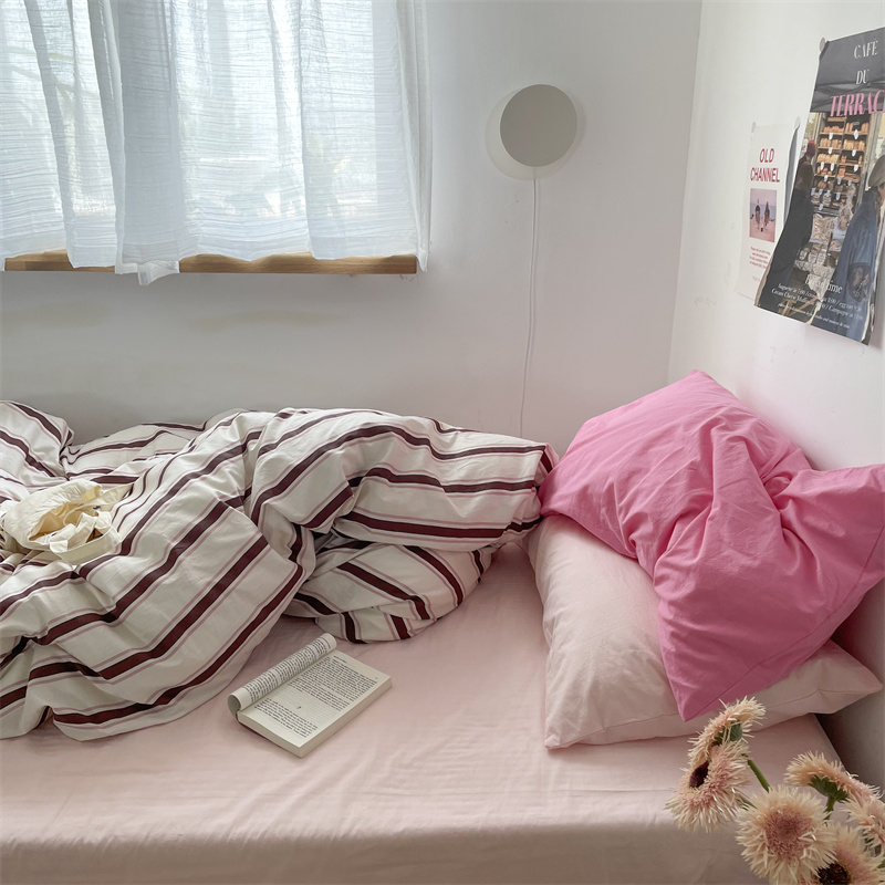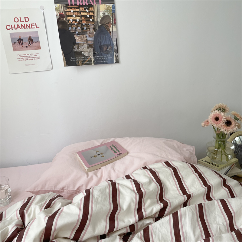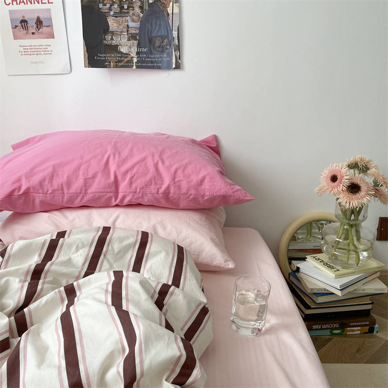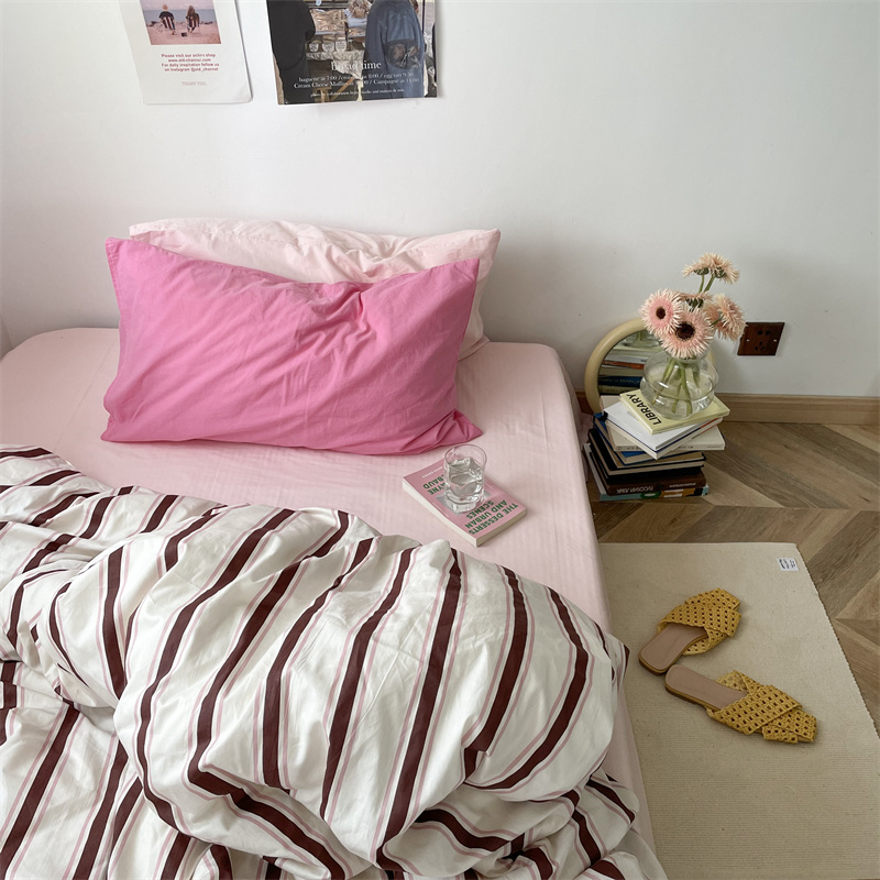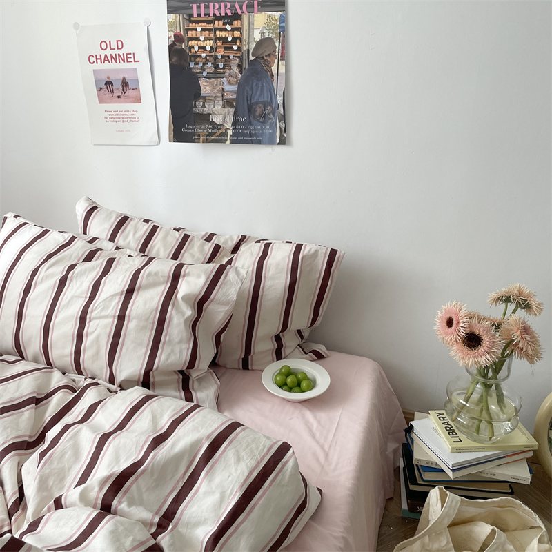 当前位置: 91家纺网 > 商品网购 > 床品套件 > 四件套 > 水洗棉四件套 > 恋恋三季 2024新款ins韩国粉色复古条纹四件套 棕粉象