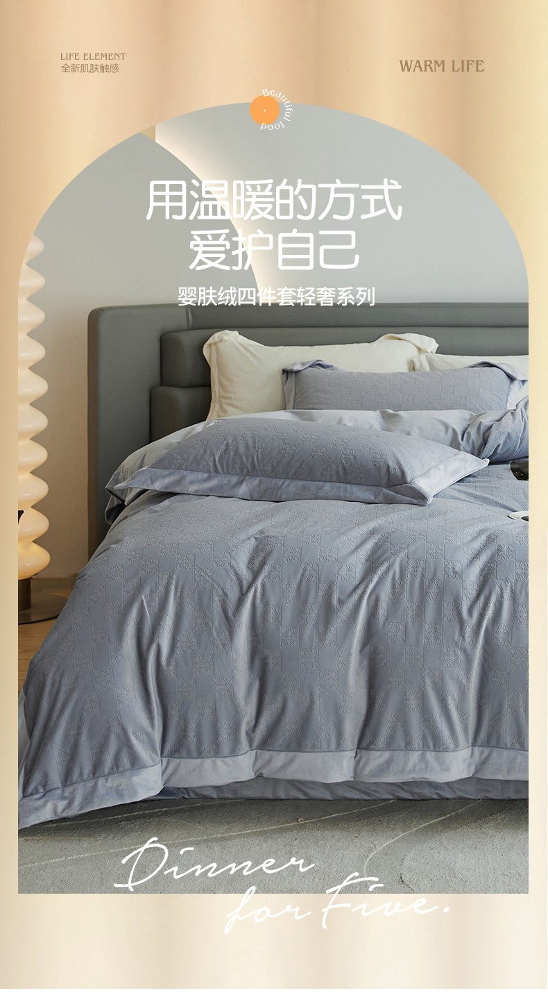 商品名称:名品优仓2022新款婴肤绒轻奢系列四件套-布加迪 深空灰