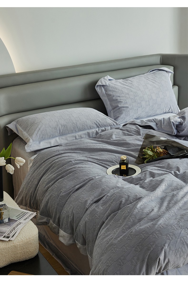 (总)名品优仓2023款水洗棉三层纱提花四件套-狡花系列,狡花白,狡花豆粉,狡花黄,狡花蓝色,狡花绿,狡花少女粉