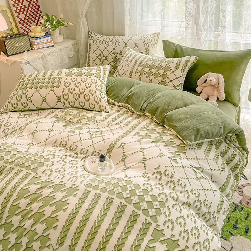 (总)HL原创 2024新款原创双层纱提花四件套,几何-粉,几何-灰,几何-咖,几何-绿,陌上花开-粉,陌上花开-灰,陌上花开-咖,陌上花开-绿,拾光-粉,拾光-灰,拾光-咖,拾光-绿,枝叶-灰,枝叶-卡其,枝叶-绿
