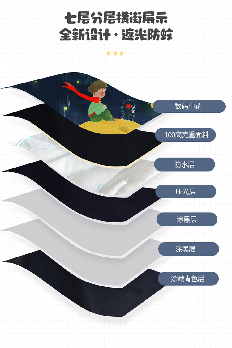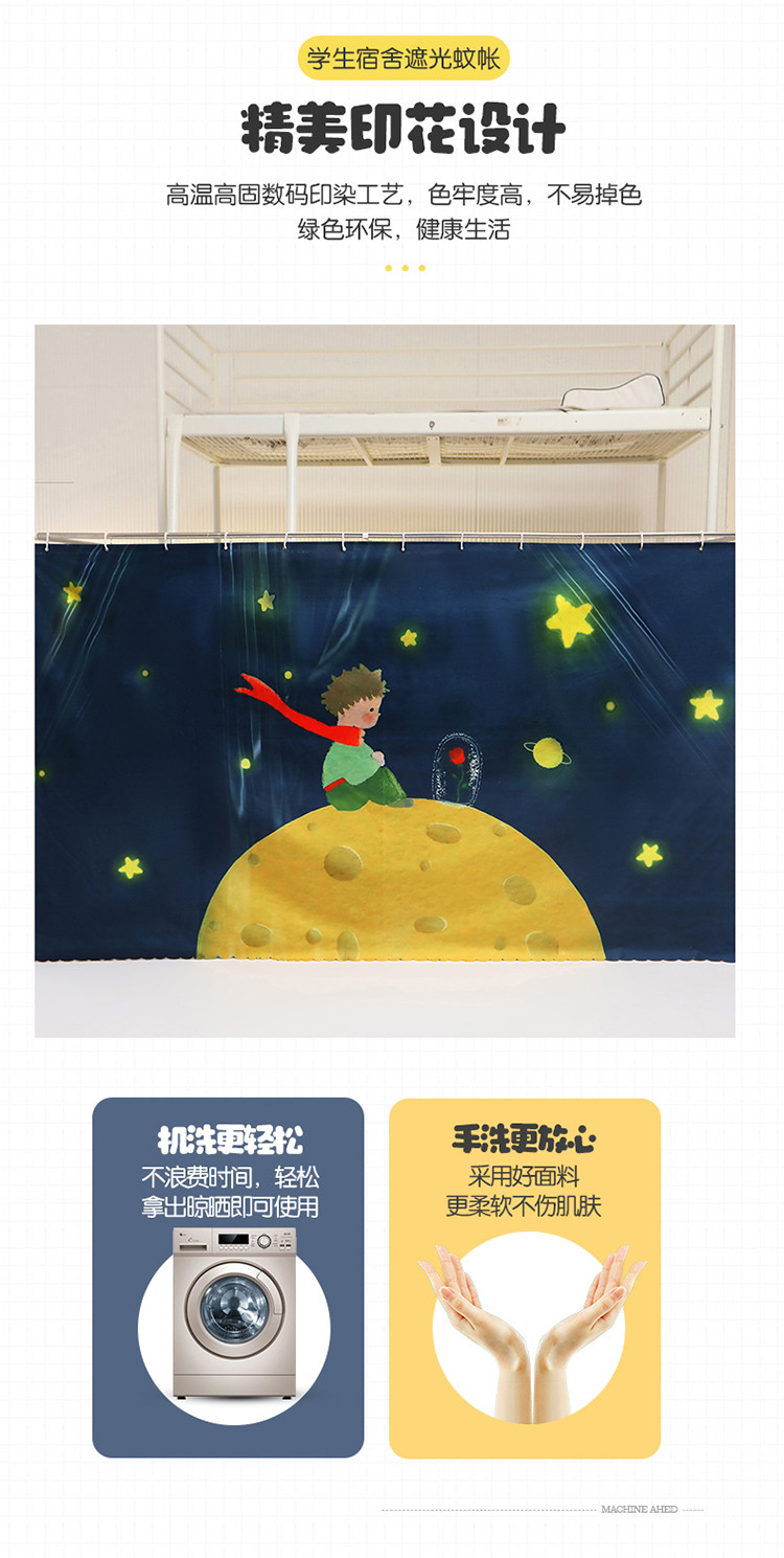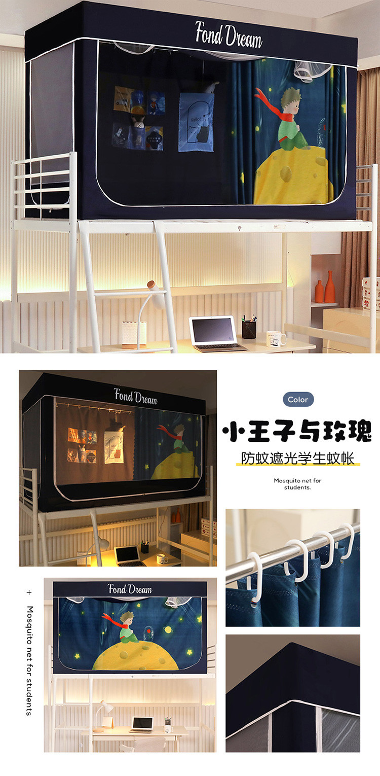 安金加高加大不锈钢全伸缩99%涂层强遮光学生蚊帐小王子与玫瑰