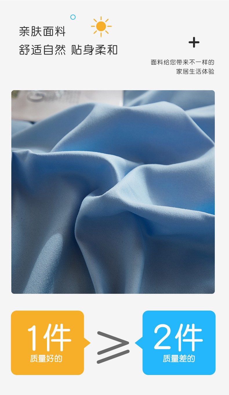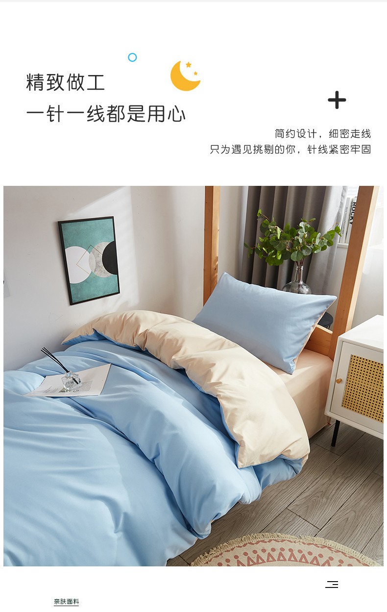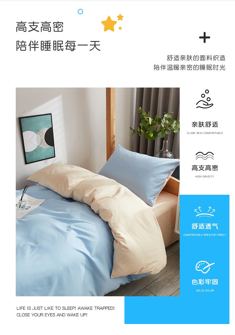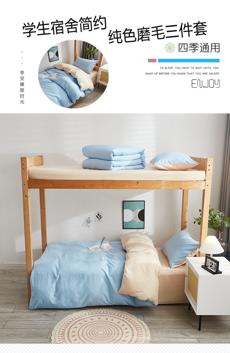 商品名称:啊雅家居 新款ins学生宿舍双拼纯色磨毛三件套 天空兰加黄