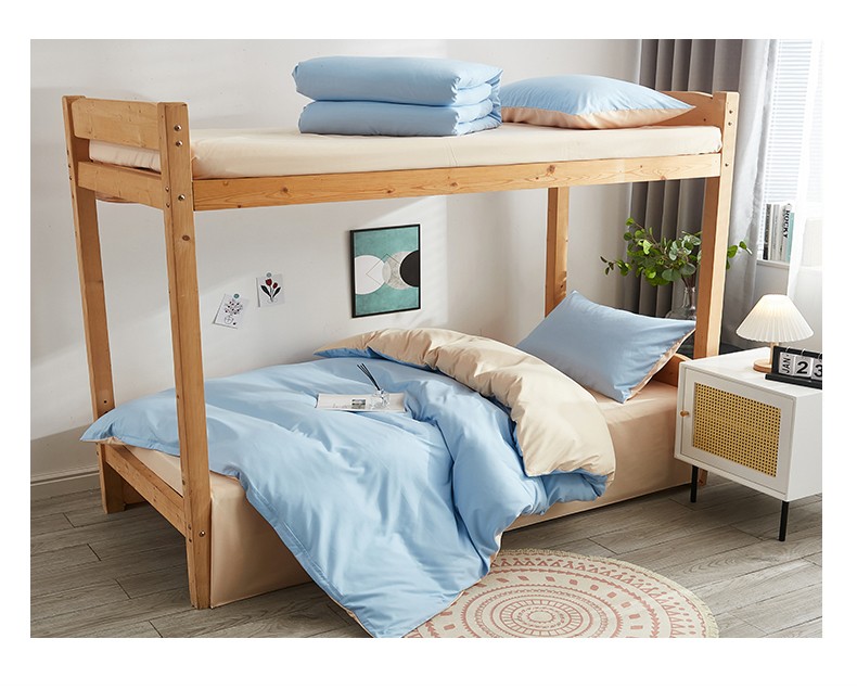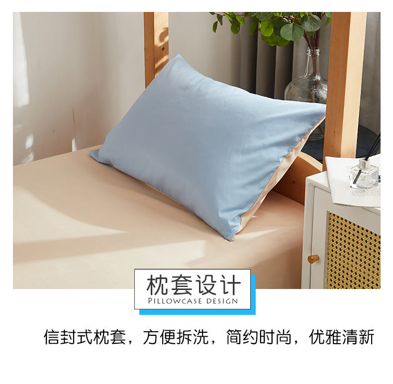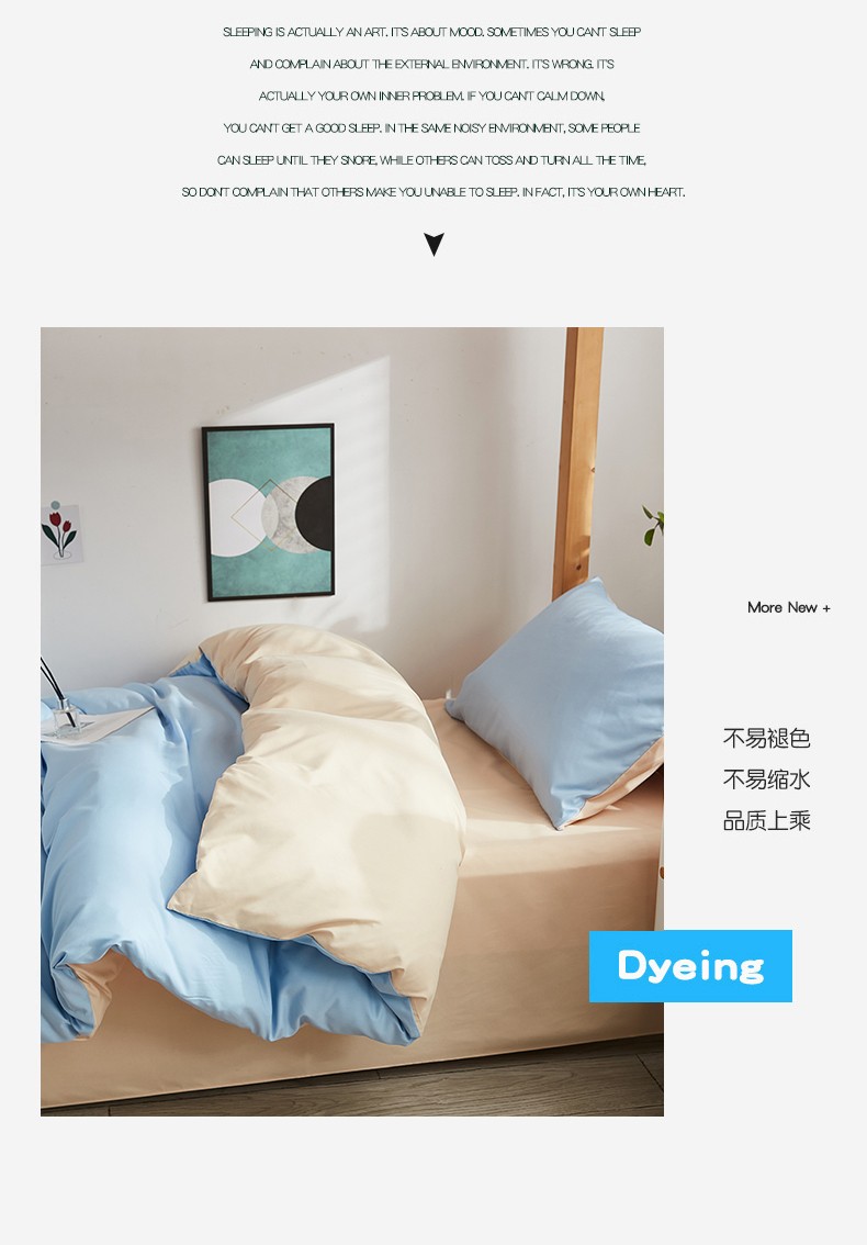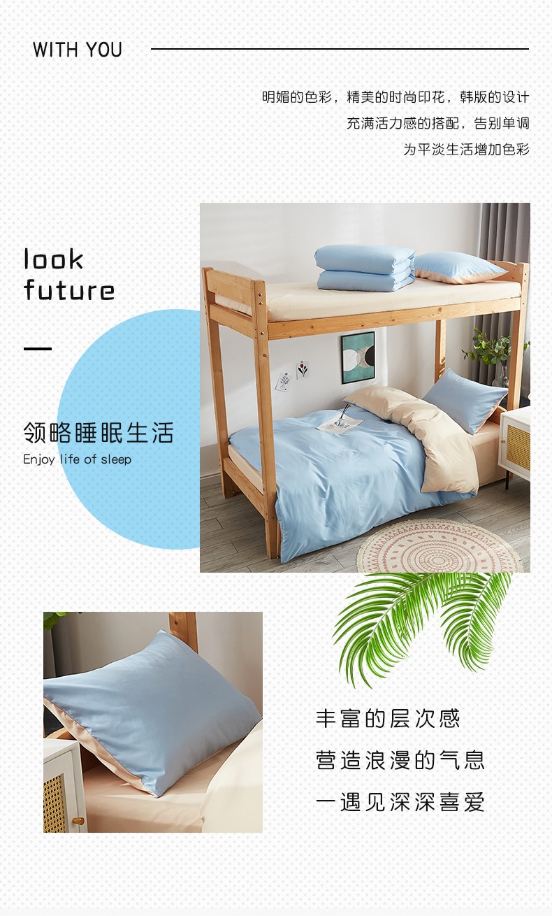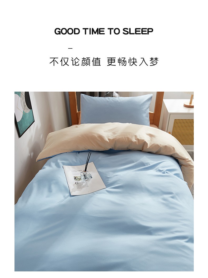 啊雅家居 新款ins学生宿舍双拼纯色磨毛三件套 天空兰加黄
