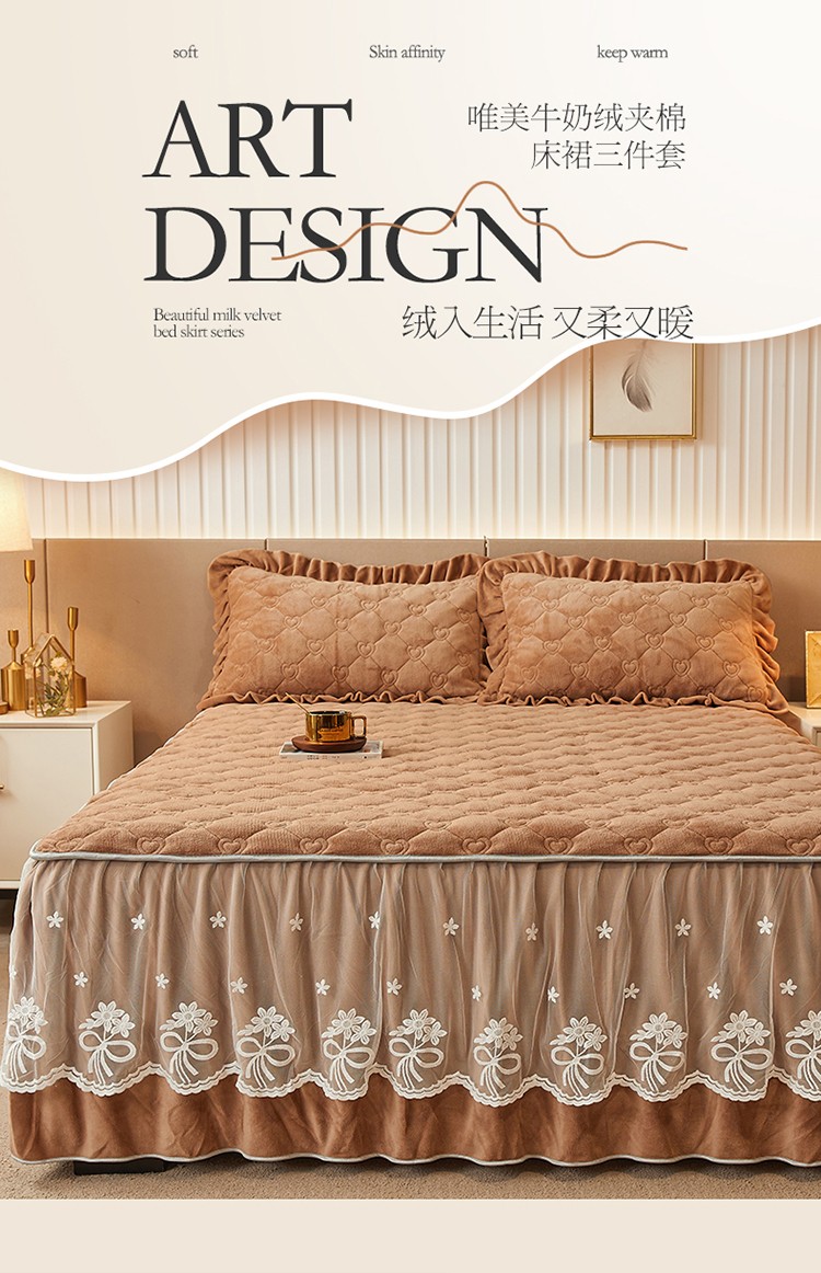 宜凡2022新款纯色夹棉床裙 咖啡