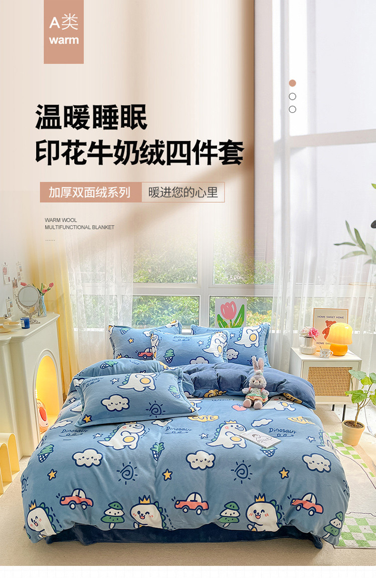 当前位置: 91家纺网 > 商品网购 > 床品套件 > 四件套 > 牛奶绒四件套 > 寐居 2022新款印花牛奶绒四件套 恐龙宝贝