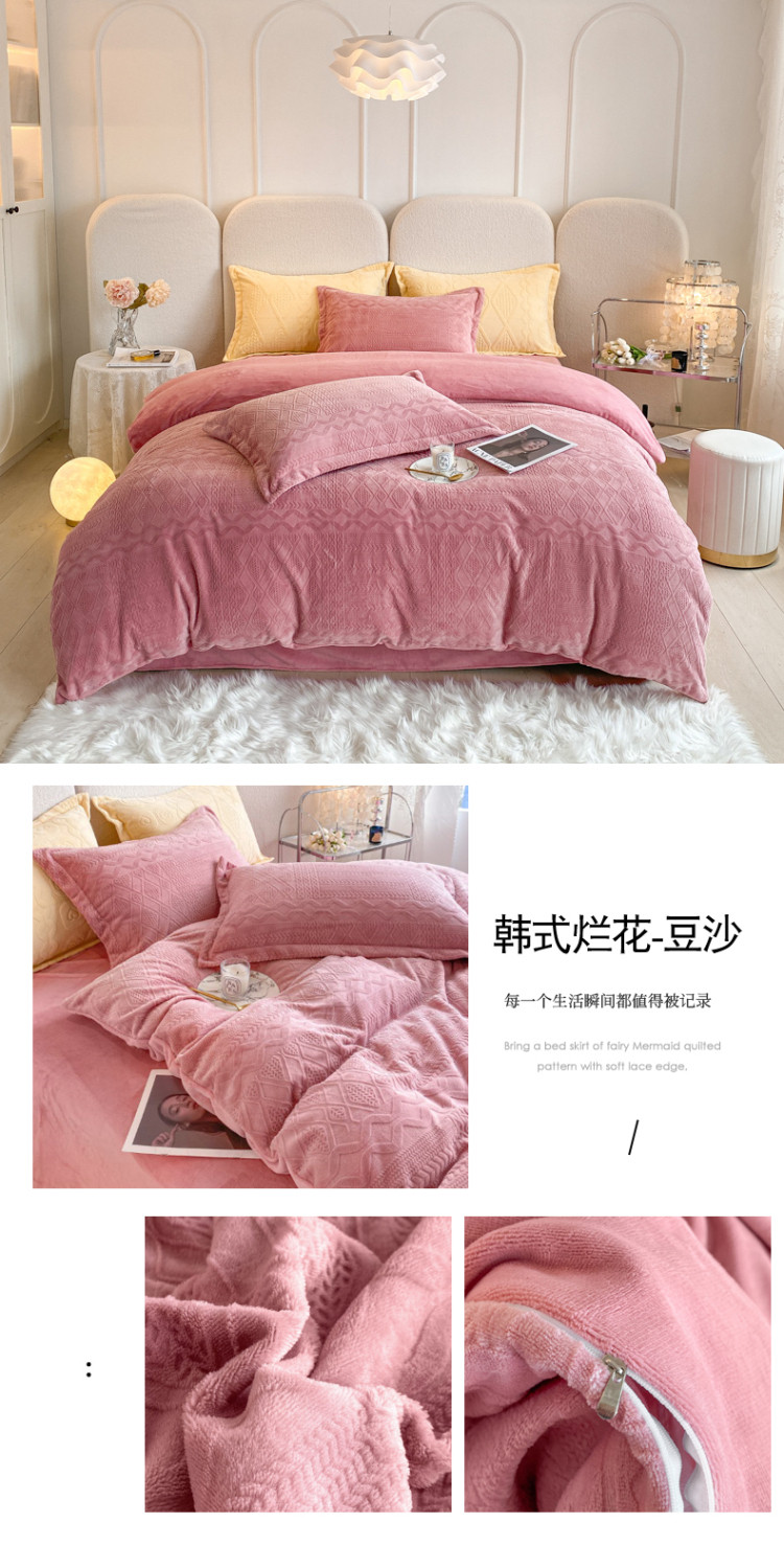 (总)寐居 2022新款高克重烂花牛奶绒四件套