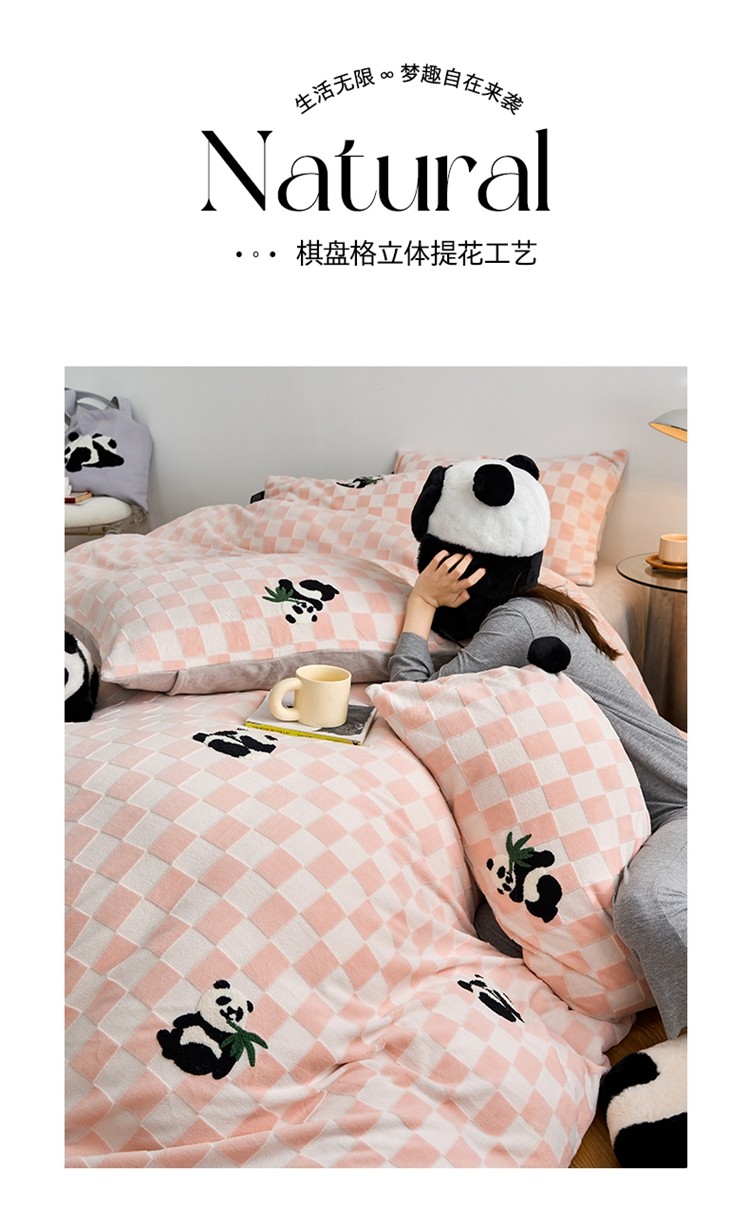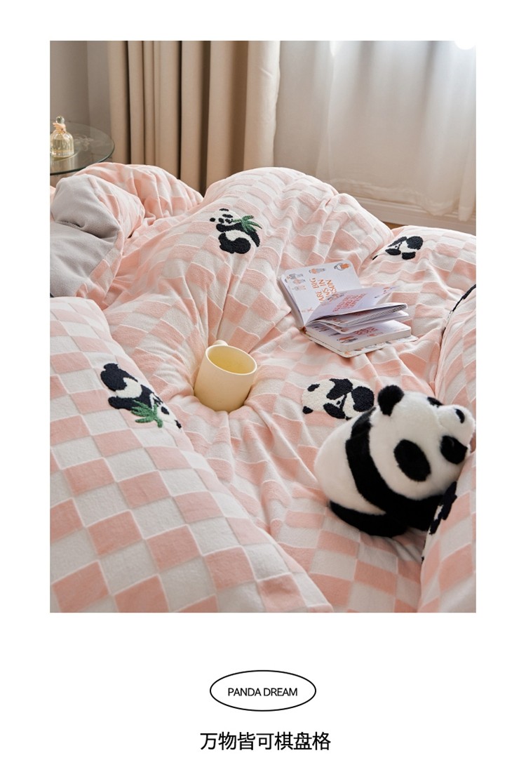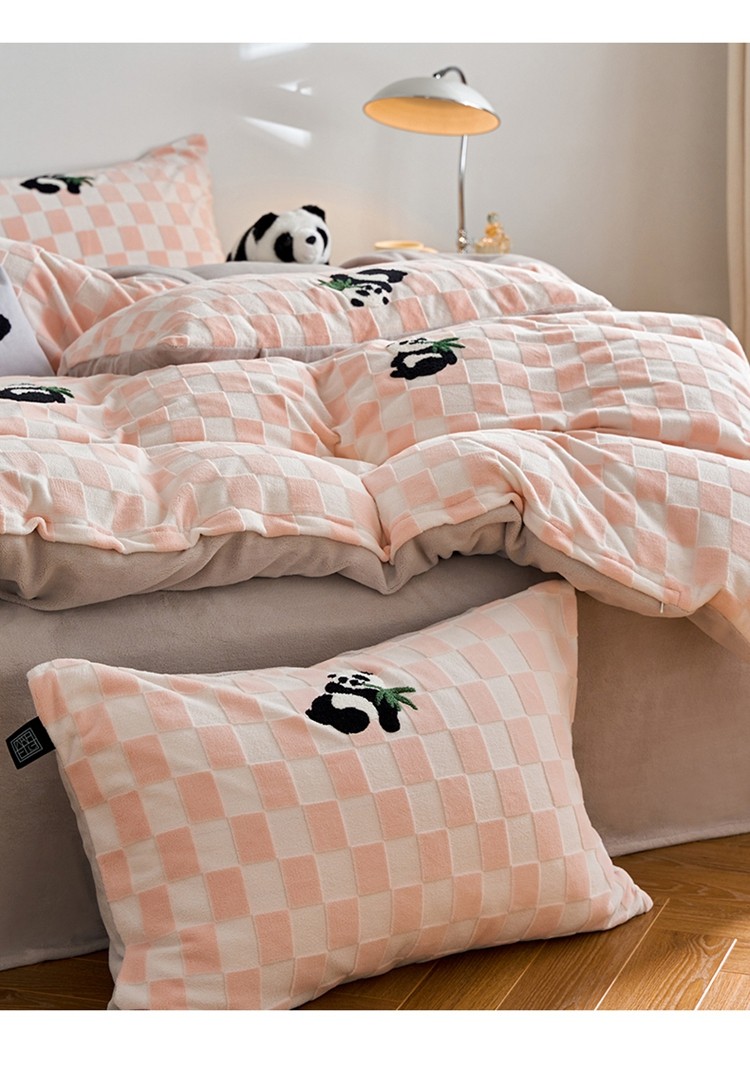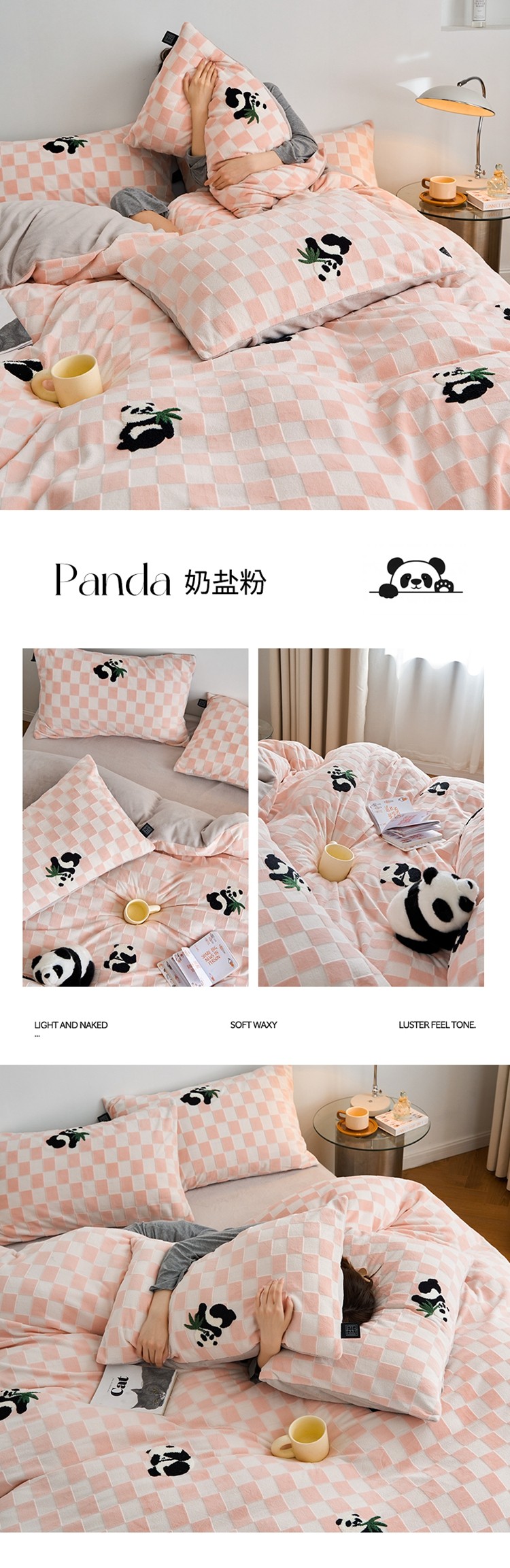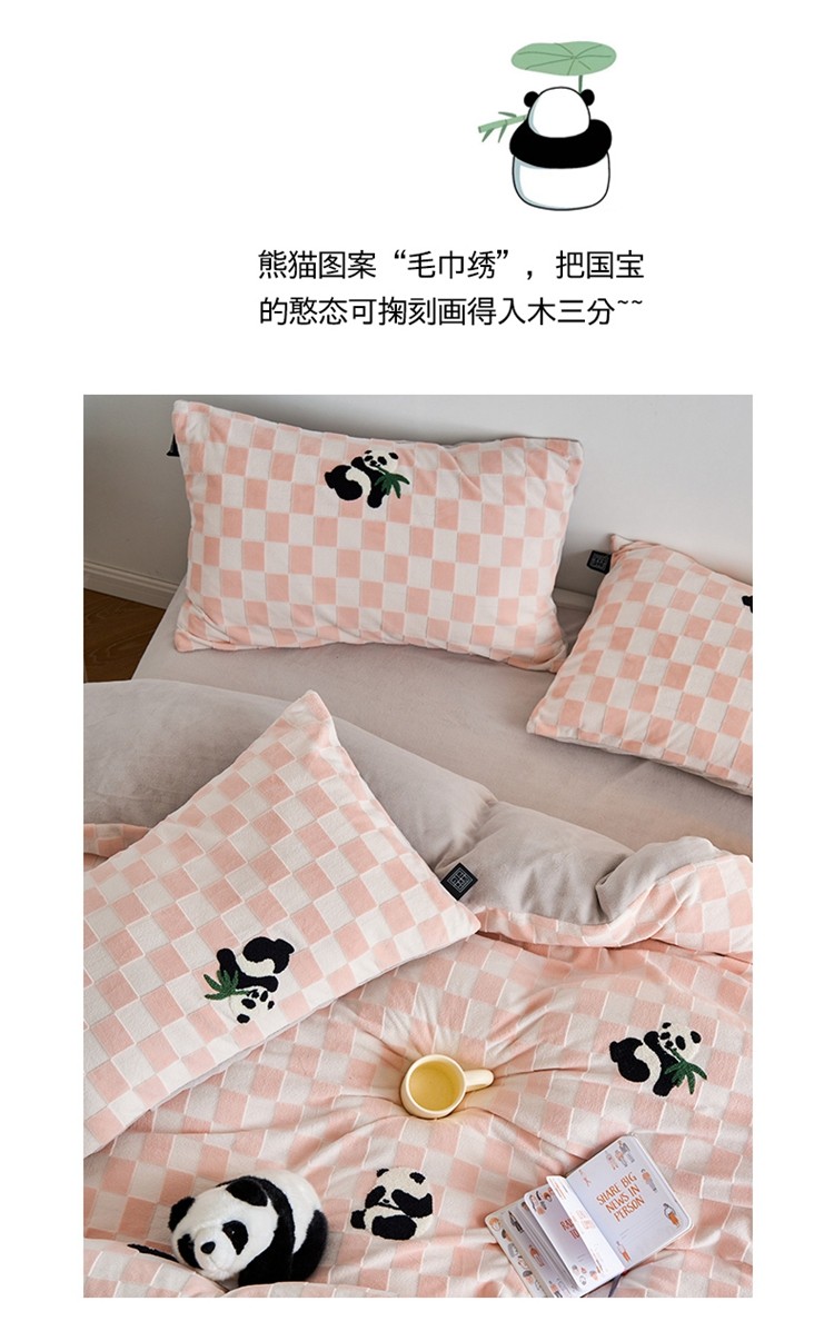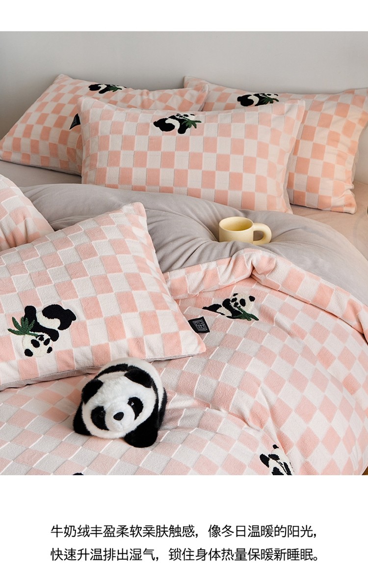 商品名称:风向标 20222新款立体提印棋盘格牛奶绒四件套 棋盘格熊猫-奶盐粉