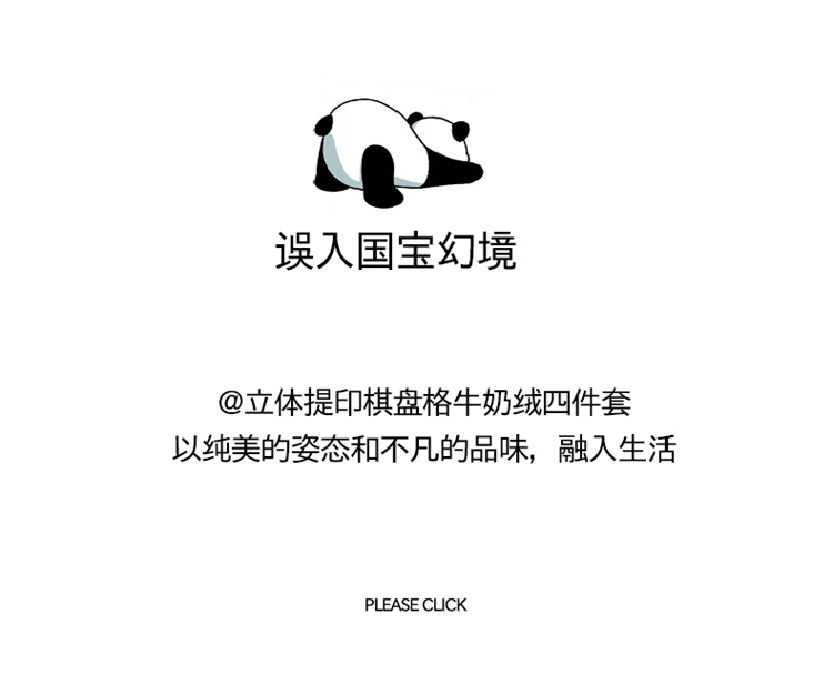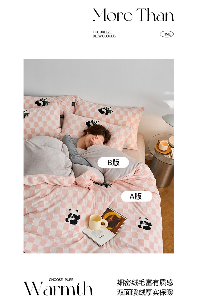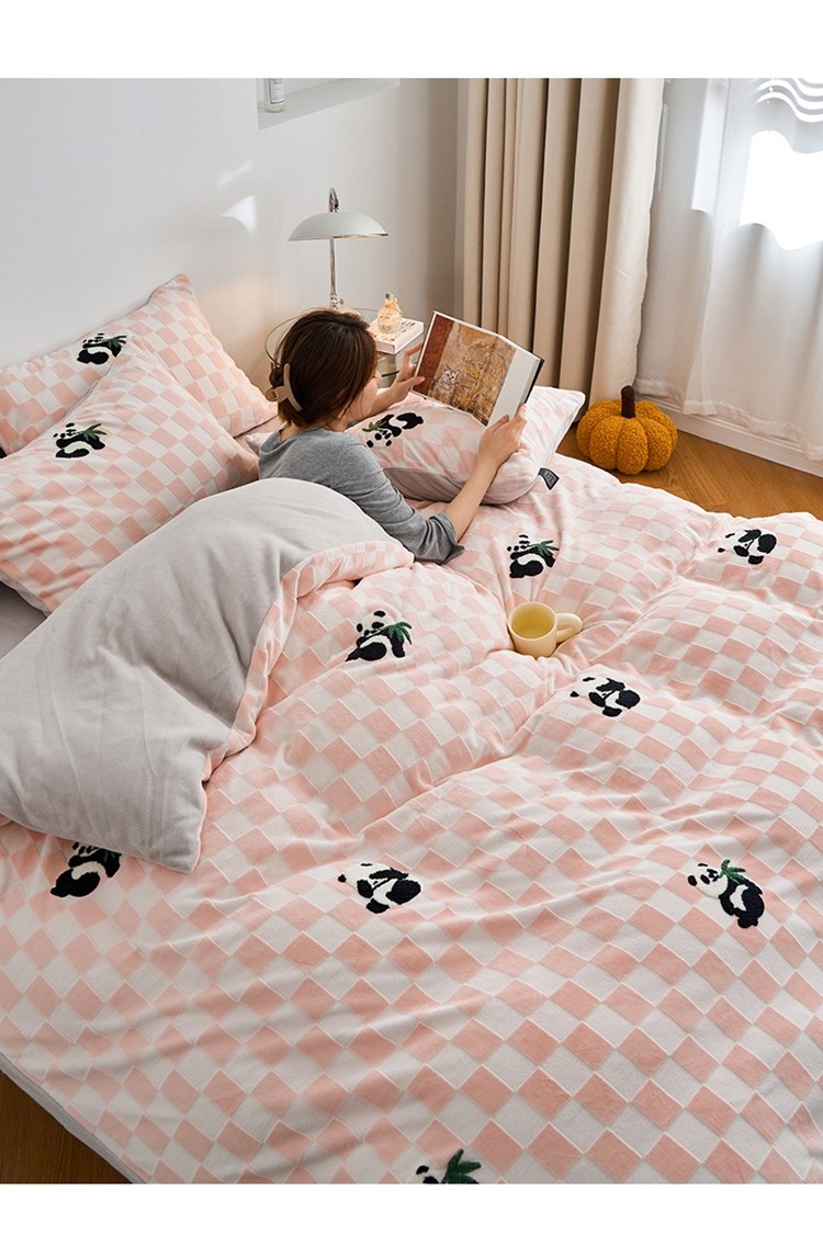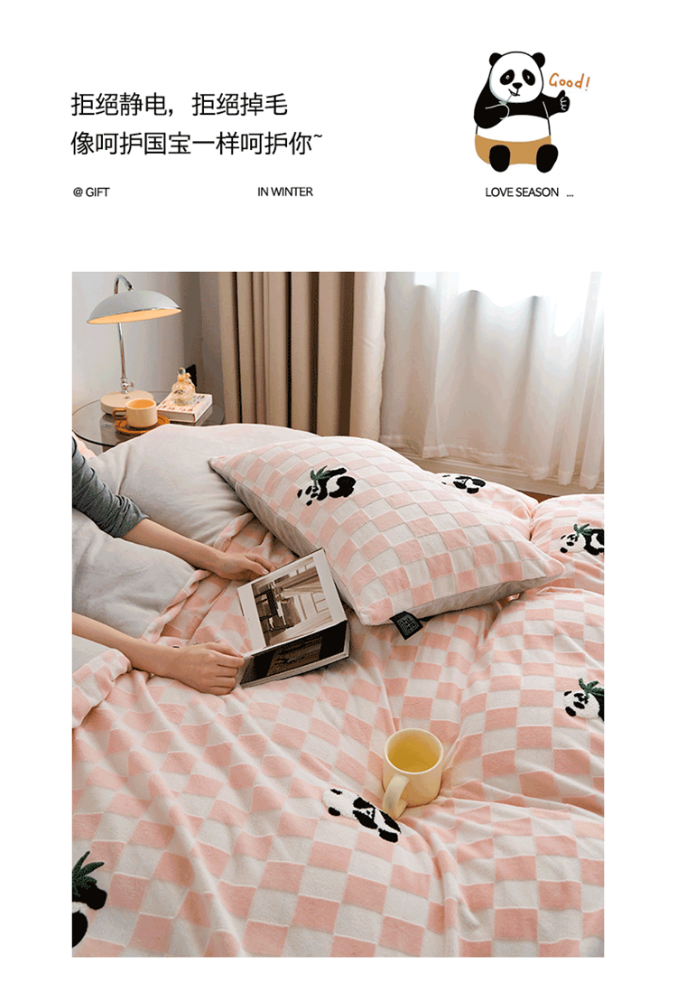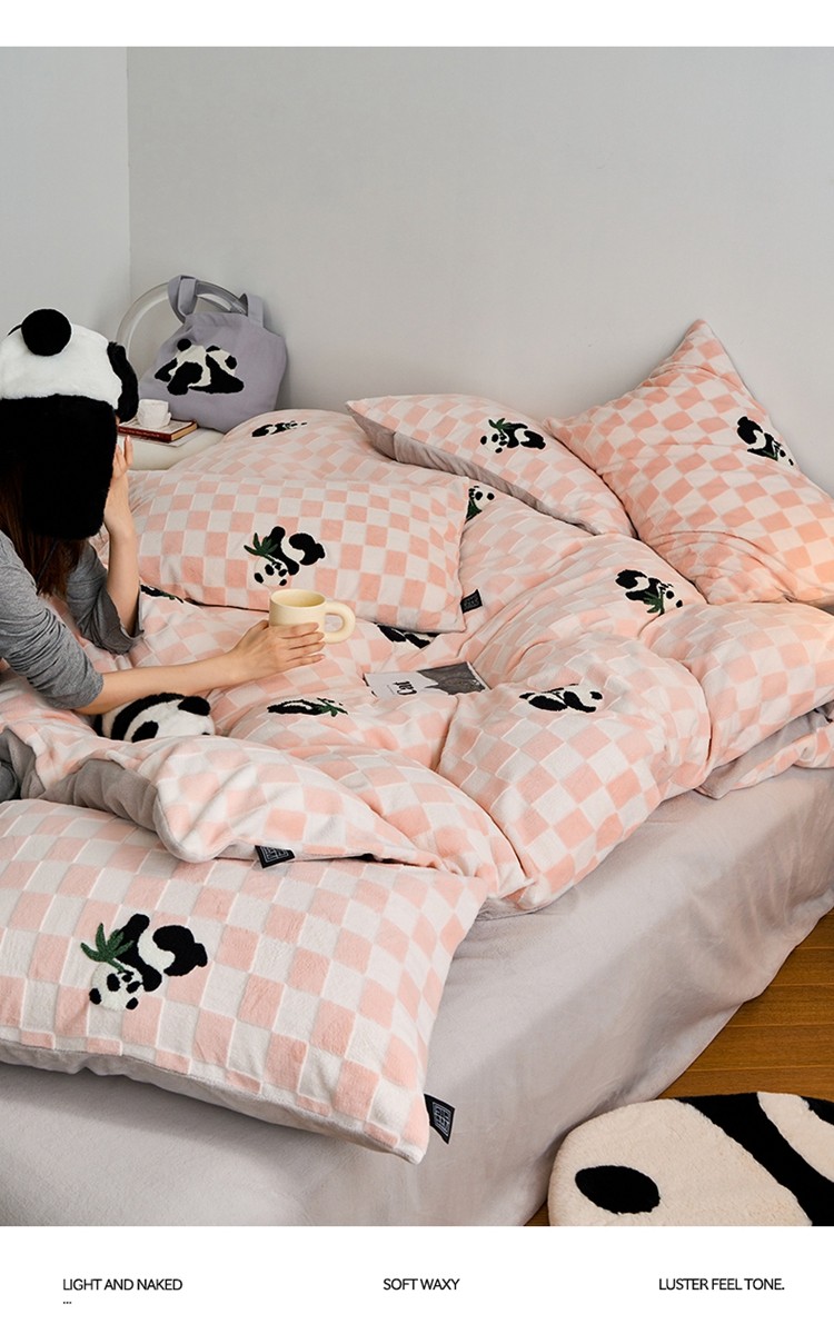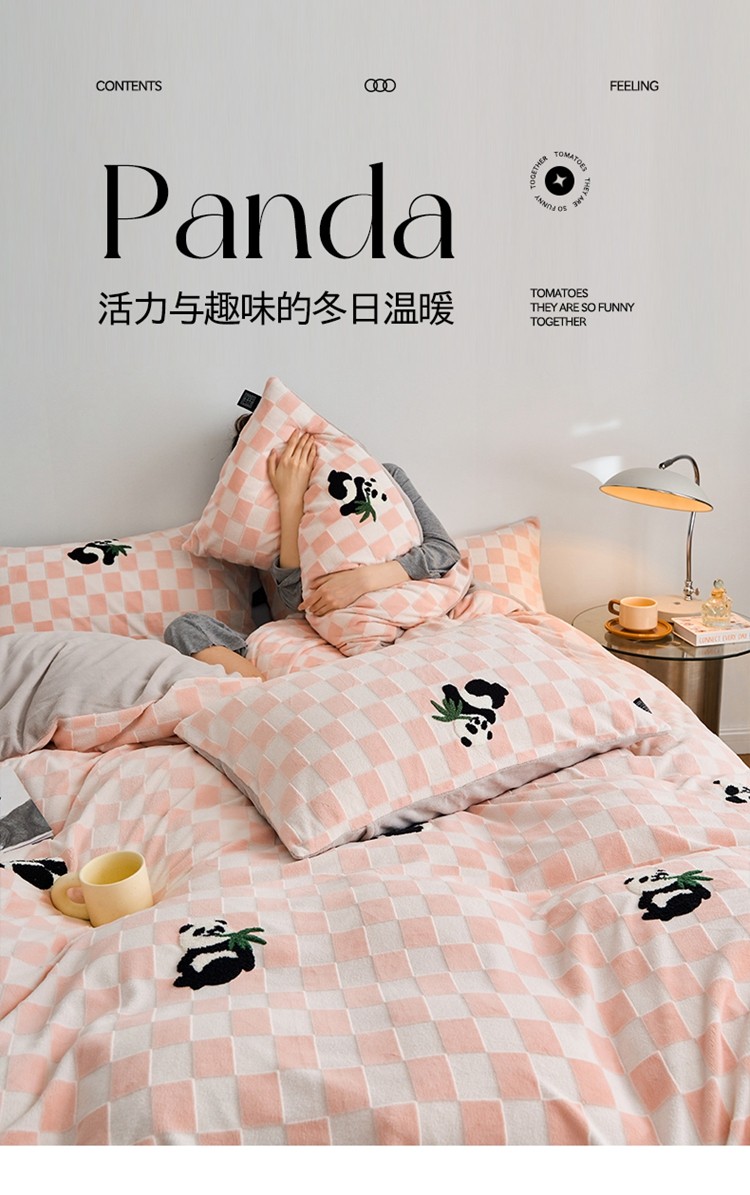 商品名称:风向标 20222新款立体提印棋盘格牛奶绒四件套 棋盘格熊猫-奶盐粉