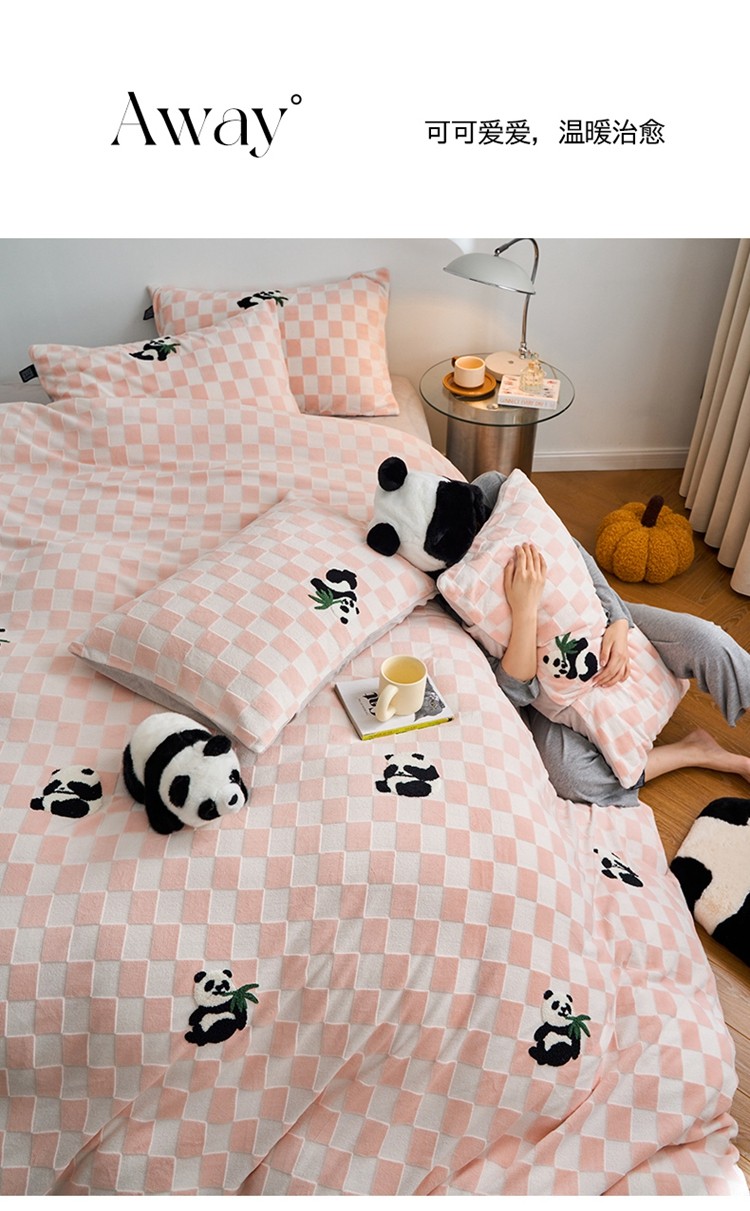 2022锦芙牛奶绒250克全消光绣花四件套,情绪熊猫-白竹