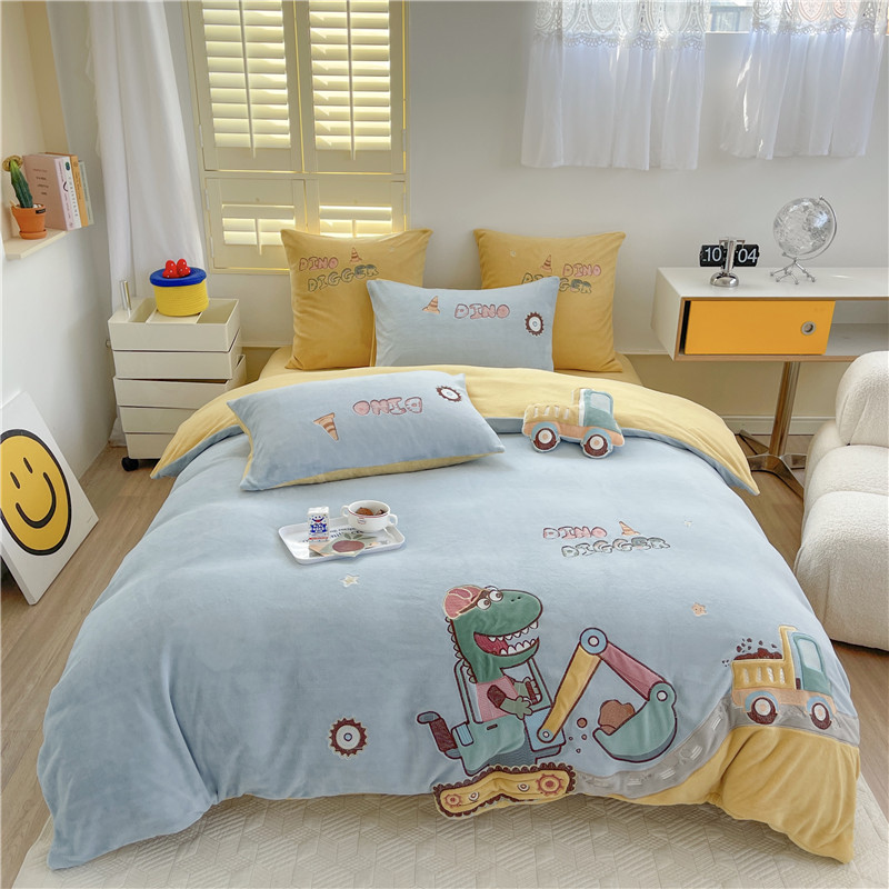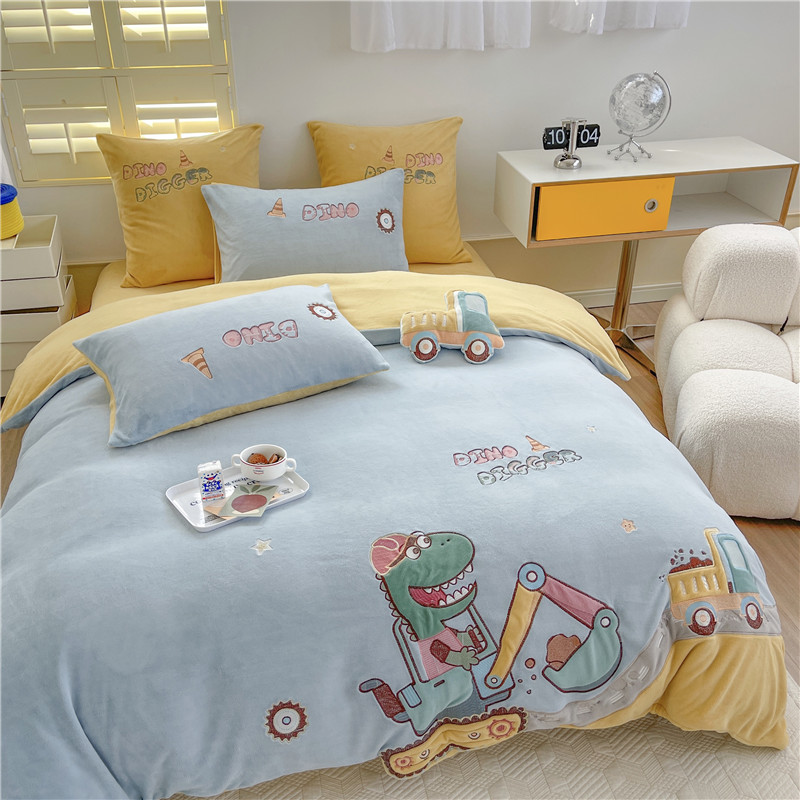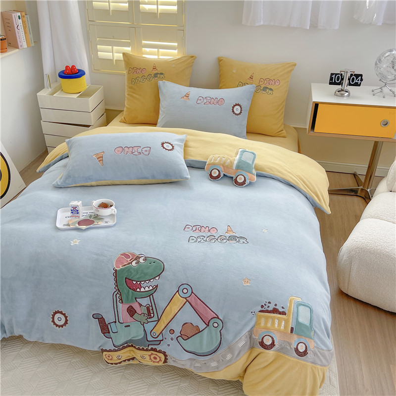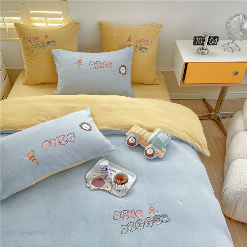 (总)星野 2025新款高克重牛奶绒贴布绣四件套-摇摇乐,摇摇乐