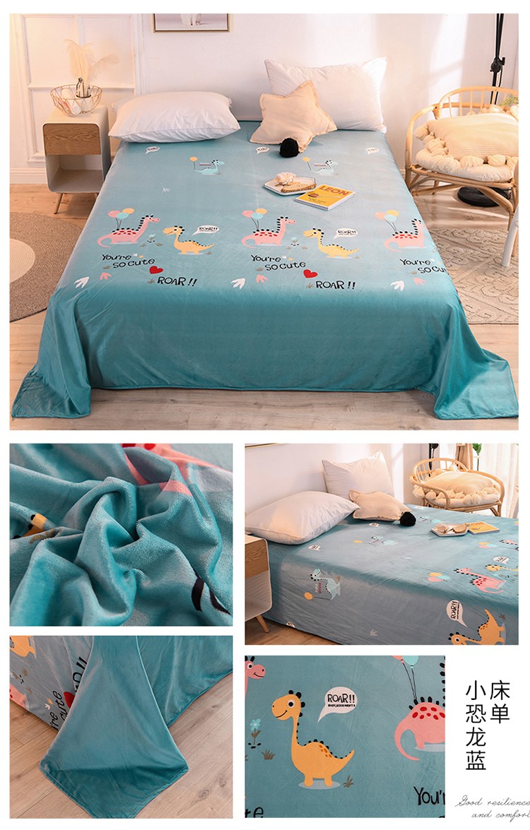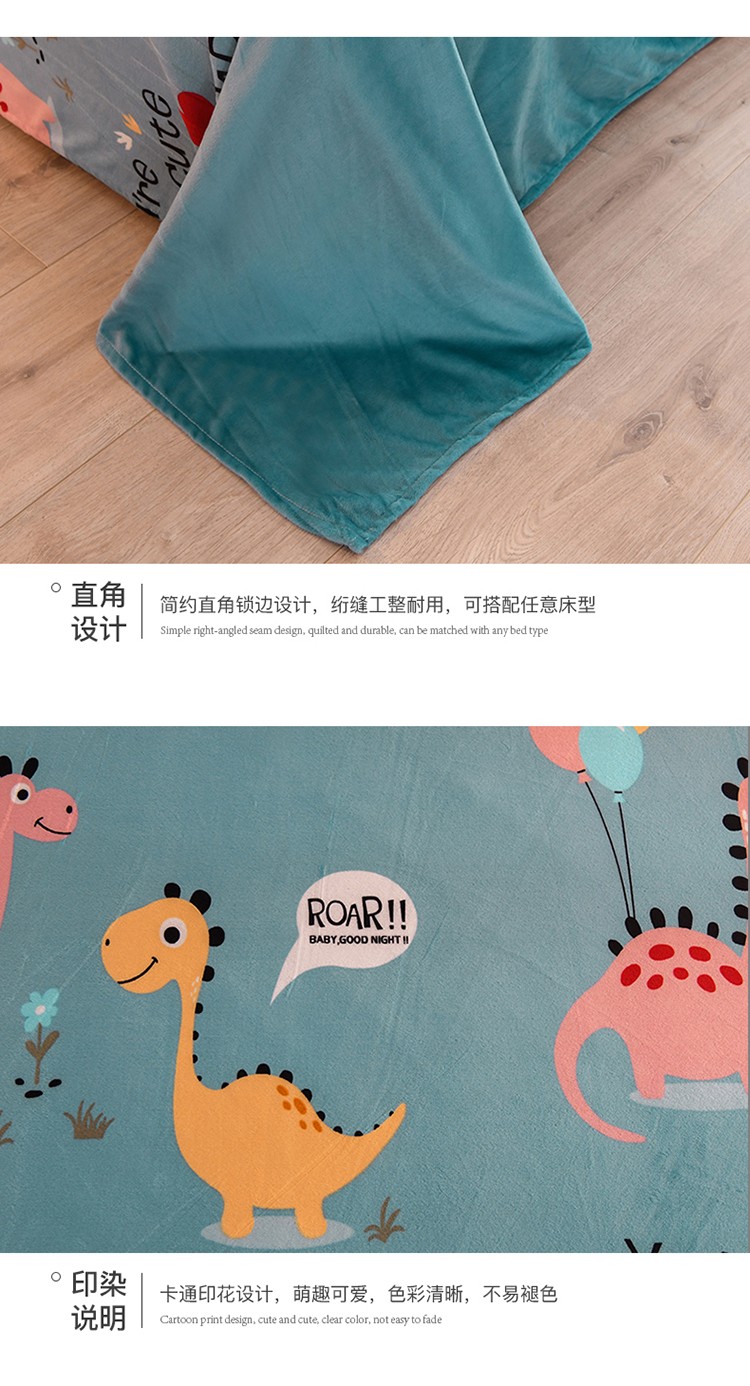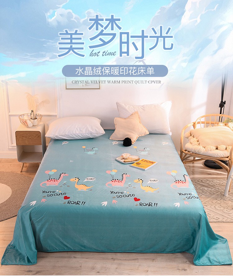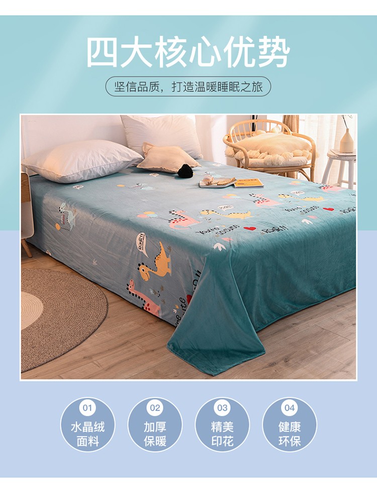 商品名称:甜之梦 2025新款水晶绒单品印花床单 小恐龙蓝