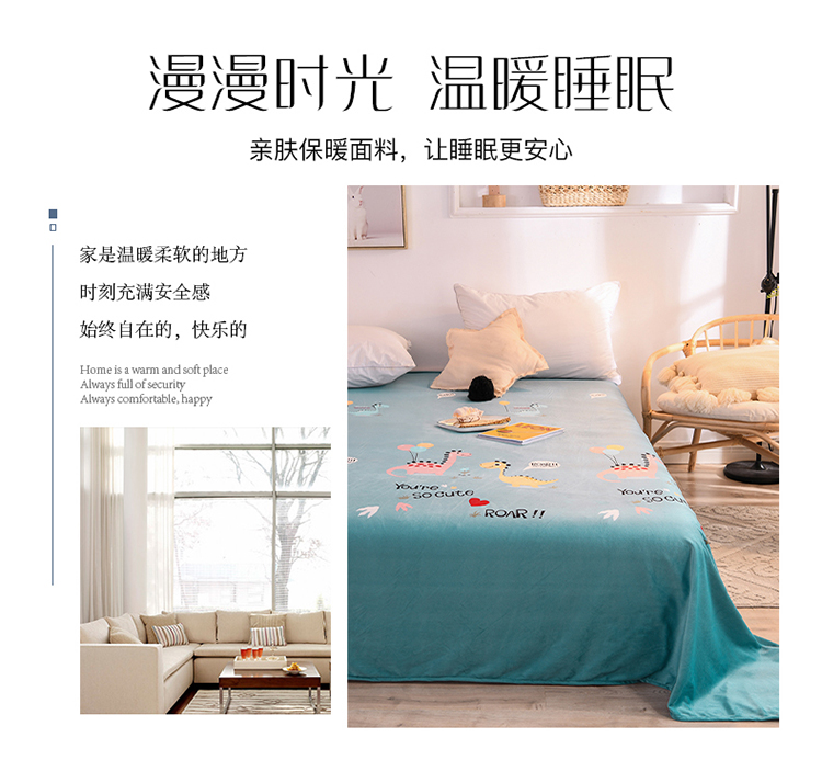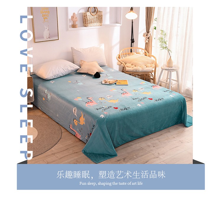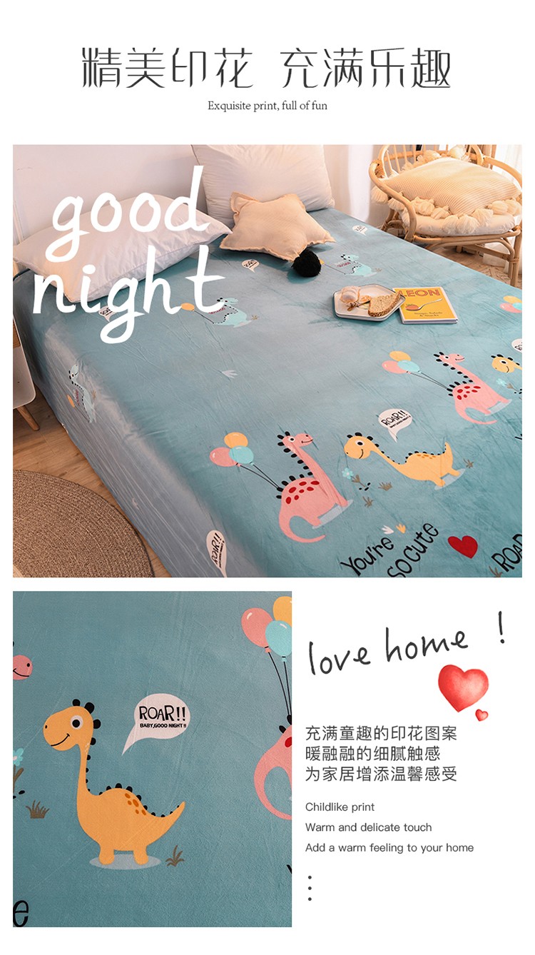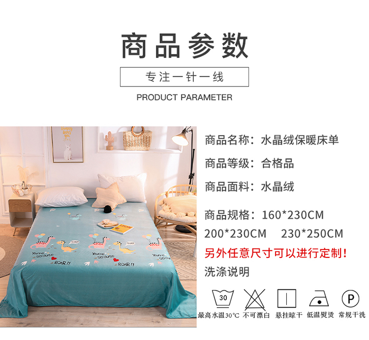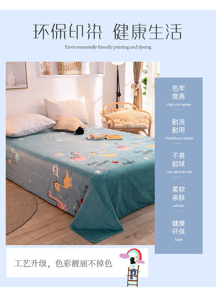 商品名称:甜之梦 2025新款水晶绒单品印花床单 小恐龙蓝