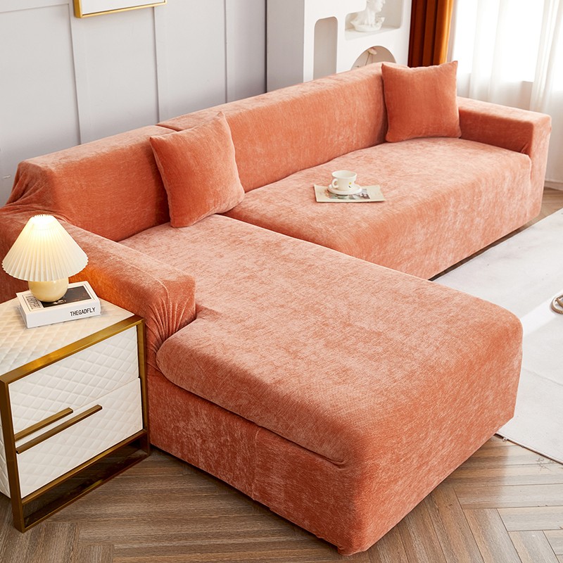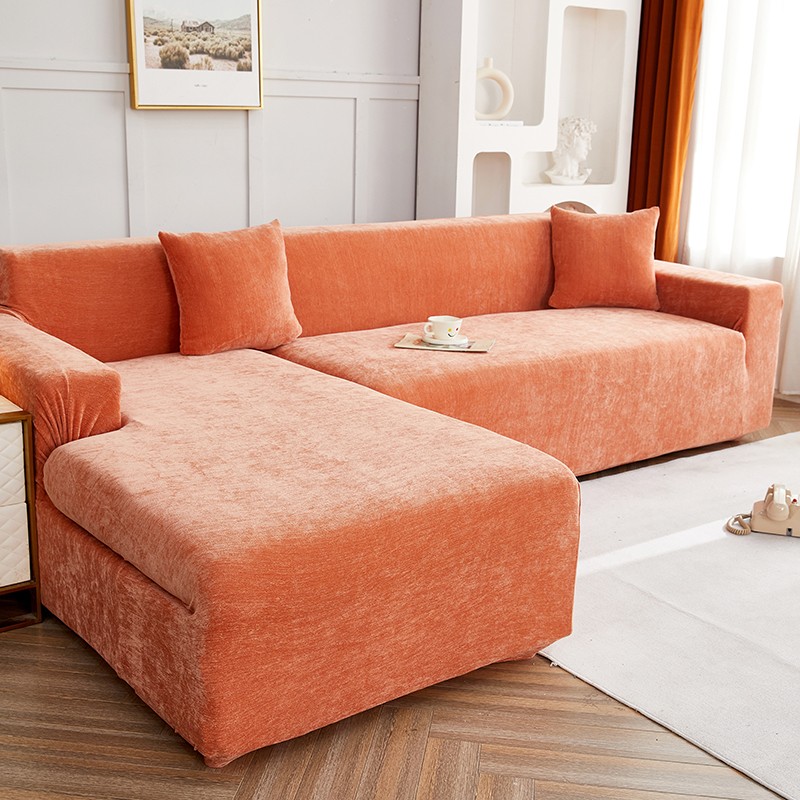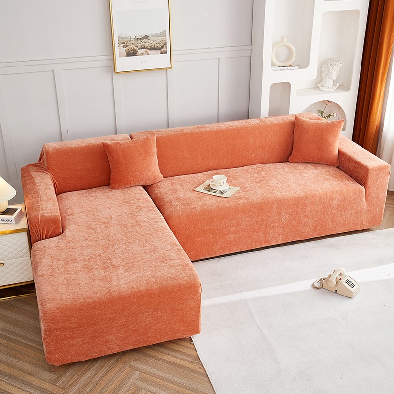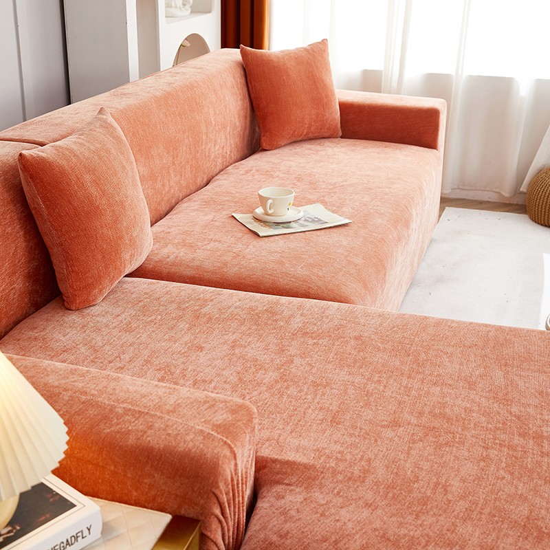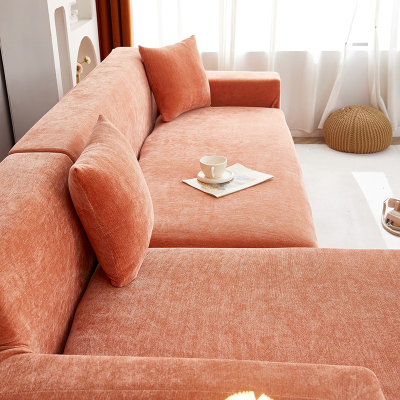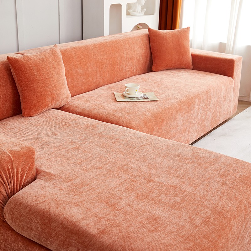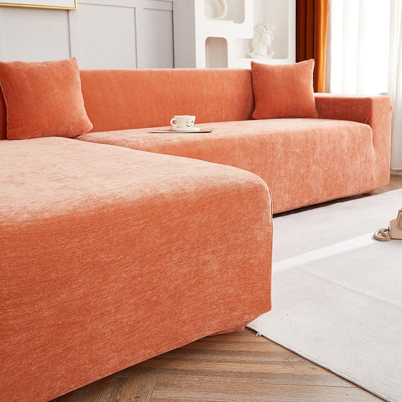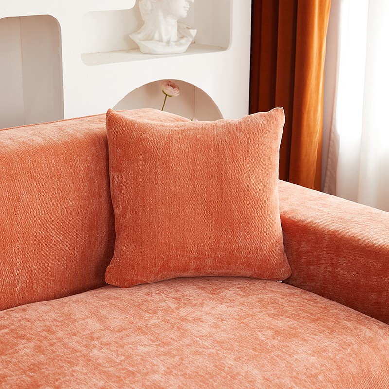 逐日沙发套 2023新款加厚雪尼尔纯色系列贵妃沙发套 雪尼尔-高级橙