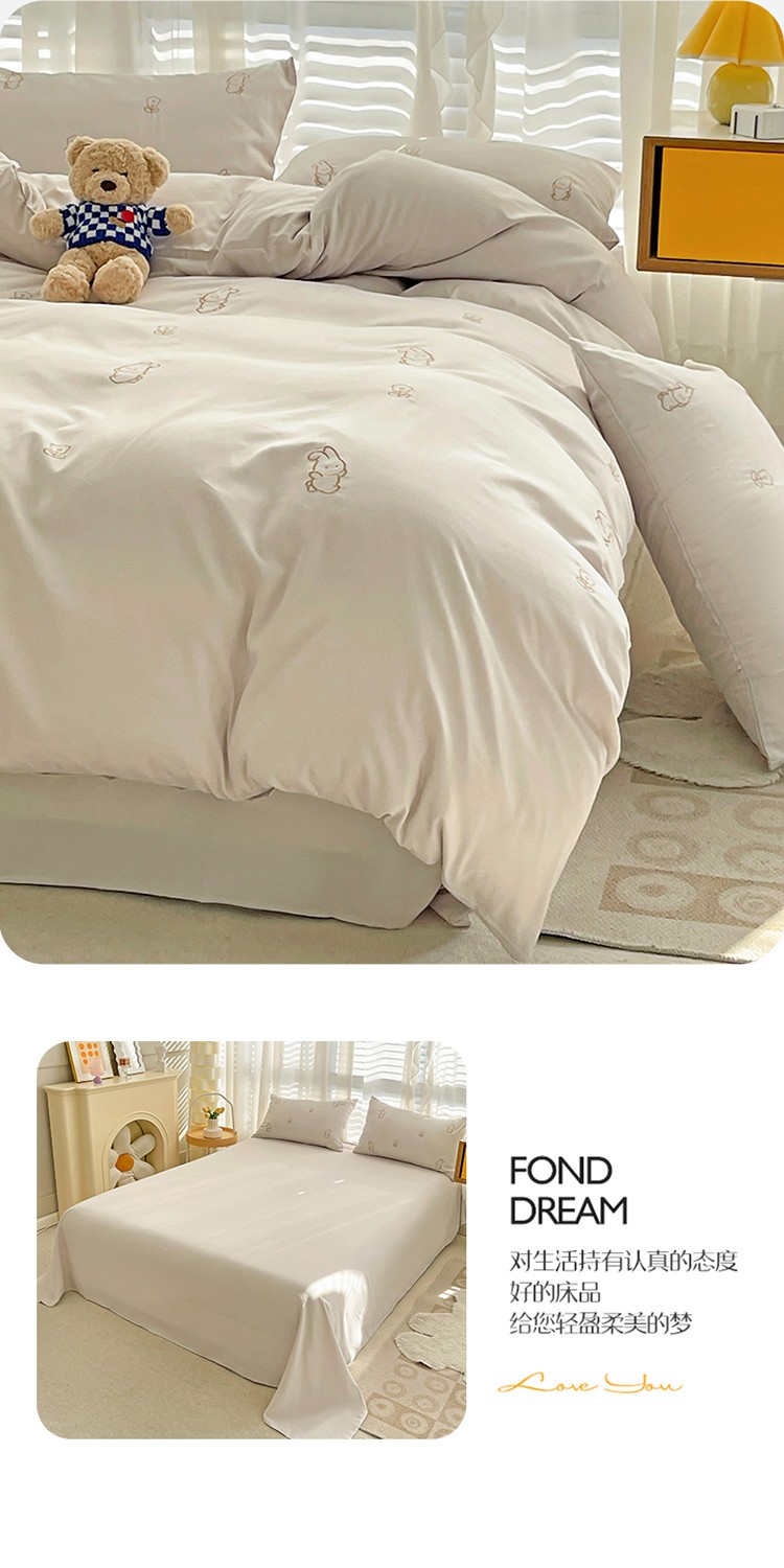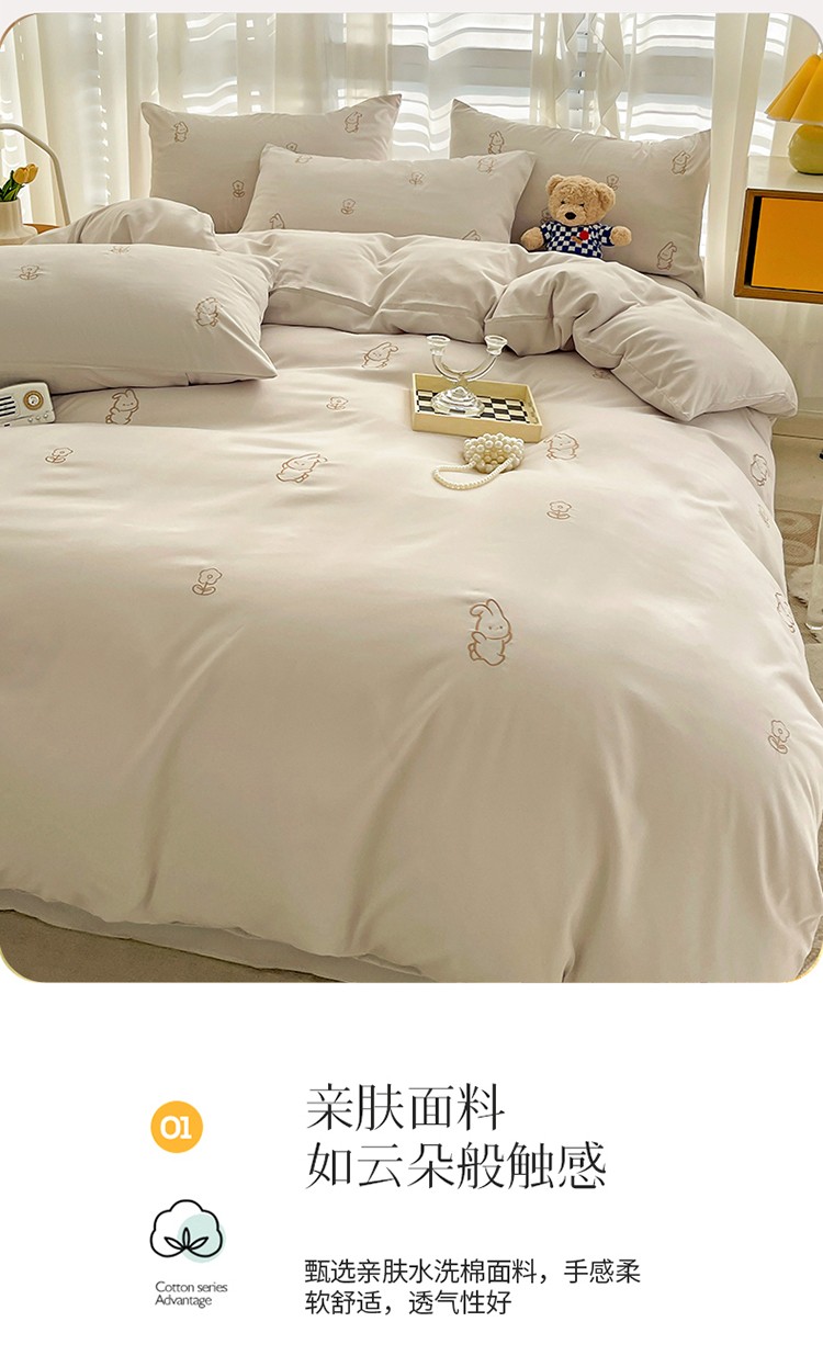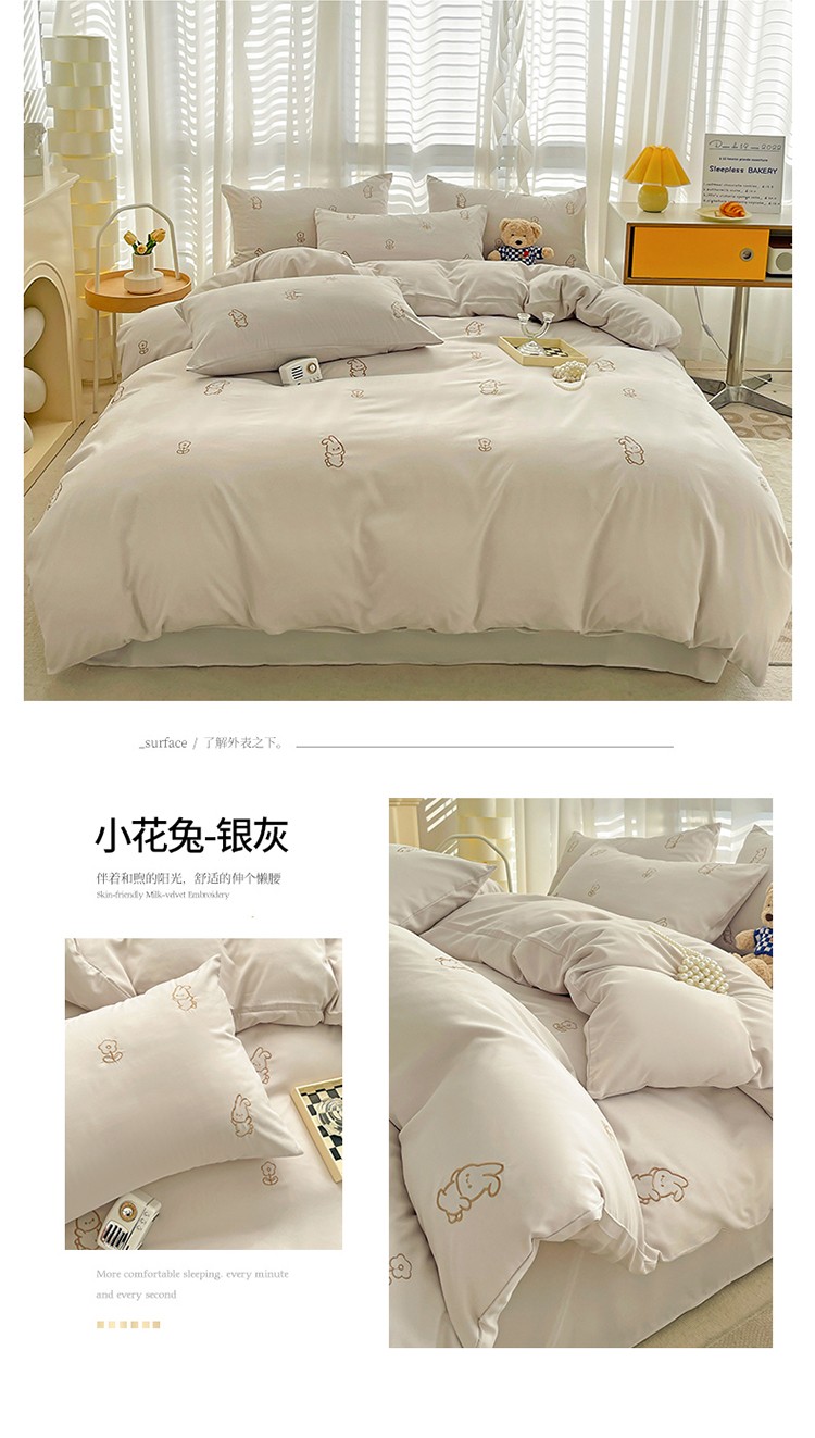 N先生 2024新款亲肤水洗棉刺绣四件套-小花兔 小花兔-银灰
