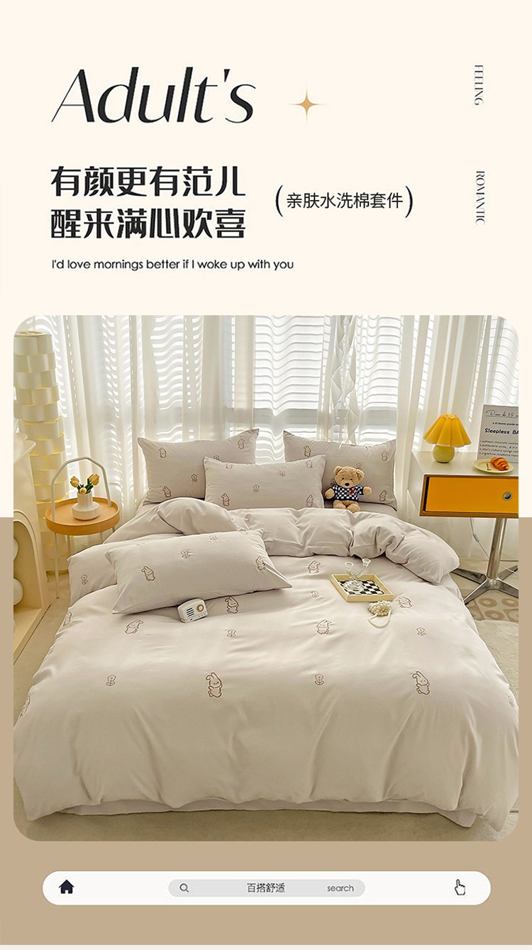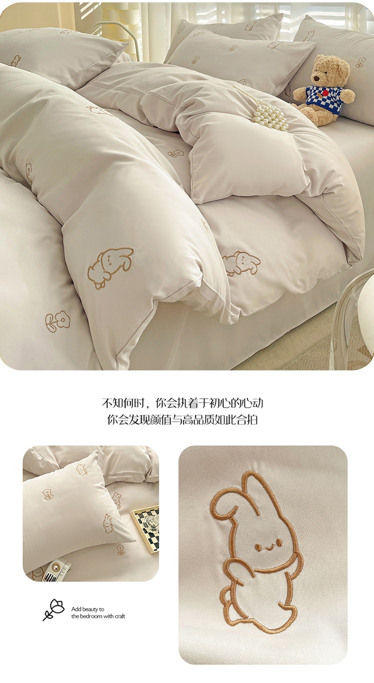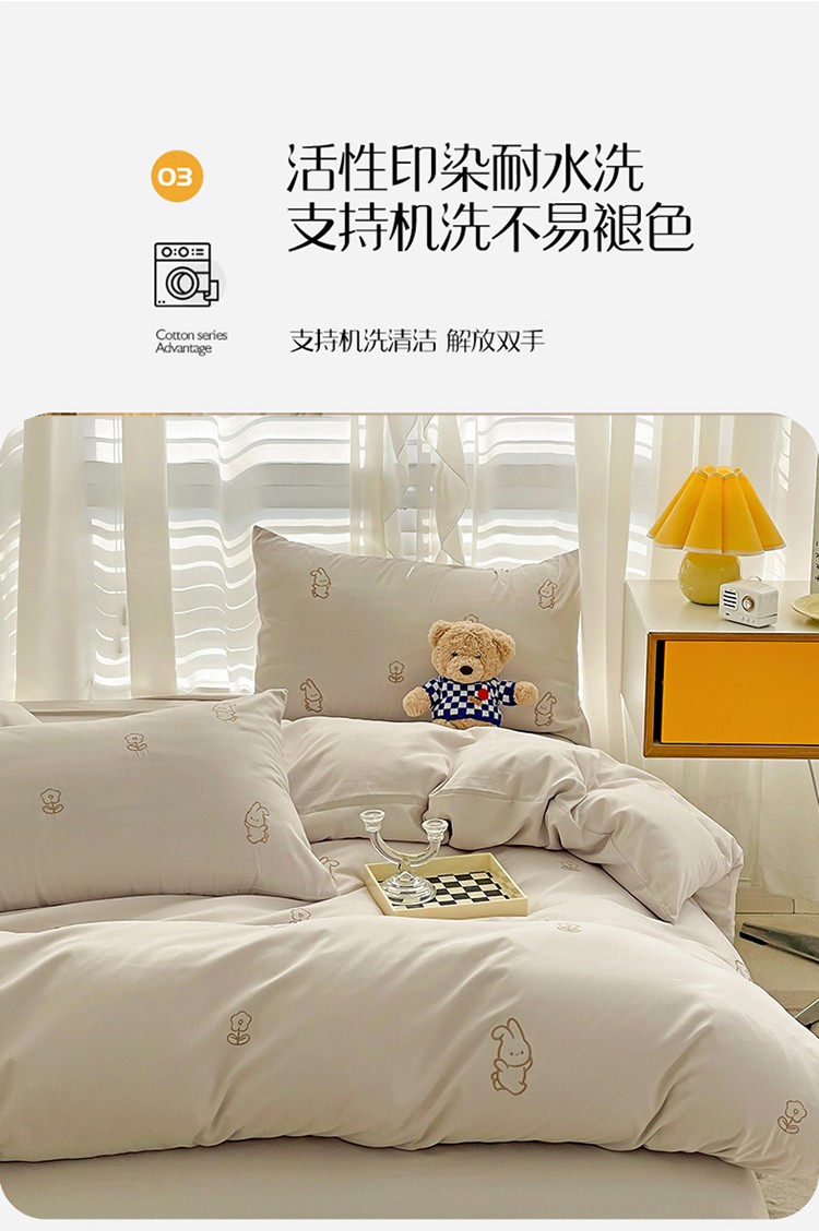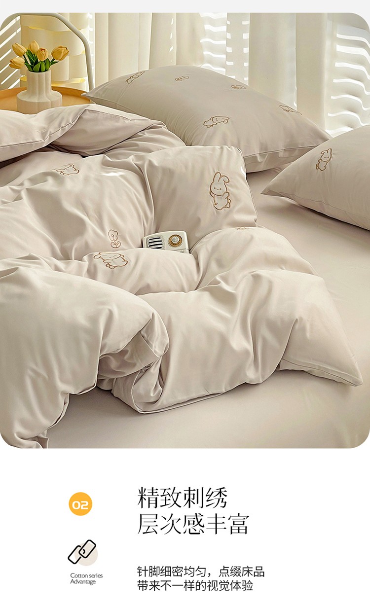 N先生 2024新款亲肤水洗棉刺绣四件套-小花兔 小花兔-银灰