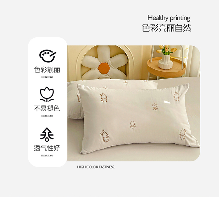 商品名称:N先生 2024新款亲肤水洗棉刺绣四件套-小花兔 小花兔-银灰