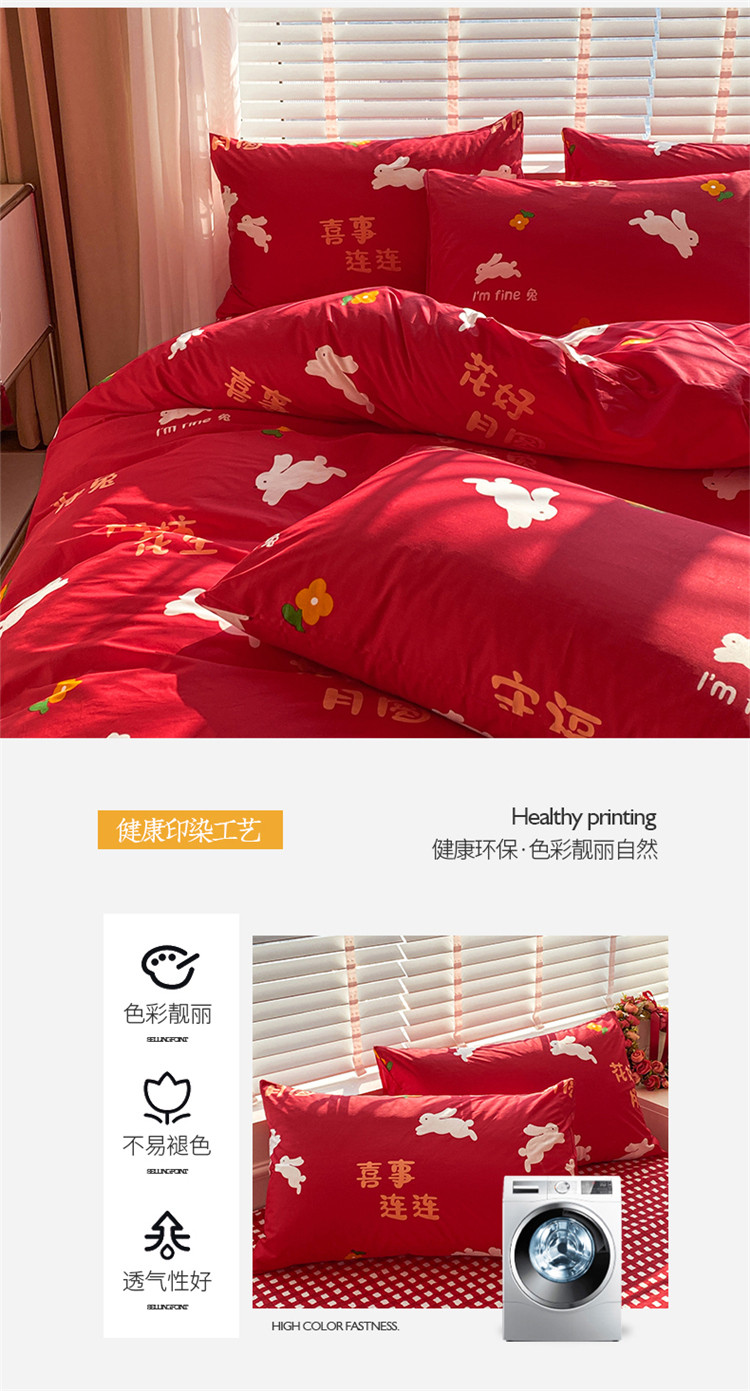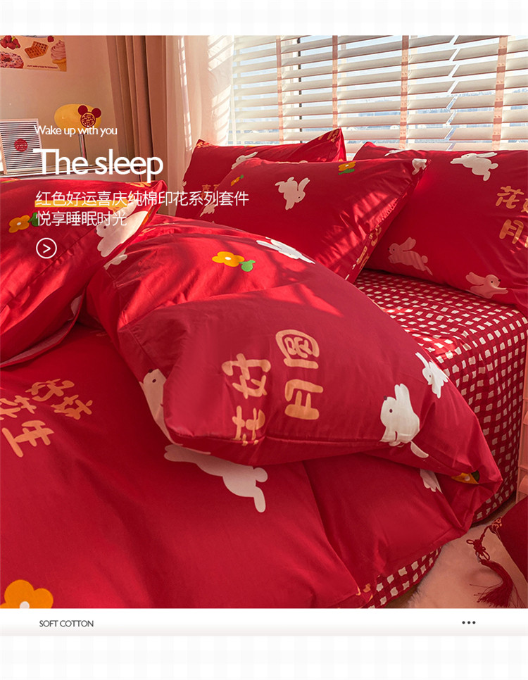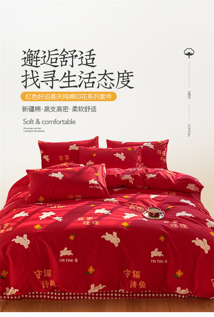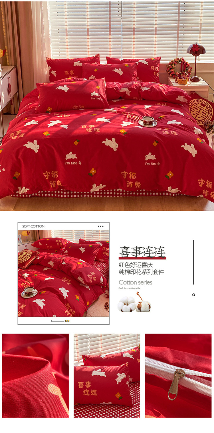 商品名称:桃子家居 2023新款红色好运喜庆纯棉印花系列四件套 喜事连连
