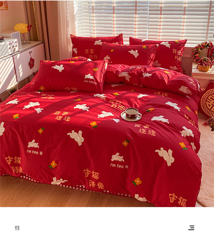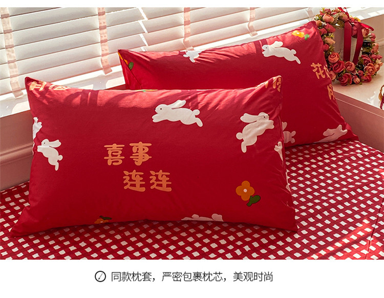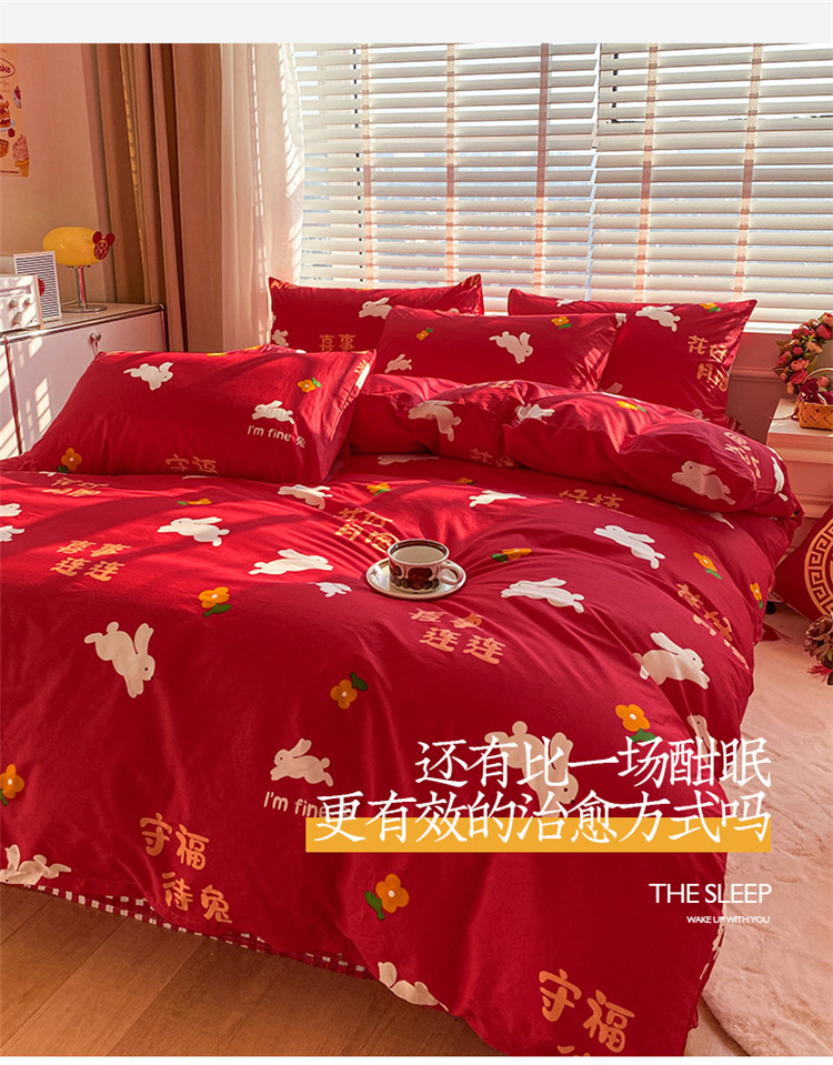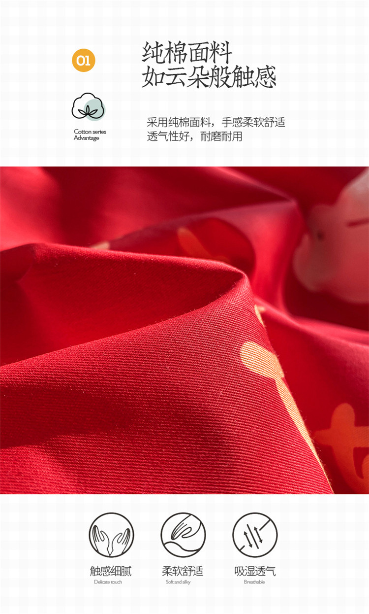 商品名称:桃子家居 2023新款红色好运喜庆纯棉印花系列四件套 喜事连连
